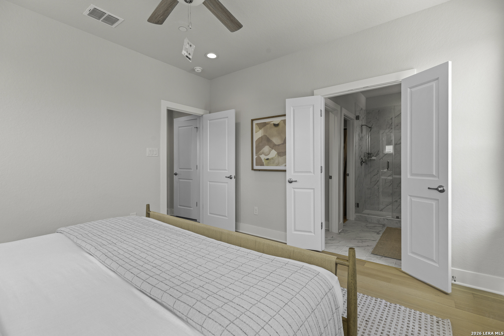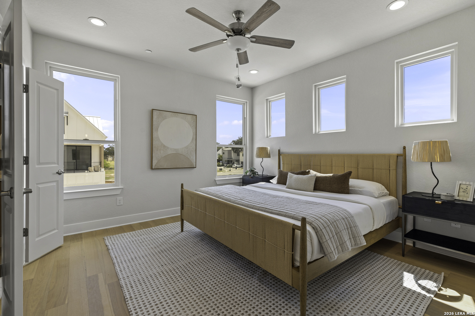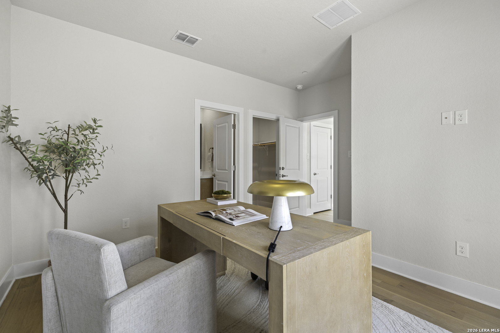 Welcome to Victoria Commons, located in the culturally rich and vibrant Lavaca Neighborhood part of Southtown. Steps from everything Downtown San Antonio has to offer, including award-winning restaurants, cocktail lounges, coffee shops, vibrant arts scene, theater and music venues, Alamodome, Hemisphere-Civic Park, Riverwalk, Blue Star Arts Complex, Museum and Mission Reach, and ease of access to major expressways. Don't miss out on the chance to experience the best of city living in this truly exceptional home. Experience the Santiago floor plan, a seamless blend of contemporary design and everyday comfort. The entry level features a private en-suite bedroom with its own entrance perfect for guests or a dedicated home office, plus a convenient two-car garage and utility room. An open-concept main floor centers on a bright living area that flows into the dining and kitchen. The kitchen features quartz countertops, a generous island, tasteful backsplash, sleek appliances, gas cooking, custom cabinetry, and a pantry. Secondary bedroom with walk-in closet and full bath located on second level. A versatile third level hosts a loft space ideal for an office or workout space. The primary suite offers a tranquil retreat with a dual-vanity bath, walk-in shower, and a generously sized closet. Thoughtful design, abundant upgrades, and energy-efficient, low-maintenance features make everyday living effortless. Images are for illustrative purposes and of model unit.