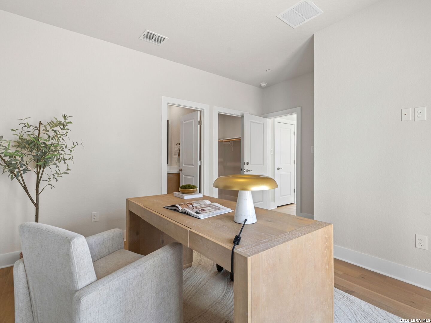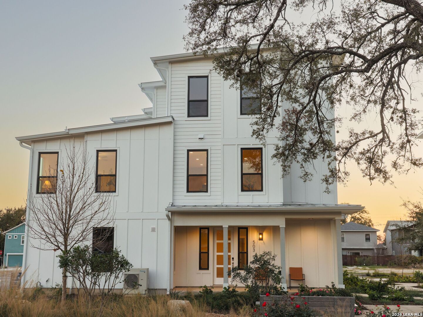 Welcome to Victoria Commons, located in the culturally rich and vibrant Lavaca Neighborhood part of Southtown. Steps from everything Downtown San Antonio has to offer, including award-winning restaurants, cocktail lounges, coffee shops, vibrant arts scene, theater and music venues, Alamodome, Hemisphere-Civic Park, Riverwalk, Blue Star Arts Complex, Museum and Mission Reach, and ease of access to major expressways. Don't miss out on the chance to experience the best of city living in this truly exceptional home. Experience the Presidio floor plan, a seamless blend of contemporary design and everyday comfort. The entry level features a private en-suite bedroom with its own entrance perfect for guests or a dedicated home office, plus a convenient two-car garage. An open-concept main floor centers on a bright living area that flows into the dining and kitchen. The kitchen features quartz countertops, a generous island, tasteful backsplash, sleek appliances, gas cooking, custom cabinetry, pantry, and utility room. The primary suite offers a tranquil retreat with a dual-vanity bath, walk-in shower, and a generously sized closet. A versatile third level hosts a spacious loft ideal for a movie room or home gym, plus a third bedroom and full bath. Thoughtful design, abundant upgrades, and energy-efficient, low-maintenance features make everyday living effortless.