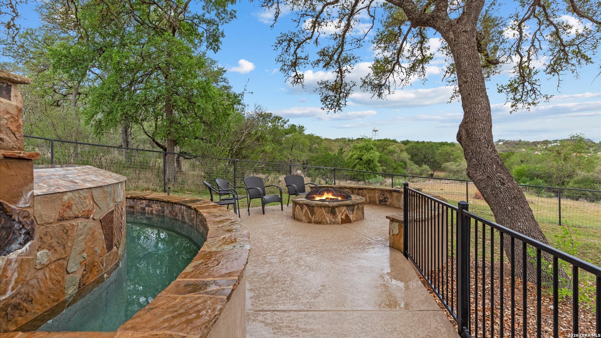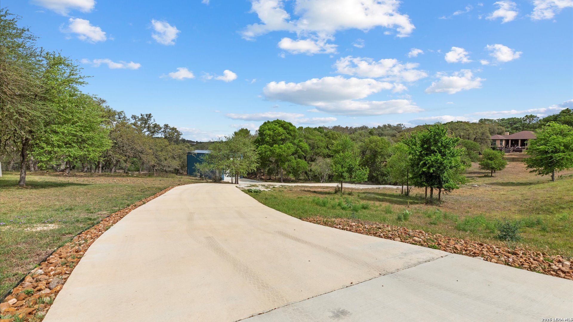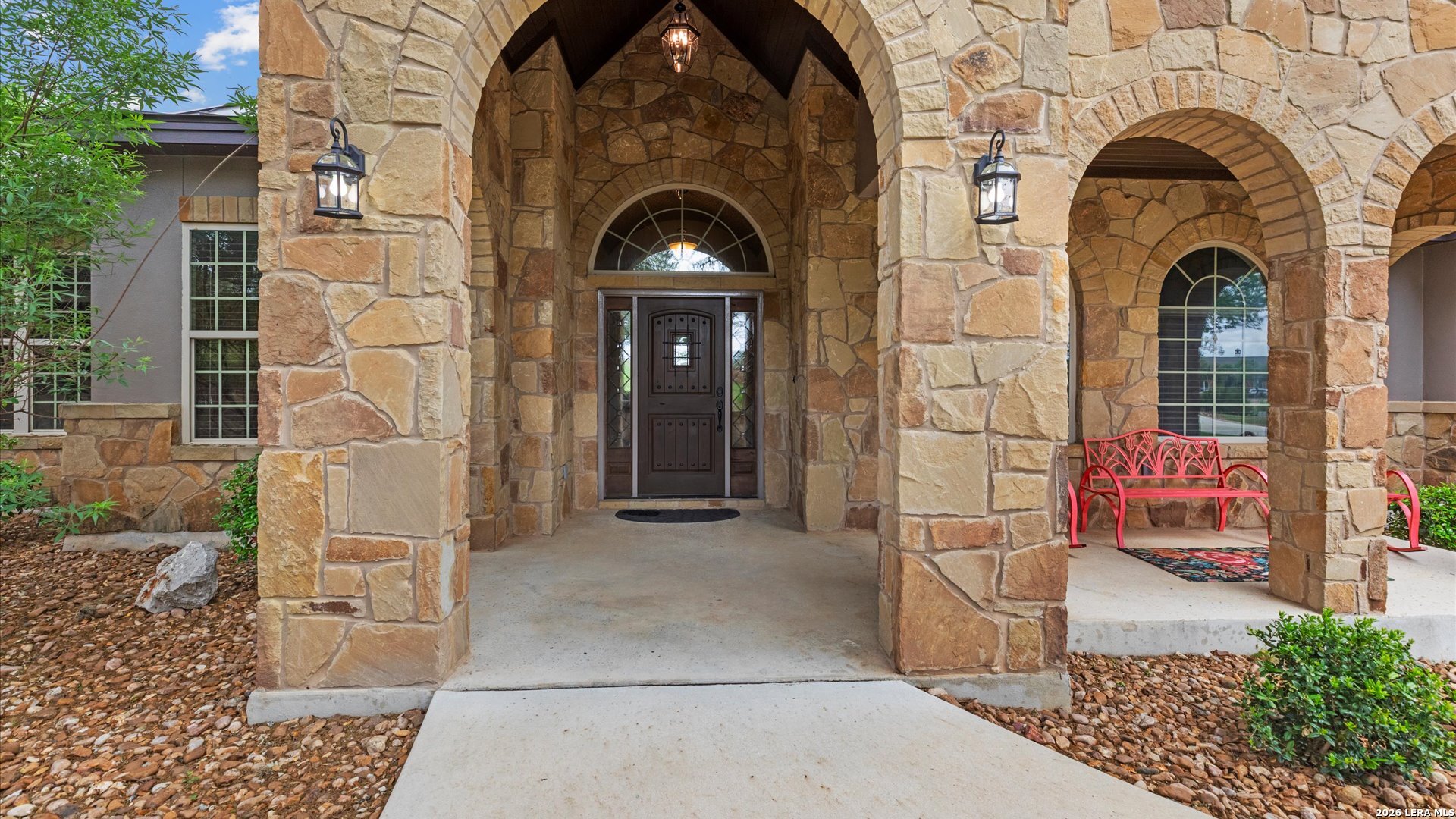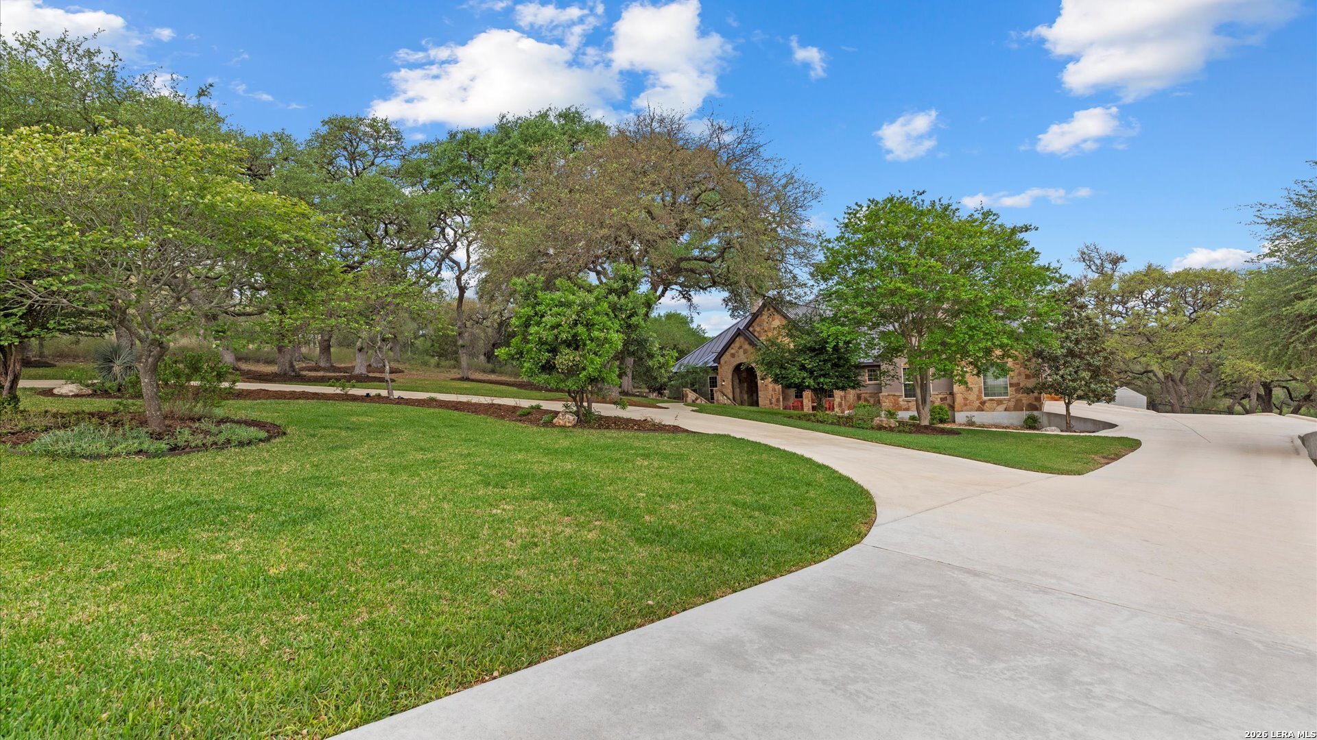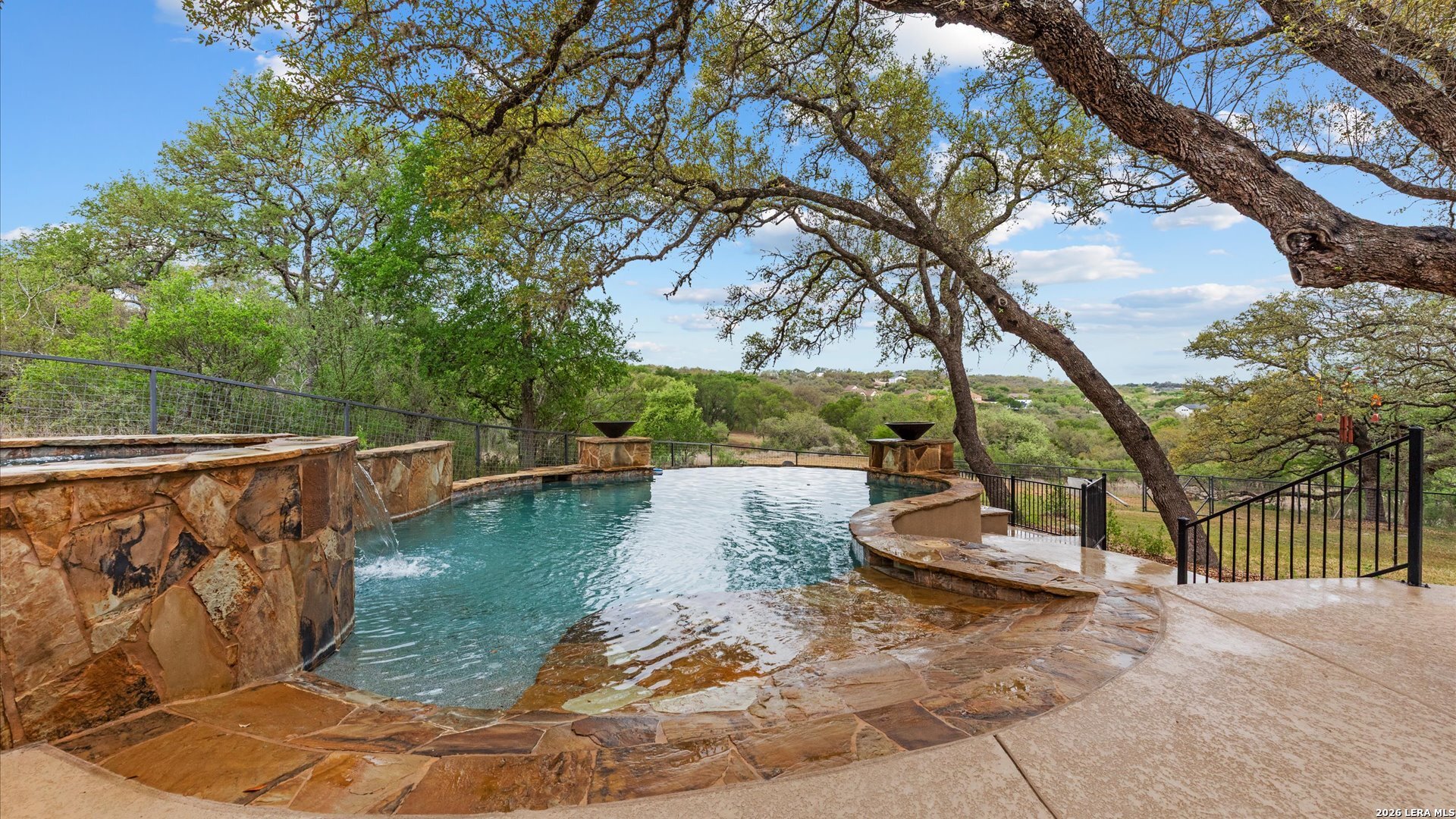 Stunning custom Hill Country estate in the highly sought-after River Chase community, perfectly situated on 2.63 private, oak-studded acres. This beautifully designed single-story home offers 3 bedrooms, 3 full baths, a half bath, and two spacious living areas, including a formal sitting area, across 3,442 square feet of thoughtfully crafted living space. From the moment you arrive, the striking stone exterior, arched entry, and metal roof set the tone for timeless quality and craftsmanship. Inside, warm wood flooring, architectural details, and an inviting stone fireplace create a welcoming yet refined atmosphere. The open-concept layout is ideal for both everyday living and entertaining, with multiple living spaces offering flexibility for gathering, relaxing, or working from home. The well-appointed kitchen features custom cabinetry, granite countertops, and designer finishes. The private primary suite is a true retreat, featuring a dedicated sitting area and a spa-like bath with soaking tub, walk-in shower, and generous closet space. Secondary bedrooms are well-sized with access to beautifully finished baths. Step outside to your own Hill Country oasis-an expansive covered patio overlooking a resort-style pool with water features, surrounded by mature trees and scenic views. Whether hosting guests or enjoying a quiet evening, this outdoor space delivers exceptional privacy and tranquility. A rare and highly desirable feature, the 18x50 detached workshop/RV garage is fully insulated and equipped with electricity and remote access-perfect for a workshop, recreational vehicles, or additional storage. The property also includes an attached garage, offering both convenience and versatility. Located in River Chase, residents enjoy exclusive access to premier amenities including a private Guadalupe River park, clubhouse, fitness center, and scenic walking trails-all just minutes from shopping, dining, and the charm of New Braunfels. A rare opportunity to own a private, amenity-rich estate that combines luxury, functionality, and the best of Hill Country living.