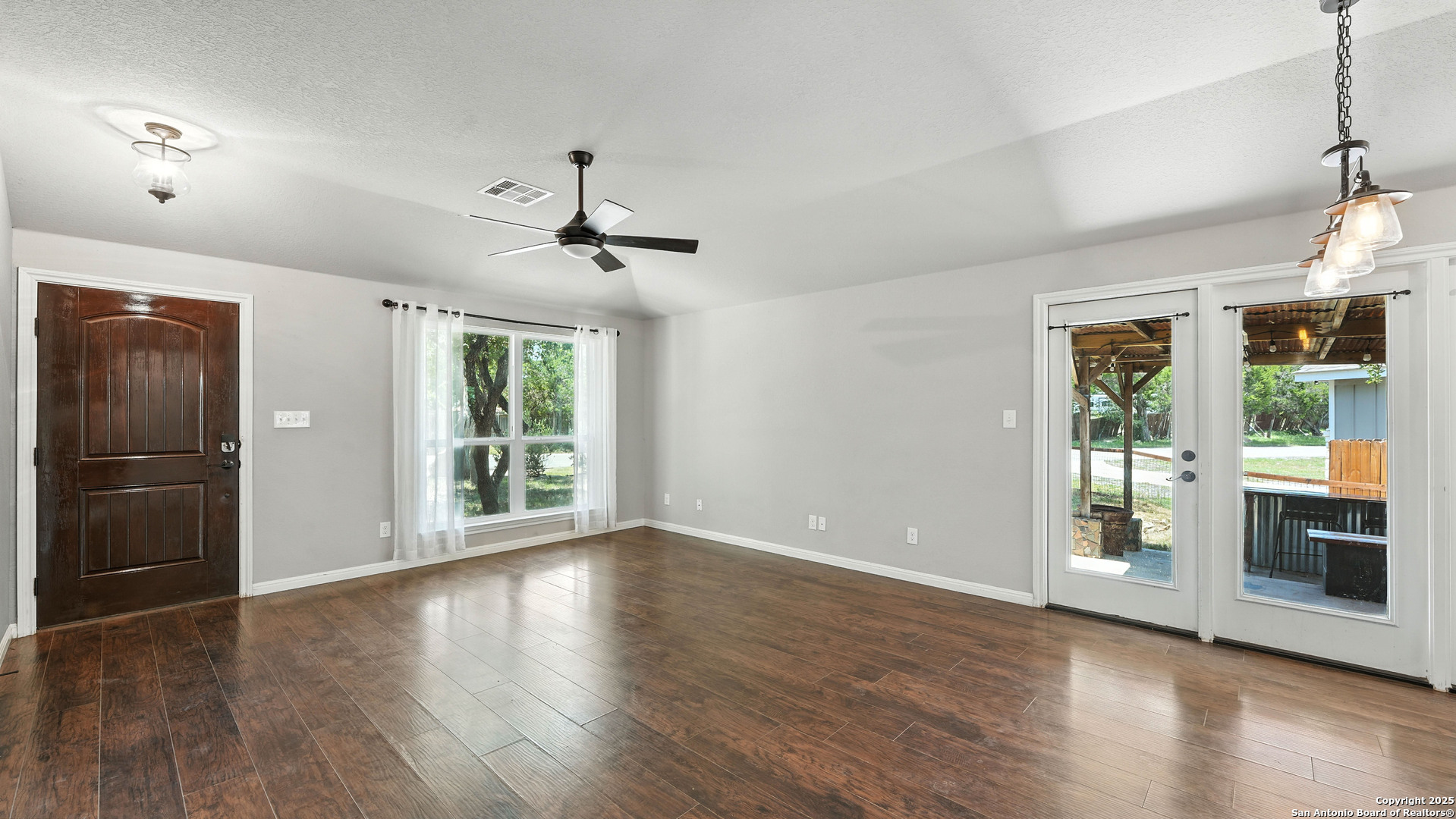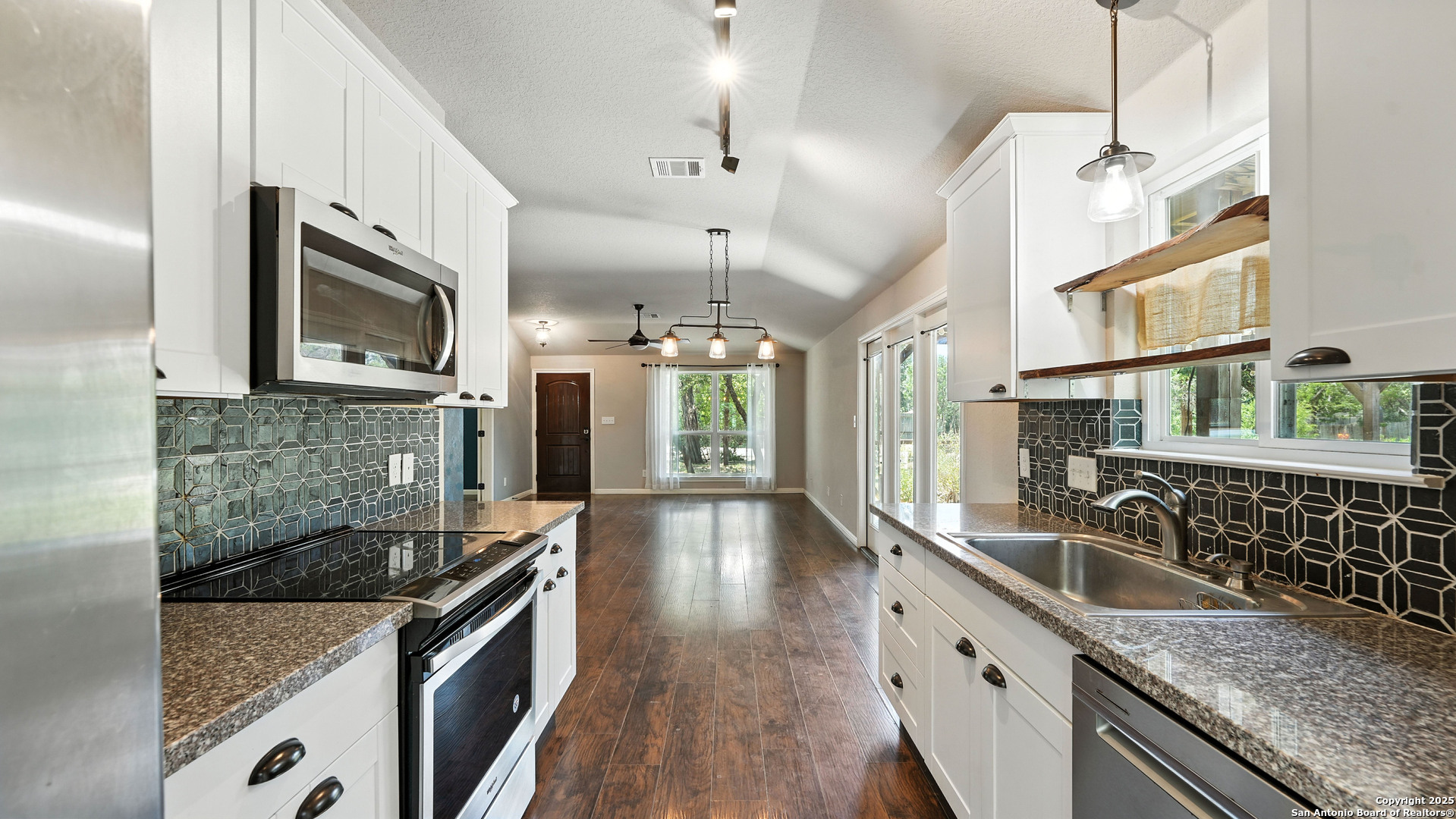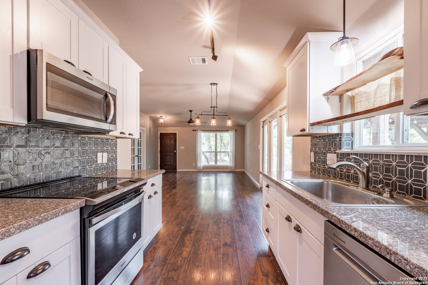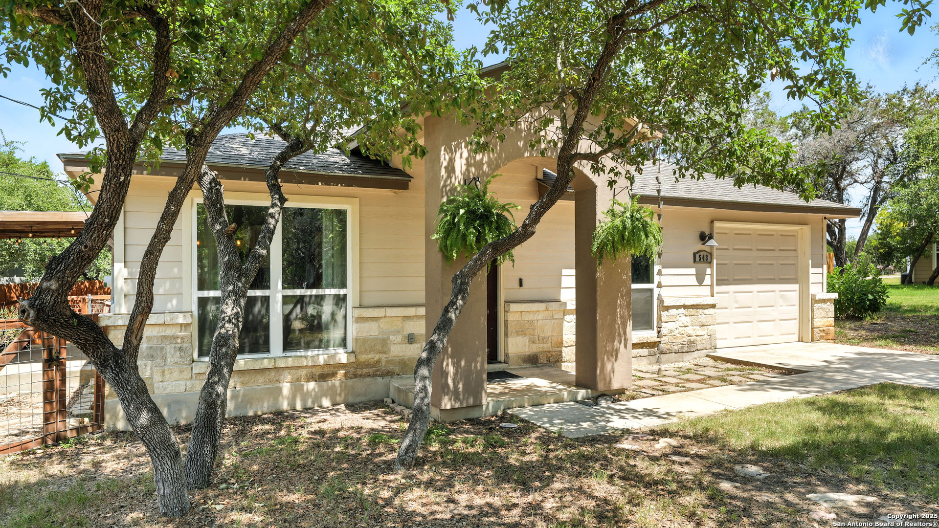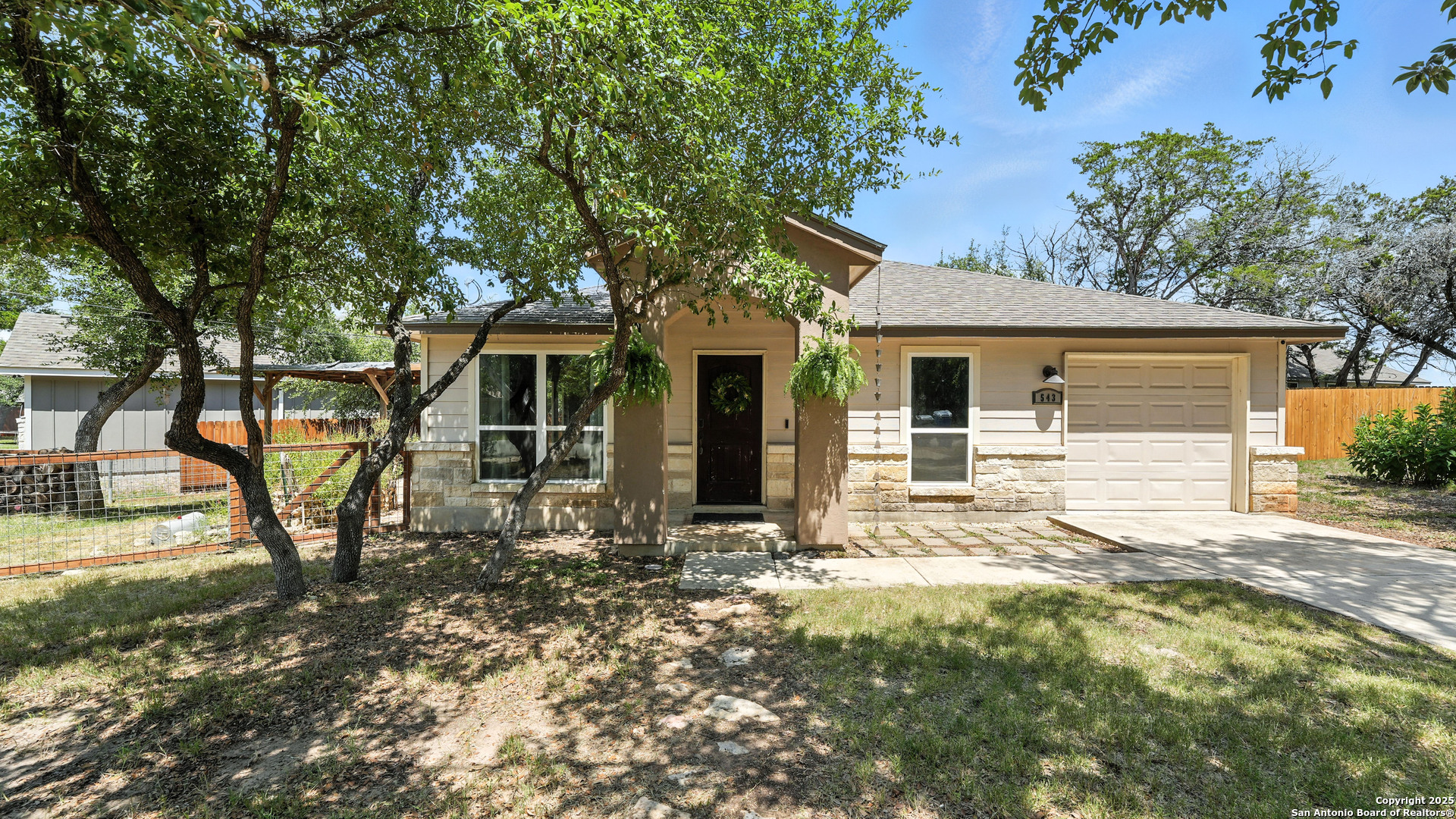 Welcome home to the Texas Hill Country where gorgeous landscaping welcomes you, and Canyon Lake is your neighbor down the street. You are central to Bulverde and New Braunfels; both just minutes away in either direction! This home features an outdoor covered seating and patio area made with repurposed lumber from a 1910 barn, simply beautiful. Granite countertops in the kitchen and bathrooms with shaker cabinets, upgraded appliances and hardware are just part of the experience. Spa like bathrooms where taking time to decompress is almost unavoidable. The garage is cooled in the summertime and warm in the winters with central air because the a/c and heat is rerouted; so if you wanted, it can be made into an office or extra living space. The lot has room to build a casita or detached garage to the right of the house and driveway. You have an option to an annul membership at the community pool and park with a pavilion available for rental. This can also be a great short term or long term rental. Canyon Lake HS is the school feeder pattern, and the bus stop is only one house down. Showings have been amazing, and there have been recent interior touchups! We look forward to your visit.