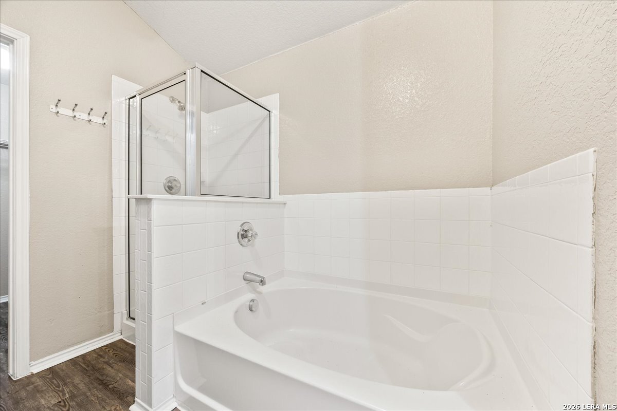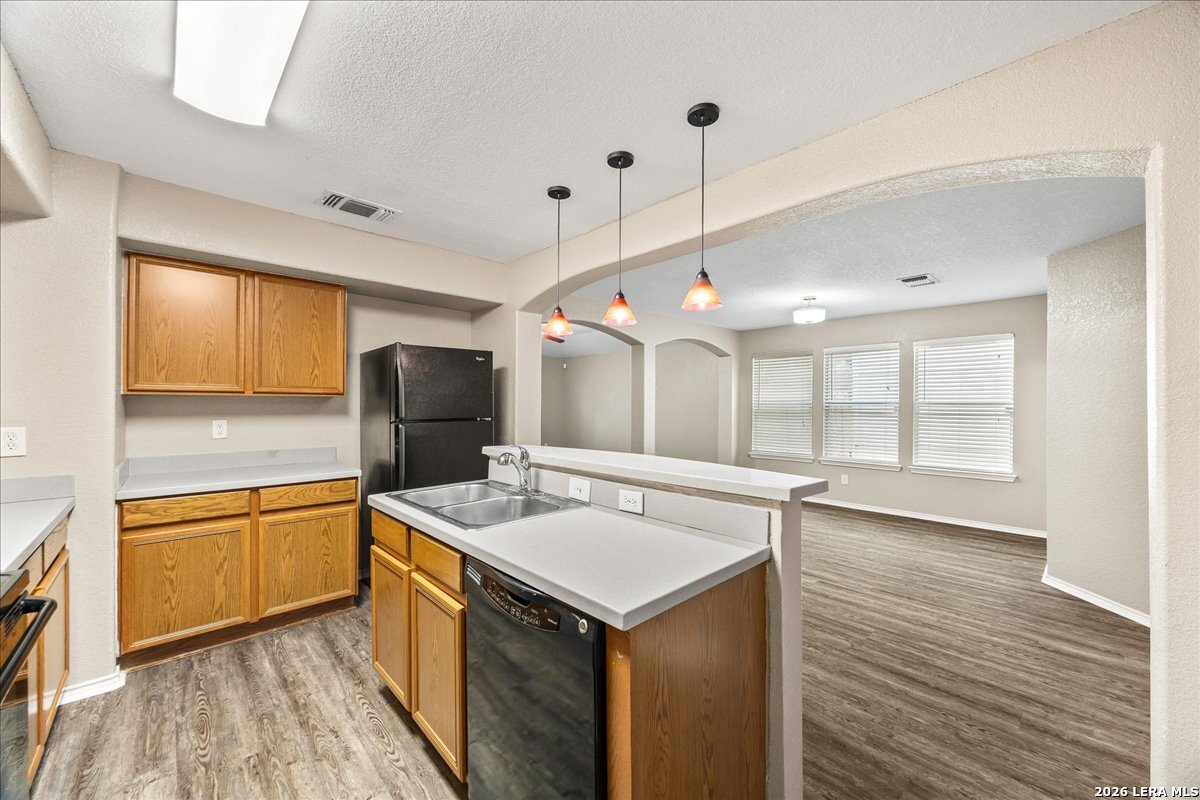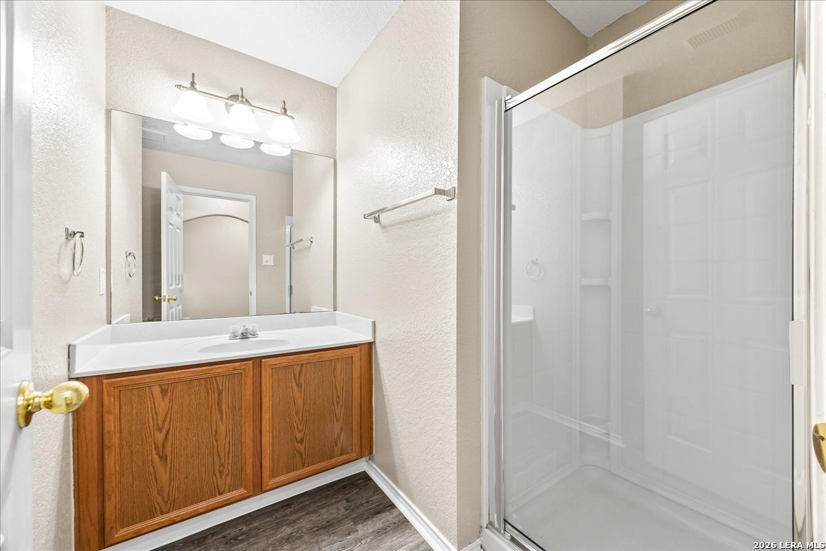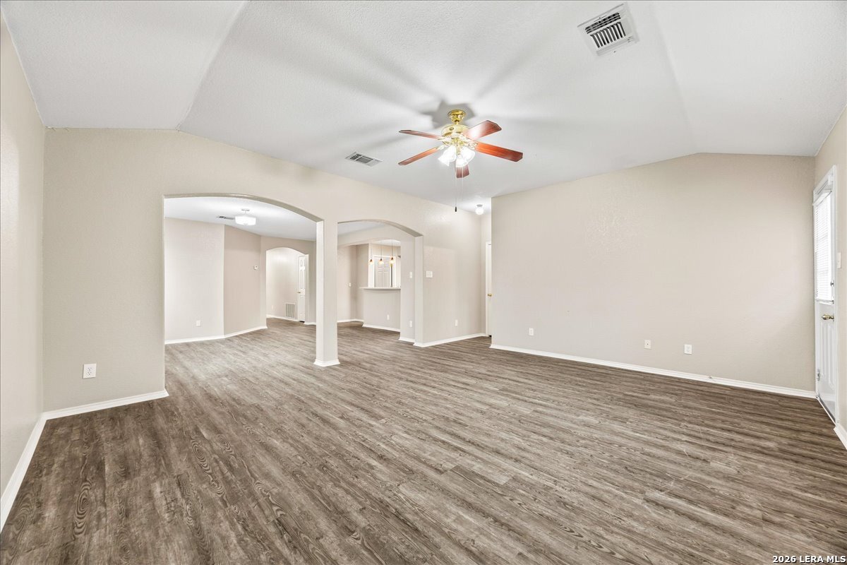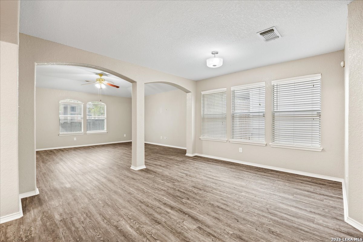 **Two weeks FREE RENT for the month of March**This Amazing Single-Story home is conveniently located to the Medical Center, UTSA, USAA, and Downtown.**Property has NEW flooring**The home has a wonderful open floor plan with beautiful arch ways. The kitchen has lots of cabinet space, breakfast bar, built in desk, and the **Refrigerator is included and Water Softener System**. Home also offers a large utility room with pantry. The master bedroom has a separate standing shower and garden tub. Small yard for someone on the go, easy to maintain. All this easy access to I-10, Babcock, loop 410, Huebner. Double security deposit. Ask about our reduced Security Deposit through a security deposit program.