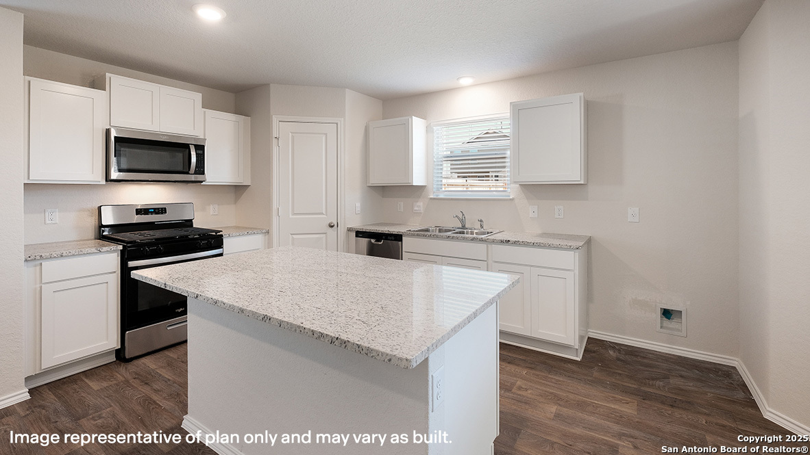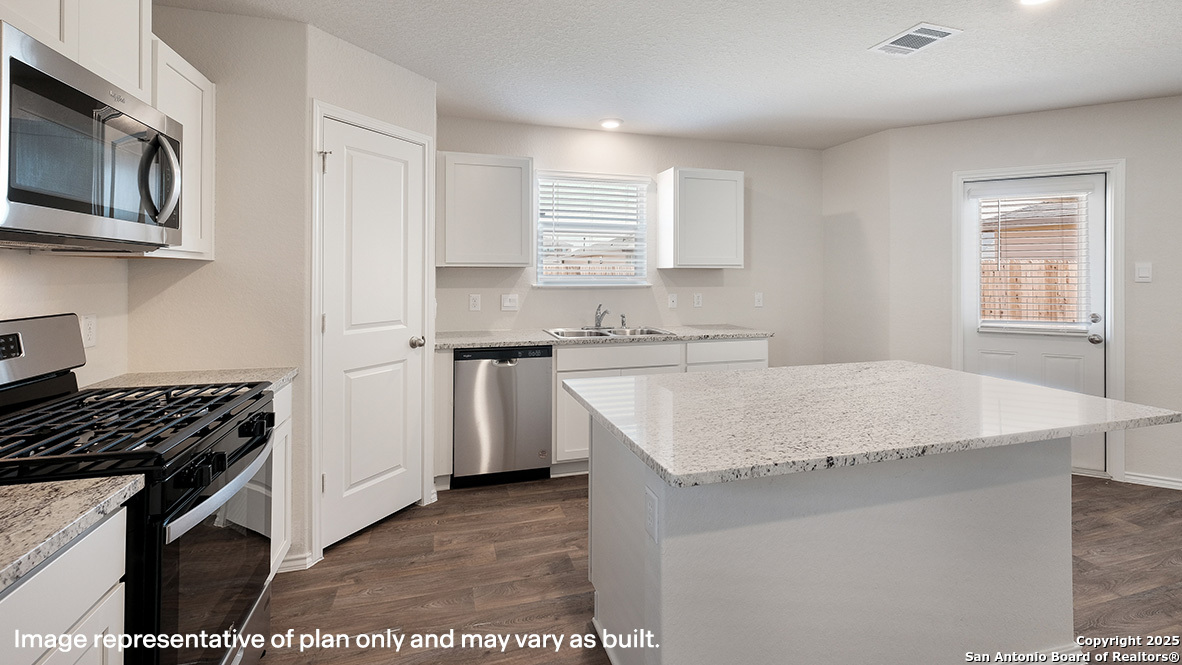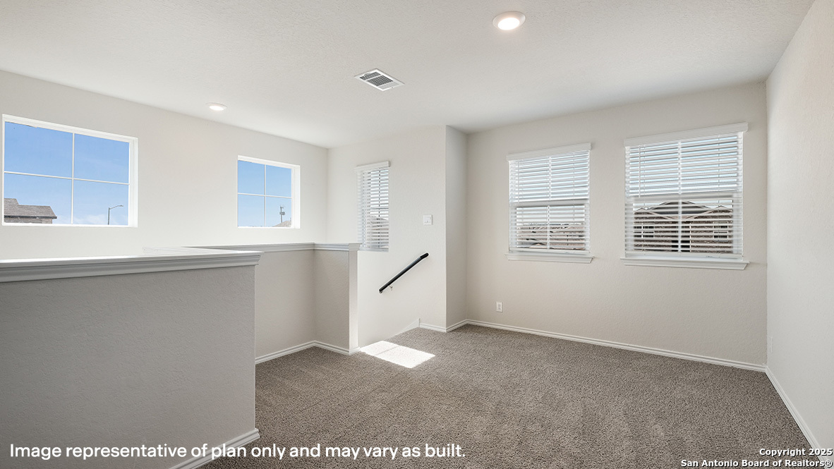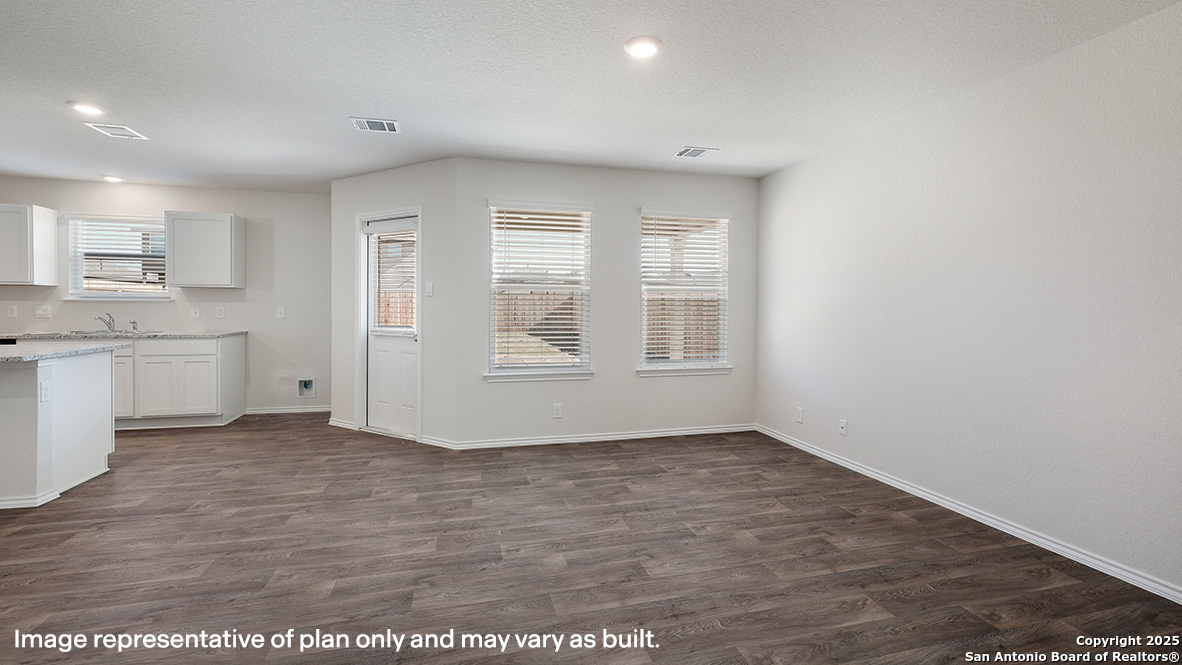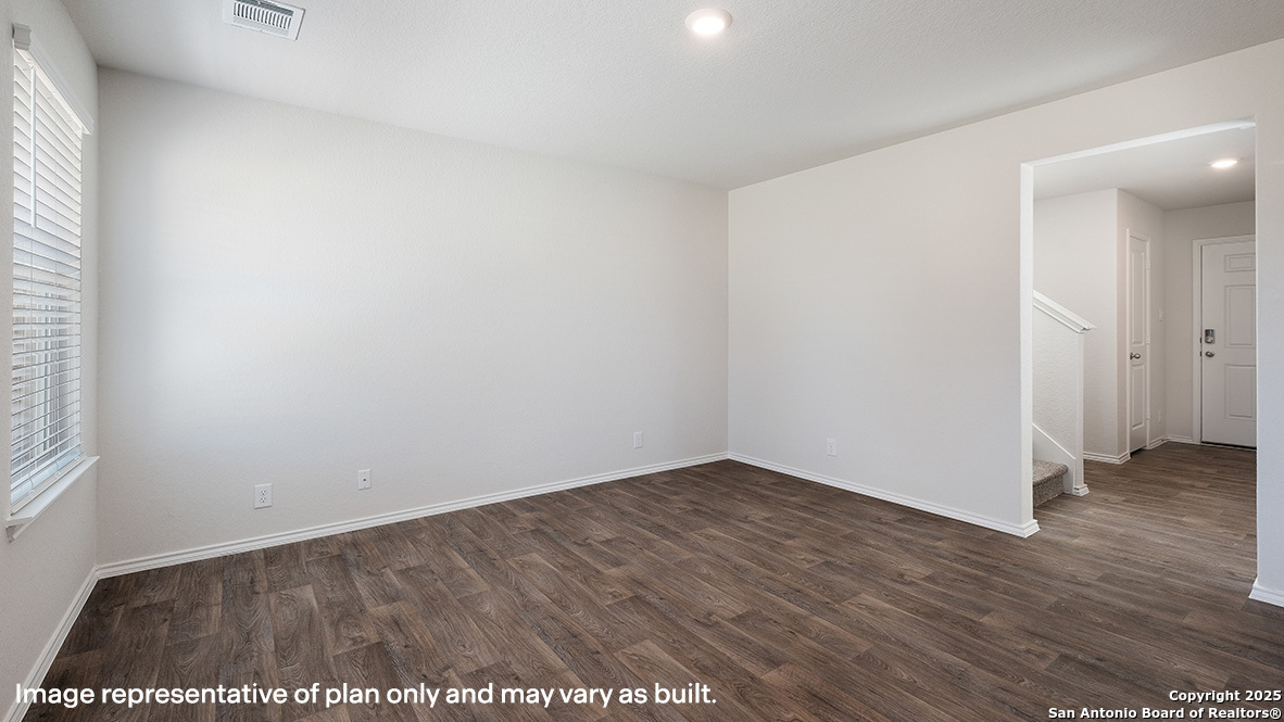 Welcome to The Swift, a two-story home located at Riverstone at Westpointe in San Antonio, TX. This floor plan offers 2 classic front exteriors with siding or brick, a 1-car garage and a full yard landscaping and irrigation package, ensuring that your home looks its best every single day. Inside this 3 bedroom, 2.5 bathroom home, you will find 1625 square feet of functional living space. The inviting front porch and foyer open into a grand living room, dining area and kitchen arranged in an open-concept. Your kitchen is truly gourmet with gleaming stainless steel appliances, quartz countertops and shaker style cabinets. A spacious kitchen island overlooks the dining area and provides plenty of work space. The kitchen leads to the backyard with a relaxing covered patio (per plan). Upstairs, you will find a spacious loft/game room area for the entire family to enjoy with carpet flooring and large windows providing tons of natural light. All bedrooms and a secondary full bathroom are also located upstairs. Your main bedroom suite is located toward the back of the home and features an attractive bathroom. There is plenty of space to get ready in the morning between an elongated quartz counter top and walk-in closet. Your main ensuite bathroom also comes equipped with a combined bath tub and shower, quartz countertops, and shaker style cabinets. The Swift floor plan also offers many convenient features including easy maintenance sheet vinyl flooring in the entry, living room and all wet areas, a large storage closet under the stairs and a utility room that connects to the garage. You'll enjoy added security in your new home with our Home is Connected features. Using one central hub that talks to all the devices in your home, you can control the lights, thermostat and locks, all from your cellular device.