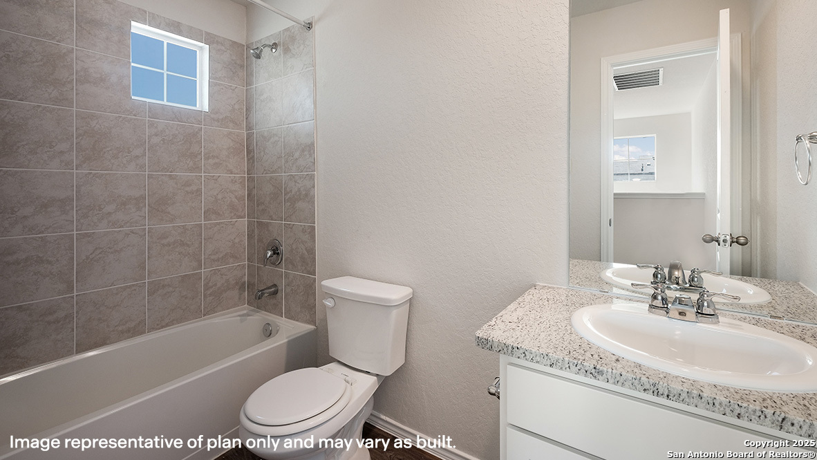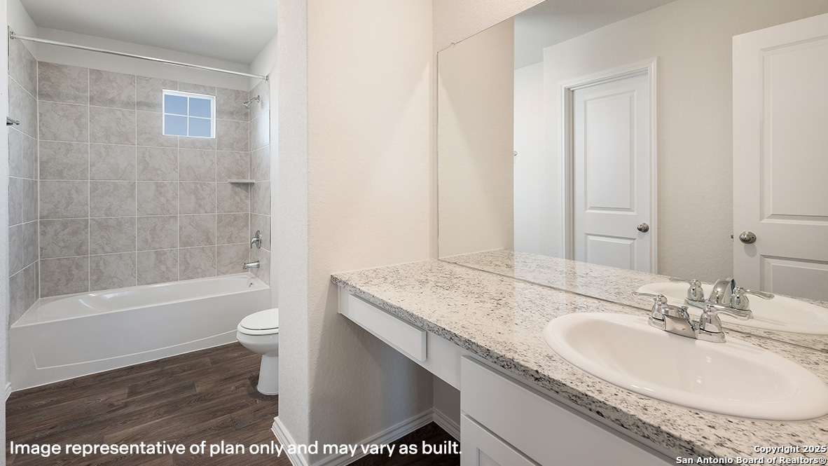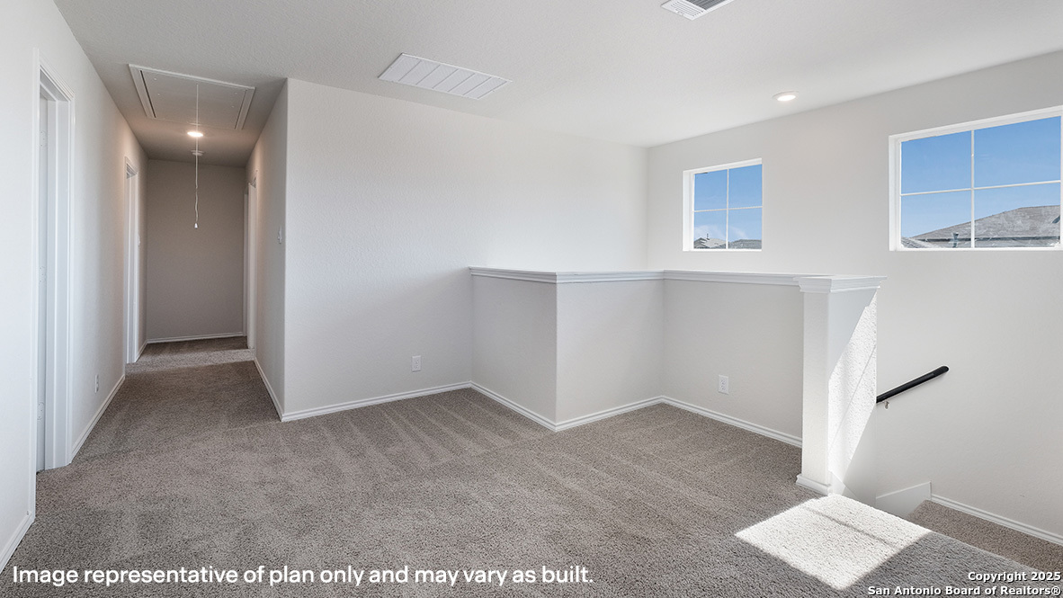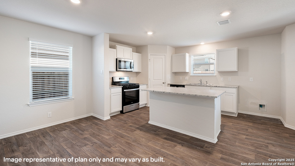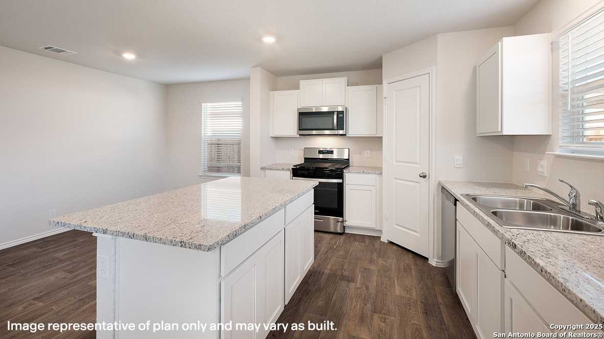 Welcome to The Swift, a two-story home located at Riverstone at Westpointe in San Antonio, TX. This floor plan offers 2 classic front exteriors with siding or brick, a 1-car garage and a full yard landscaping and irrigation package, ensuring that your home looks its best every single day. Inside this 3 bedroom, 2.5 bathroom home, you will find 1625 square feet of functional living space. The inviting front porch and foyer open into a grand living room, dining area and kitchen arranged in an open-concept. Your kitchen is truly gourmet with gleaming stainless steel appliances, quartz countertops and shaker style cabinets. A spacious kitchen island overlooks the dining area and provides plenty of work space. The kitchen leads to the backyard with a relaxing covered patio (per plan). Upstairs, you will find a spacious loft/game room area for the entire family to enjoy with carpet flooring and large windows providing tons of natural light. All bedrooms and a secondary full bathroom are also located upstairs. Your main bedroom suite is located toward the back of the home and features an attractive bathroom. There is plenty of space to get ready in the morning between an elongated quartz counter top and walk-in closet. Your main ensuite bathroom also comes equipped with a combined bath tub and shower, quartz countertops, and shaker style cabinets. The Swift floor plan also offers many convenient features including easy maintenance sheet vinyl flooring in the entry, living room and all wet areas, a large storage closet under the stairs and a utility room that connects to the garage. You'll enjoy added security in your new home with our Home is Connected features. Using one central hub that talks to all the devices in your home, you can control the lights, thermostat and locks, all from your cellular device.