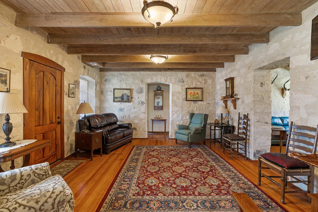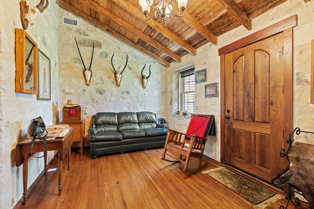 Nestled between Kerrville & Fredericksburg, this charming ranchette spans 28.5 acres offering a unique blend of history & modern comfort. Easily accessible, located half a mile down Alfred Henke Road. The main home boasts 2,500 SF of living space w/3 bedrooms & 2 full bathrooms. At its heart lies a historic 2-room stone house built in 1875, with its stone repointed in 2009 & original floors, believed to have been installed in 1900, beautifully refinished. This house was owned by a single family from 1875 to 2008. In 2010, an extension was added to preserve the original homes aesthetic while incorporating energy-efficient SIP construction. Additional structures on the property include a guest house, insulated 30x50 shop, an insulated tack room with window A/C, and smokehouse/storage room. The outdoor kitchen is perfect for entertaining, featuring lighting, fans, and rustic cabinets crafted from recycled wood from the original house. The land primarily consists of pasture, adorned with majestic live oaks around the homestead and a 90+ year-old crepe myrtle tree. Water is supplied by a well. Fantastic opportunity to own a piece of history.