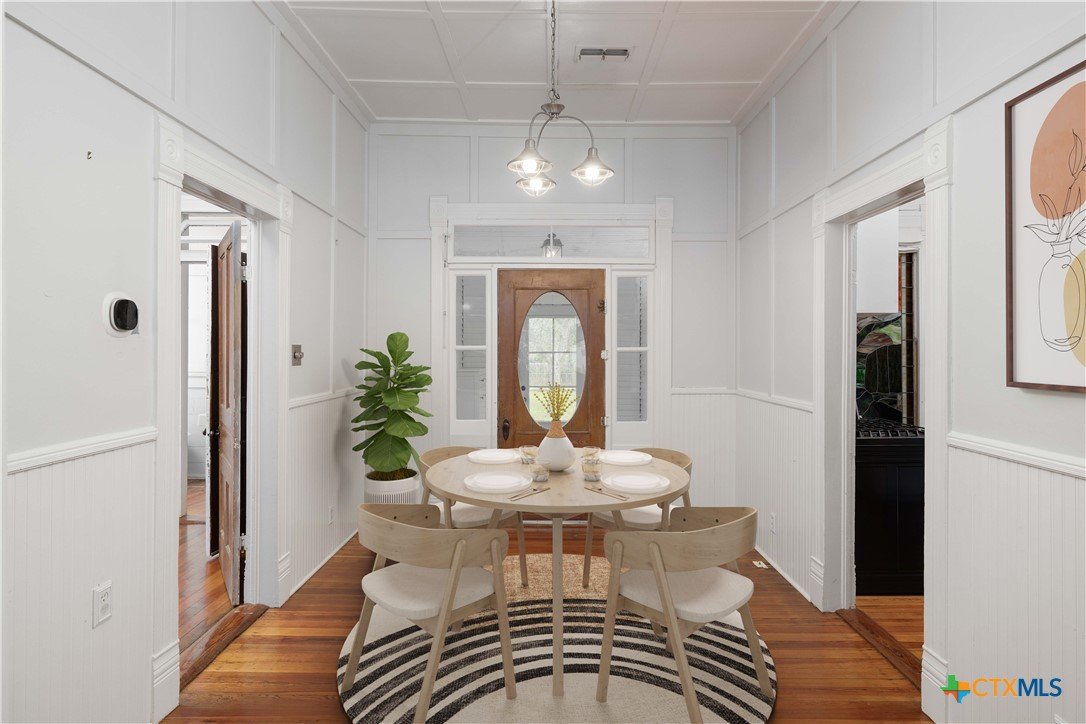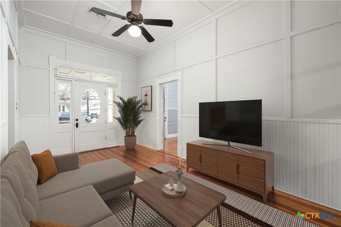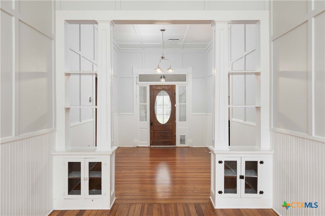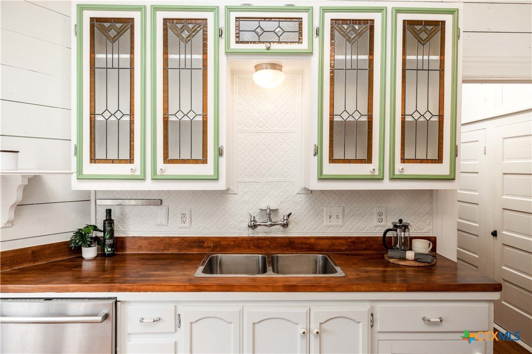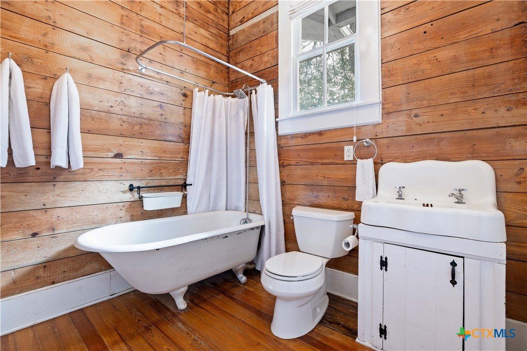 Just minutes from the heart of downtown New Braunfels, this charming 1919 home offers a rare opportunity to own a piece of local history in an unbeatable location. Surrounded by mature trees and established homes, you're close to Landa Park, local restaurants, boutique shopping, and all the culture and energy that make downtown so special. Inside, the home showcases timeless character with wood floors throughout, transom windows that flood each room with natural light, detailed wainscoting and shiplap walls, crown molding, built-in shelving, and classic cast iron clawfoot tubs. The thoughtful layout includes three bedrooms and two baths, blending historic appeal with everyday functionality. A new air conditioner installed in 2021 adds peace of mind, and the home is clean, well-maintained, and ready for move-in. Step outside to enjoy your morning coffee on the grand front porch or unwind in the spacious backyard, shaded by mature trees and perfect relaxing, gardening, or entertaining. An irrigation system in both the front and backyard keeps the landscaping lush, while a charming wood shed with an awning adds both character and practicality. Homes like this-rich in history, full of charm, and located just moments from downtown New Braunfels-are truly special. A must-see property for those who appreciate craftsmanship, character, and an exceptional location.