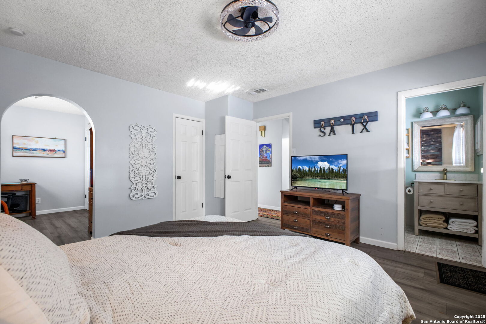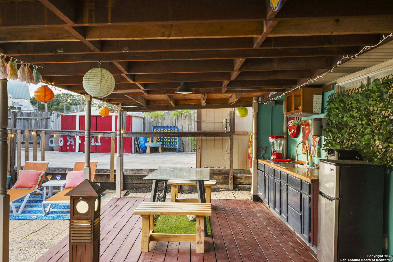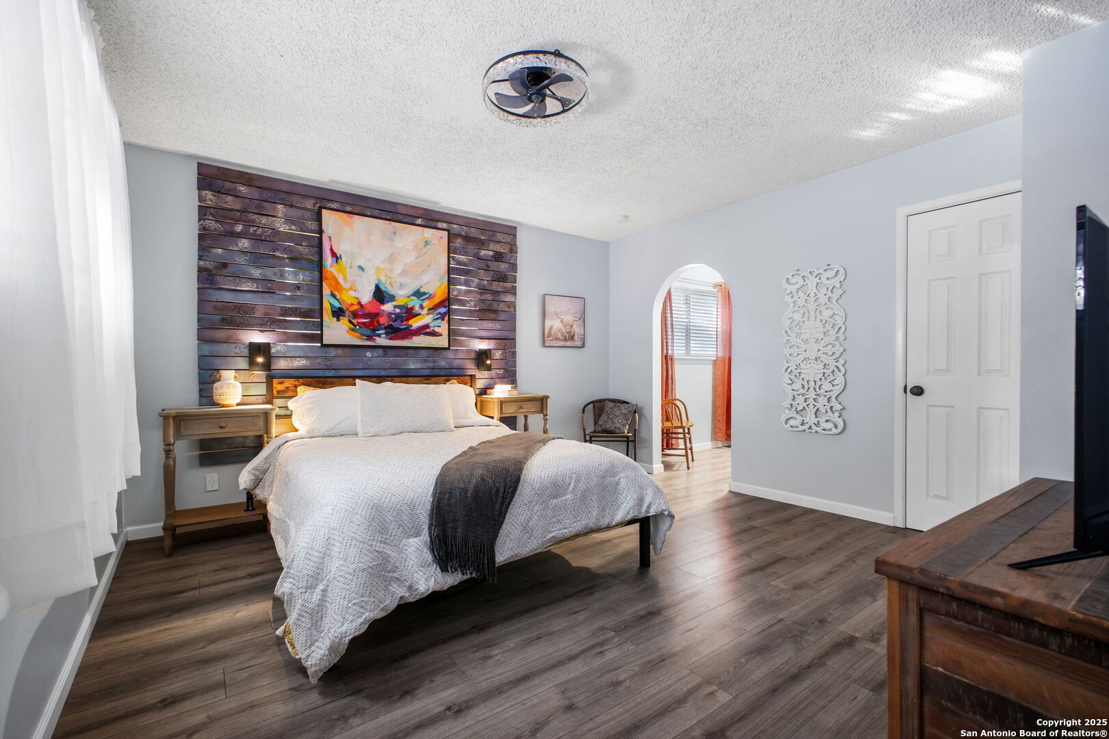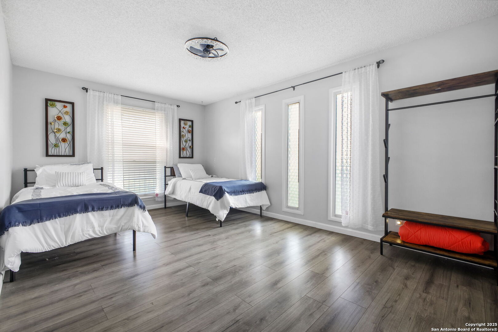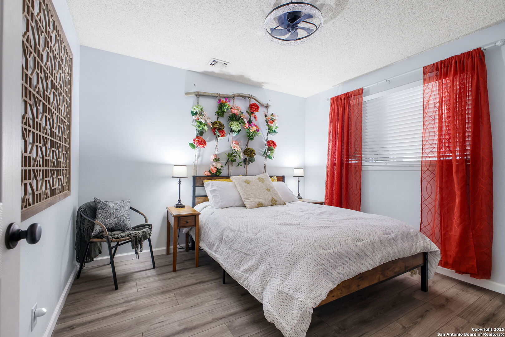 Nestled on a corner lot studded with a mix of young and mature trees, this one-of-a-kind home delivers the ideal blend of lifestyle, comfort, and outdoor living. Whether you're hosting guests or enjoying some "me" time, the thoughtfully designed layout offers a multitude of spaces for gathering or unwinding. Step through the private gated front patio-perfect for morning coffee and a breath of fresh air. Inside, you're welcomed by a bright and open floor plan featuring a dining space by the kitchen, multiple living areas; featuring a cozy fireplace in the living room and a sunroom ideal for family gatherings or quiet moments. At the heart of the home lies a delightful kitchen, featuring granite countertops, breakfast bar, stainless steel appliances including gas cooking, and plenty of space to entertain or cook with ease. A versatile bonus room offers endless possibilities as a game room, media room, or flex space tailored to your lifestyle. Conveniently, the laundry/utility room is located indoors, complete with additional storage room. The primary suite features two walk-in closets, sitting space, and en-suite bath featuring a walk-in shower and quartz vanity. Step outside into your own privately fenced oasis, with a sparkling pool, covered patio deck, gazebo, outdoor prep station with sink, and a cabana with outdoor shower, restroom, and storage. RV parking adds even more convenience to this incredible setup. Located just minutes from the Medical Center, shopping, restaurants, movie theater, and easy access to 410, IH-10, and Wurzbach Parkway.