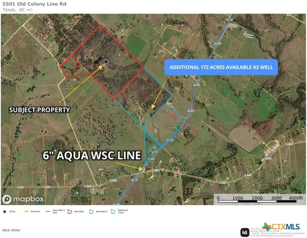 Discover this sprawling 167-acre property located just 11 miles outside the growing city of Lockhart. Situated beyond the city limits with minimal county restrictions, this expansive tract offers endless possibilities for residential development, investment, or country living. The property is part of Aqua Water Supply Company's service area, with power already available on-site. The majority of the land is cleared, drivable, and fully fenced, offering multiple possibilities for use. A charming log cabin homestead and horse barn are nestled nearby, providing a serene country retreat. The property also features several tanks, including a large pond spanning over a couple of acres, perfect for livestock or recreational use. With an agricultural exemption already in place, you can enjoy the benefits of rural living with potential tax advantages.As commercial and residential growth continues to thrive in Lockhart and its surrounding areas, this property represents a prime opportunity to capitalize on the momentum. Whether you envision a development project, an investment for the future, or a peaceful escape, this property is your gateway to endless potential.