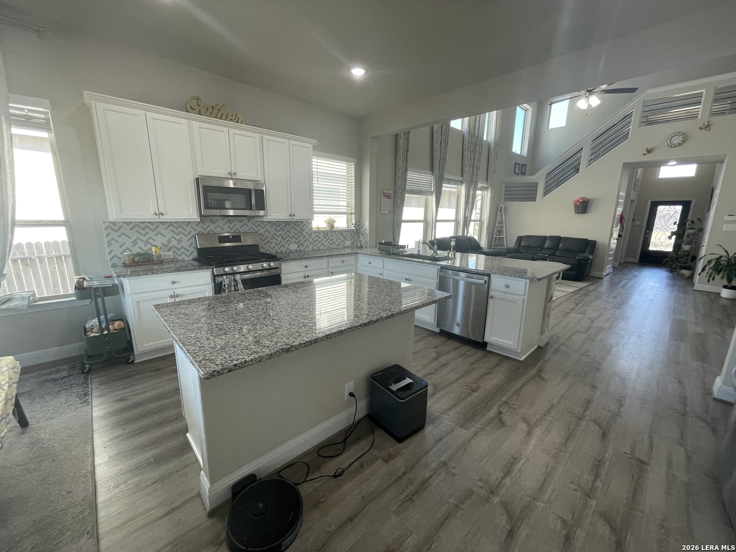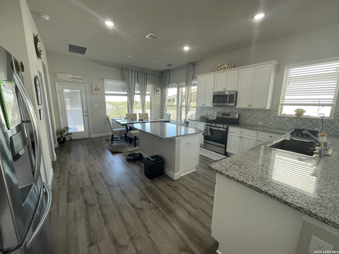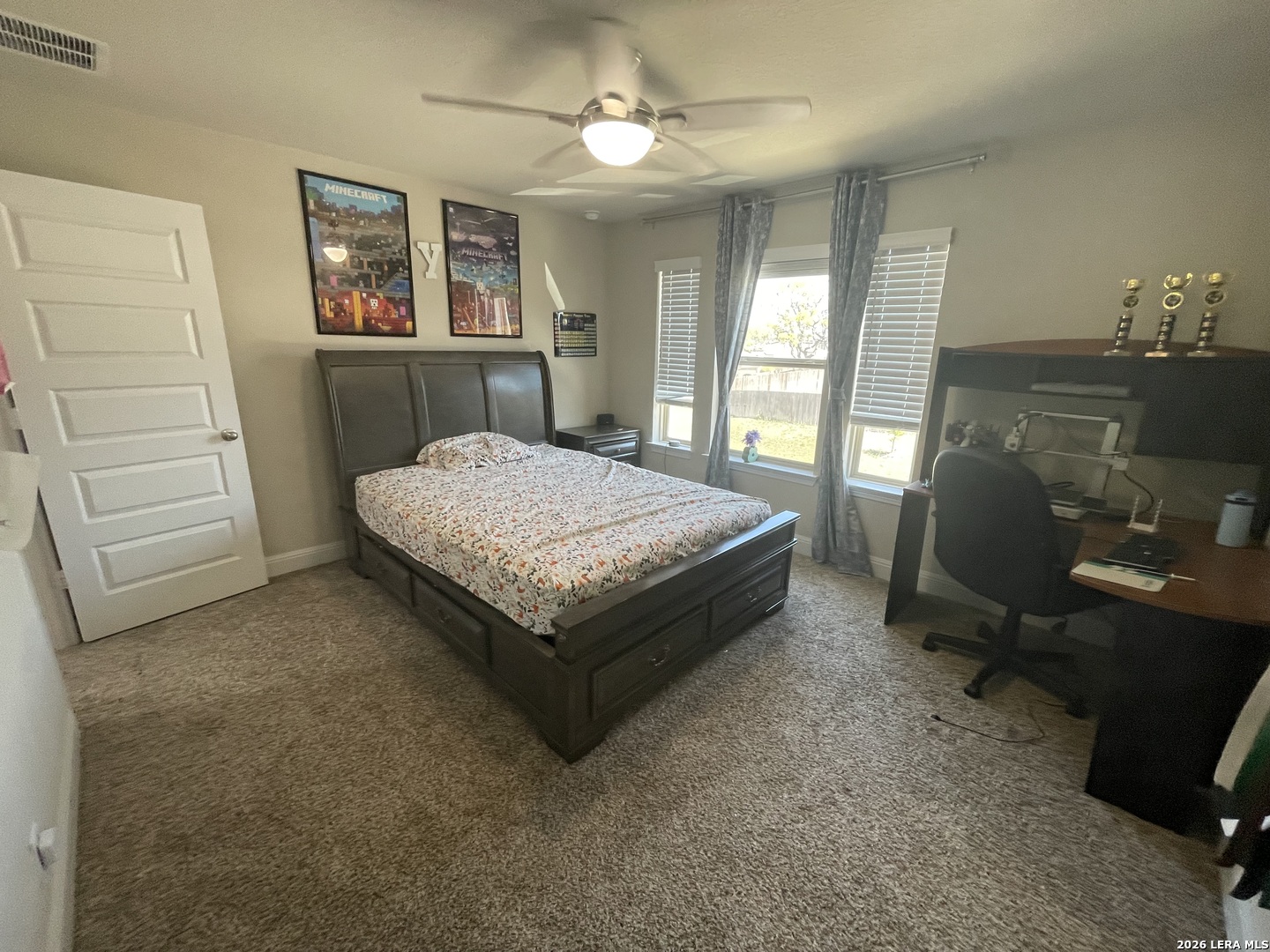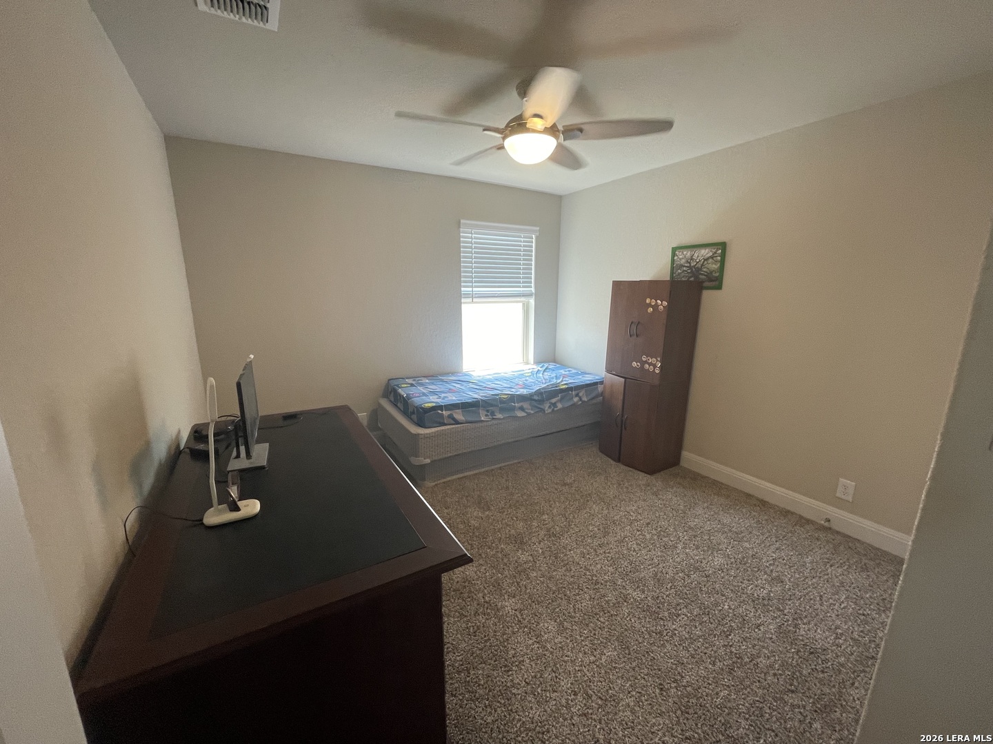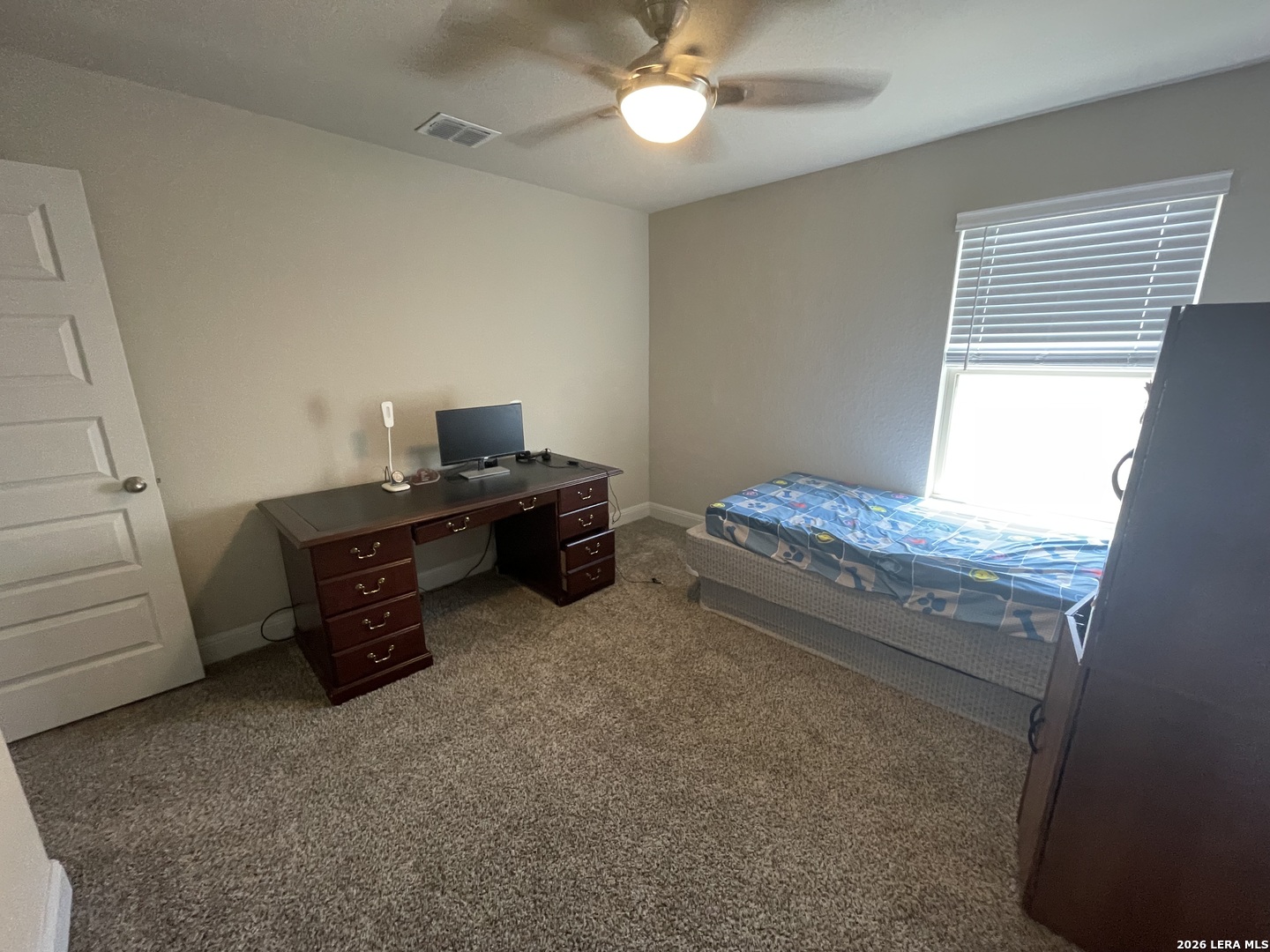 Rental listing now available in the gated community of Winding Oaks. This beautiful 4-bedroom, 3-bathroom home features an open floor plan with tall windows and abundant natural light. The layout includes a front-entry office space and a downstairs laundry room for added convenience. The main floor hosts a master suite complete with double sinks, a large walk-in shower, and a spacious walk-in closet. Additionally, there is a secondary bedroom with a full bathroom located on the first level. The bright, open kitchen is fully equipped with stainless steel appliances, a breakfast bar, a large island, and extensive cabinetry. For your convenience, the refrigerator, washer, and dryer are all included. Upstairs, the home offers a versatile game room along with two additional bedrooms connected by a Jack and Jill bathroom. The outdoor space features a covered patio that backs up to a peaceful greenbelt. As part of the Winding Oaks community, residents enjoy access to numerous amenities, including a pool located within easy walking distance. The owner is open to leaving the current furnishings, allowing the tenant to select which items they wish to keep. Furthermore, the owner is prepared to move within one week of receiving a completed application.