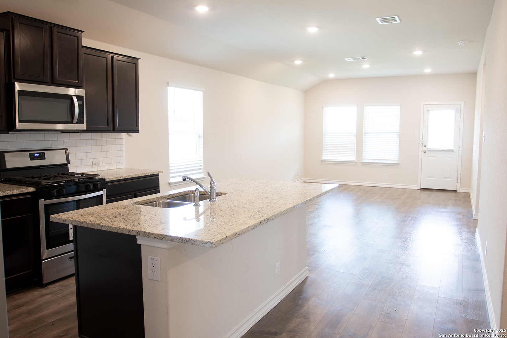 Reduced application fee and no move in fee for applications approved by August 14, 2025. Welcome to 5519 Stormie Keep - Comfort, Convenience, and Style in North Central San Antonio Nestled in a quiet neighborhood in North Central San Antonio, this beautifully maintained single-story home offers an inviting blend of modern comfort and functional design. With its open-concept layout, the spacious living, dining, and kitchen areas flow effortlessly-perfect for everyday living and entertaining. The kitchen is well-appointed with sleek stainless steel appliances, including a refrigerator, built-in microwave, and dishwasher. Ample counter space and cabinetry make meal preparation both easy and enjoyable. Designed with privacy in mind, the primary suite is thoughtfully separated from the secondary bedrooms. It features a generous layout and a full ensuite bath-an ideal retreat after a long day. Additional highlights include a dedicated laundry room with washer and dryer connections, central HVAC, recessed lighting, and abundant natural light throughout. The home is also equipped with a full-home water filtration system and a water softener, providing clean, high-quality water for your family. Don't miss your chance to enjoy low-maintenance living in a prime San Antonio location. Schedule your tour today!