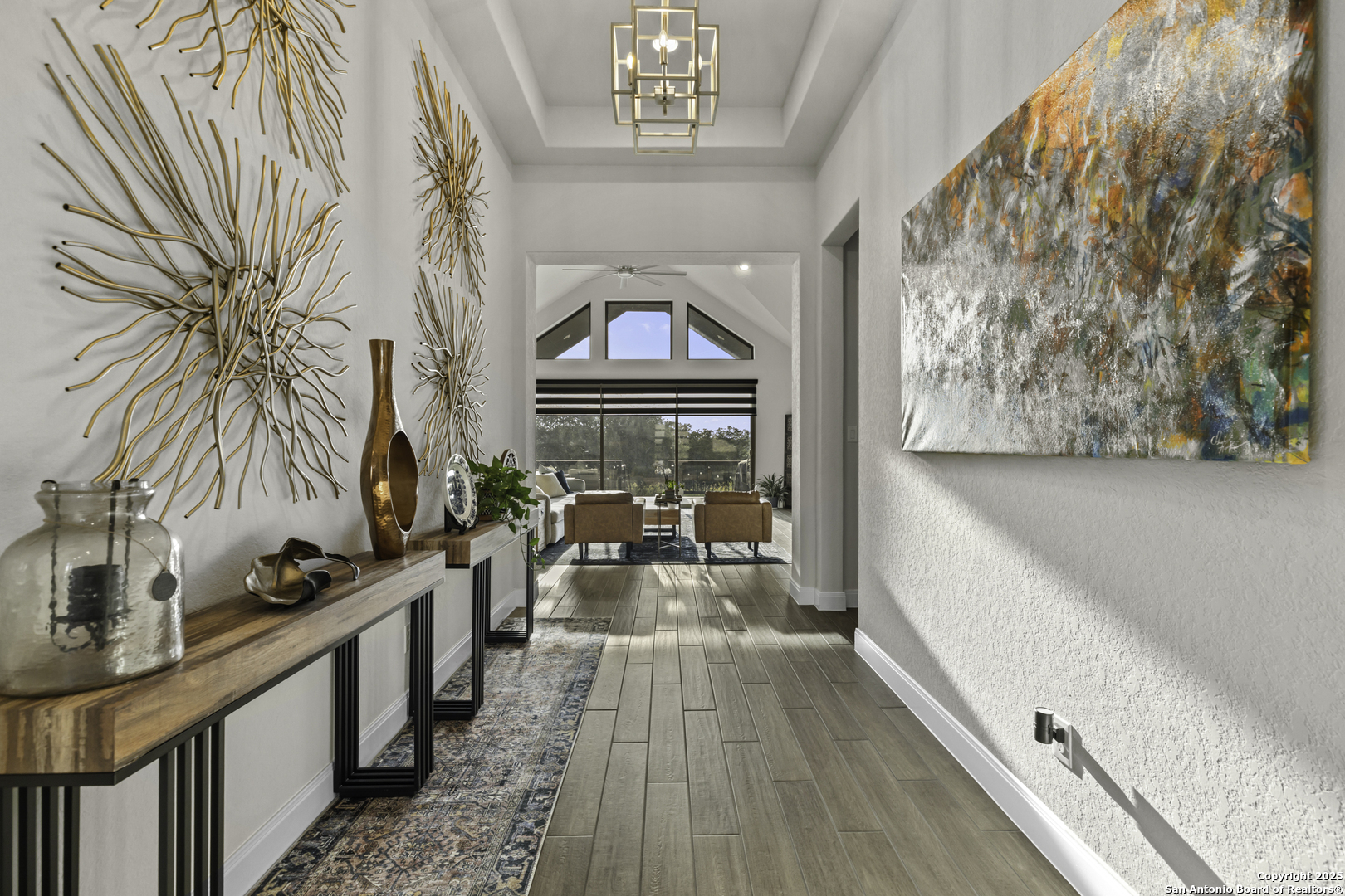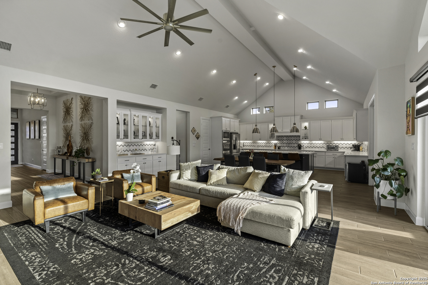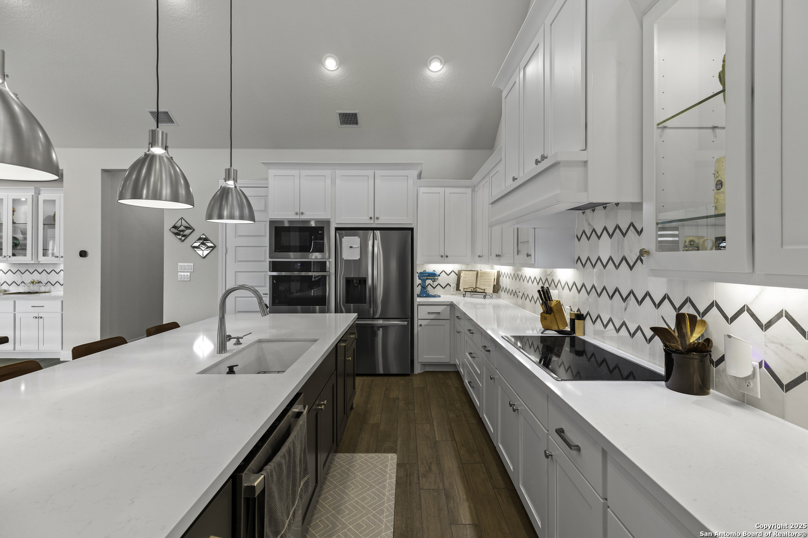 Welcome to 552 Falcon Cove, an upgraded and stylish Perry Home that is truly move-in ready. Situated on a desirable half-acre lot within the sought-after Medina ISD, this property offers the perfect blend of comfort, function, and design. This spacious residence features 4 bedrooms, 3.5 bathrooms, and an open layout designed for modern living. The living room centers around a cozy fireplace, while the chef's kitchen is highlighted by a large island, upgraded appliances, and designer finishes. The spa-inspired primary suite boasts a walk-in shower and luxurious details, creating a true retreat. Additional highlights include a 3-car garage with extra storage, an extended covered patio with upgraded outdoor living, and energy-efficient enhancements throughout the home. This property is still covered under the full Perry Homes warranty.