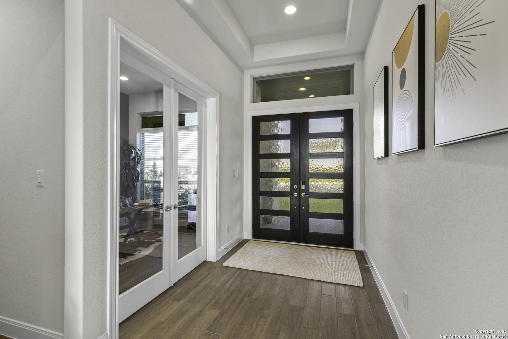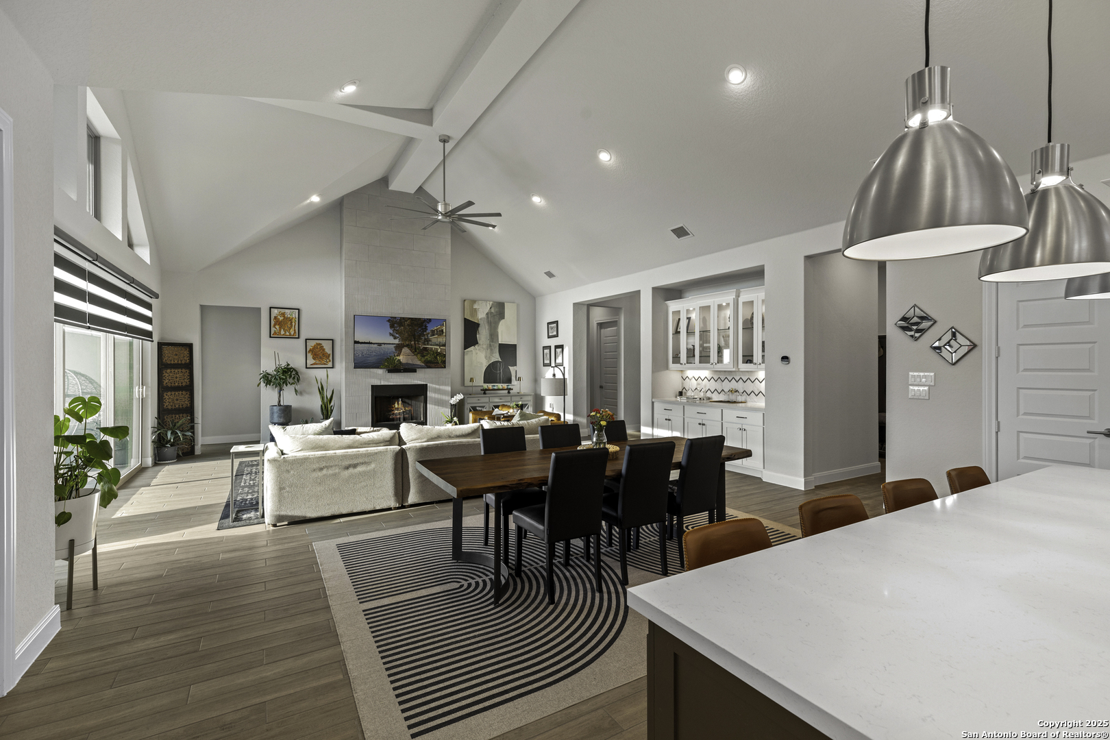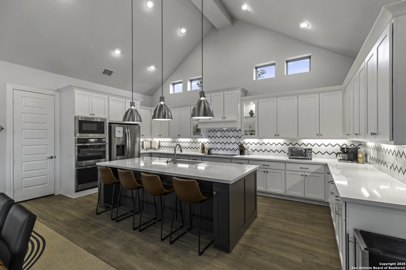 Welcome to 552 Falcon Cove, an upgraded and stylish Perry Home that is truly move-in ready. Situated on a desirable half-acre lot within the sought-after Medina ISD, this property offers the perfect blend of comfort, function, and design. This spacious residence features 4 bedrooms, 3.5 bathrooms, and an open layout designed for modern living. The living room centers around a cozy fireplace, while the chef's kitchen is highlighted by a large island, upgraded appliances, and designer finishes. The spa-inspired primary suite boasts a walk-in shower and luxurious details, creating a true retreat. Additional highlights include a 3-car garage with extra storage, an extended covered patio with upgraded outdoor living, and energy-efficient enhancements throughout the home. This property is still covered under the full Perry Homes warranty.