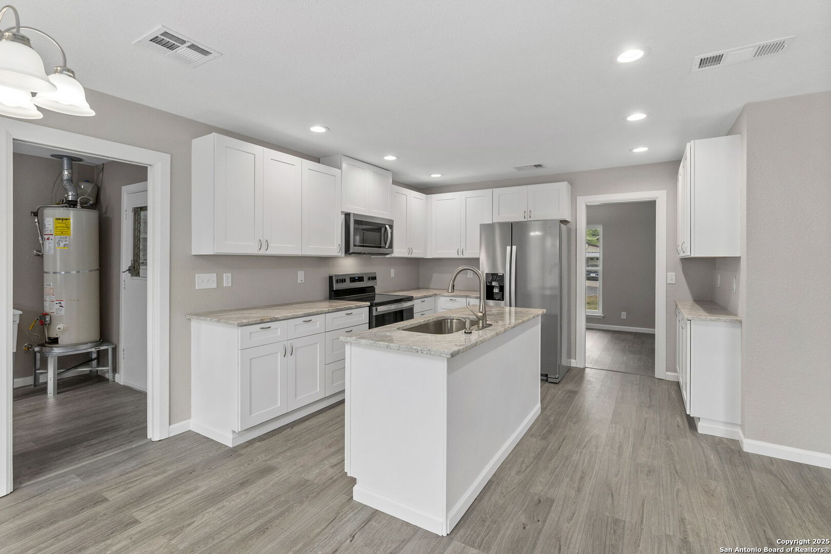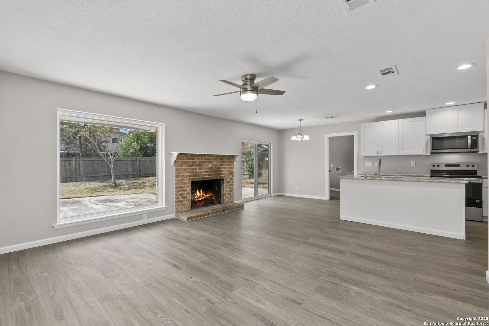 Fully Renovated 3-Bedroom Home on Corner Lot with Garage Workshop Welcome to 5534 Castle Way - a move-in ready 3-bedroom, 2-bath home situated on a desirable corner lot. This fully rehabbed property features an open floor plan with brand-new flooring, fresh interior and exterior paint, updated lighting, and modern finishes throughout. The kitchen has been completely updated with quartz countertops, stainless steel appliances, and custom cabinetry. Both bathrooms have been renovated with contemporary tile and stylish fixtures. The spacious 2-car garage includes a dedicated workshop area - ideal for projects, storage, or additional workspace.Conveniently located near Loop 410, shopping, and schools, this home offers comfort, function, and style all in one.Schedule your showing today!