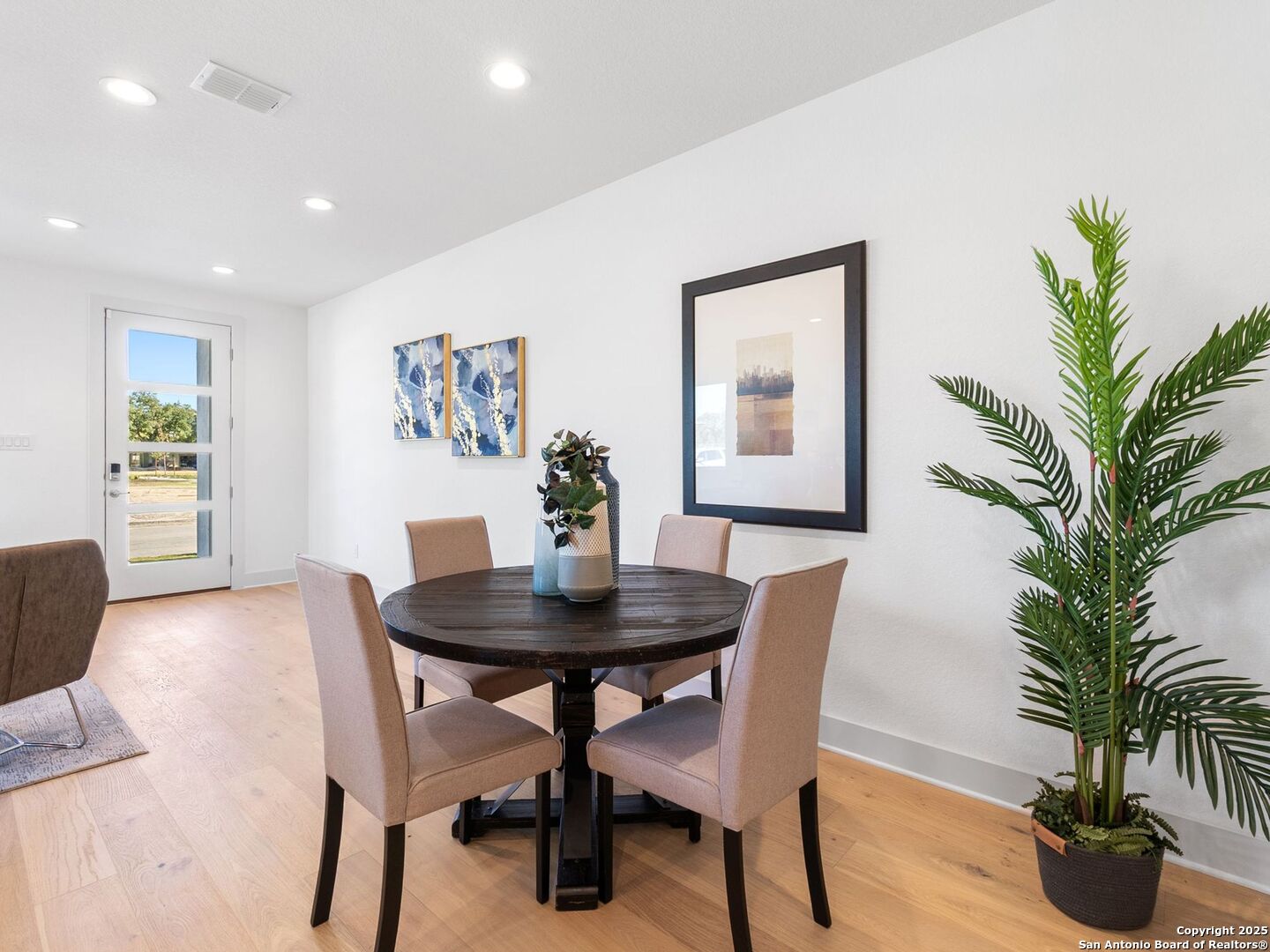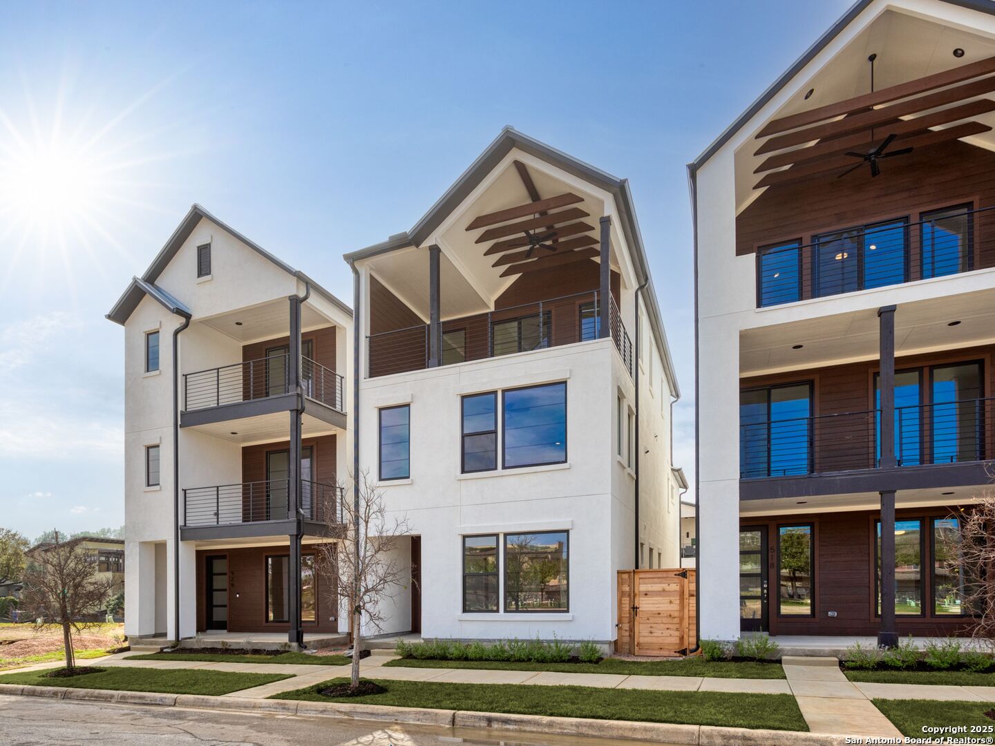 Welcome to Victoria Commons, located in the culturally rich and vibrant Lavaca Neighborhood part of Southtown. Steps from everything Downtown San Antonio has to offer, including award-winning restaurants, cocktail lounges, coffee shops, vibrant arts scene, theater and music venues, Alamodome, Hemisphere-Civic Park, Riverwalk, Blue Star Arts Complex, Museum and Mission Reach, and ease of access to major expressways. Don't miss out on the chance to experience the best of city living in this truly exceptional home. Experience the Alamo floor plan, a seamless blend of contemporary design and everyday comfort. The entry level features an open-concept main floor centers on a bright living area that flows into the dining and kitchen. The spacious kitchen features quartz countertops, a generous island, tasteful backsplash, gas cooking, custom cabinetry, and a pantry. On the second level the primary suite offers a tranquil retreat with a balcony, dual-vanity bath, walk-in shower, and a generously sized closet, study or gym, utility room, secondary bedroom and full bath. A versatile third level hosts a spacious game room with large balcony, plus a third bedroom and full bath. Thoughtful design, abundant upgrades, and energy-efficient, low-maintenance features make everyday living effortless. Listing images are for representation purposes only and vary for all floor plans.