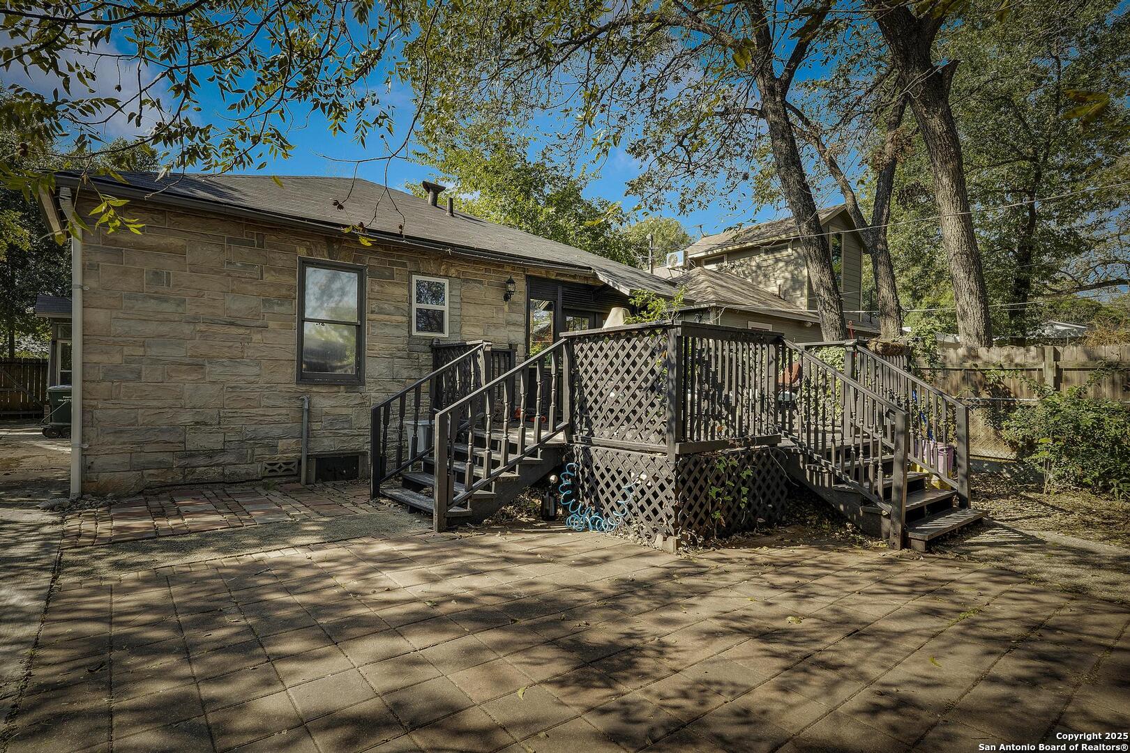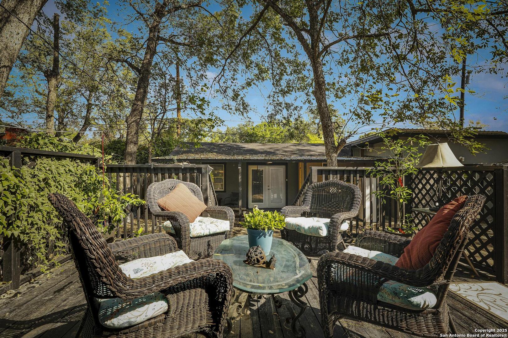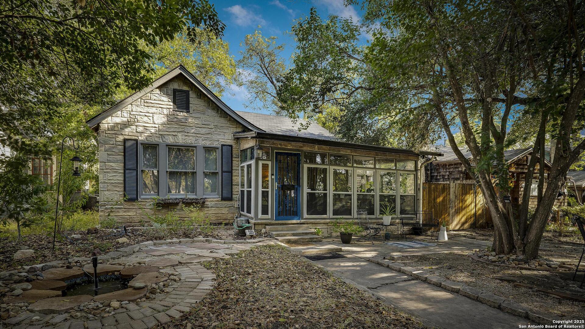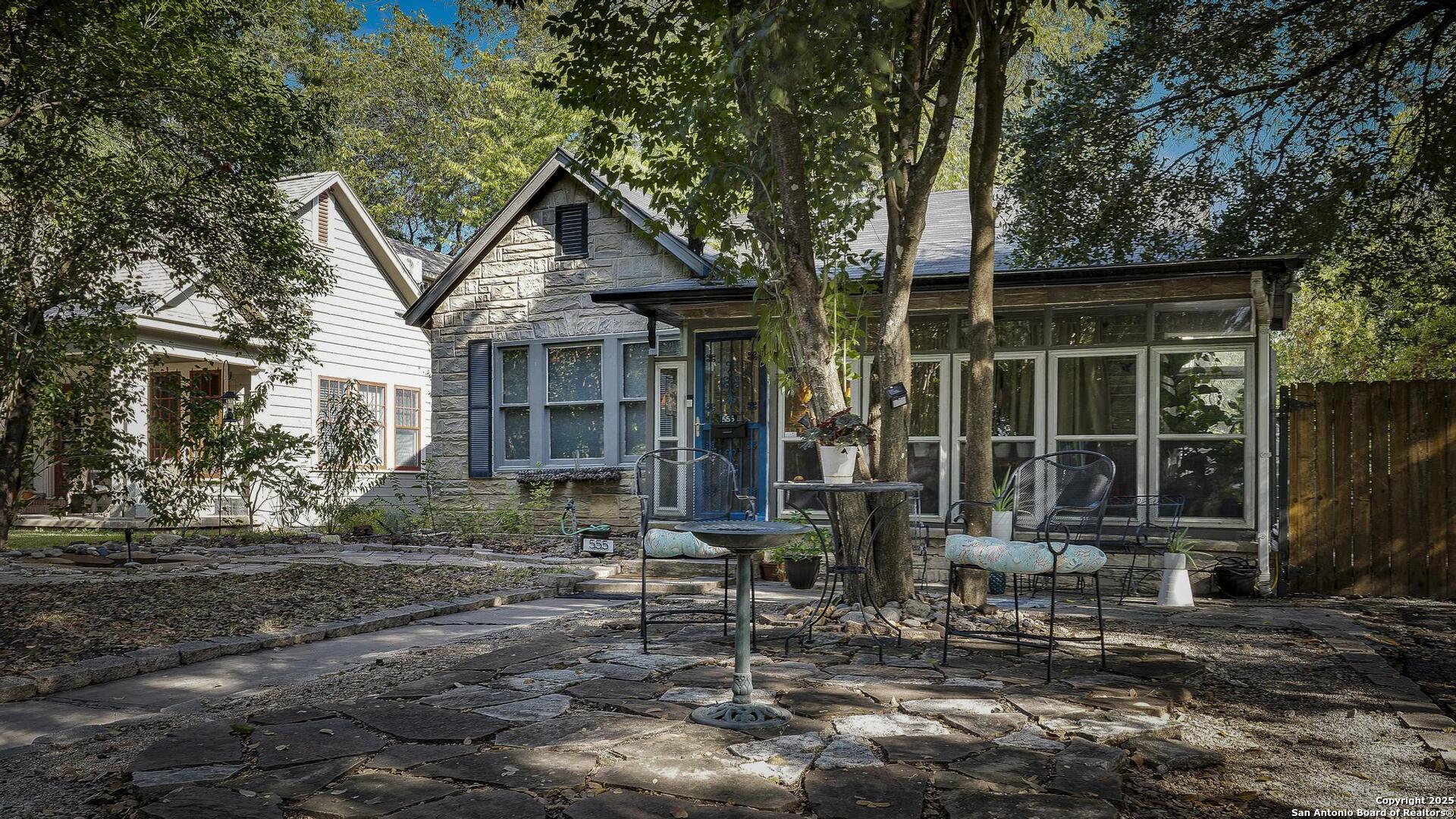 Welcome to River Road! Charming stone cottage with a detached casita in the highly desirable River Road neighborhood. Just steps from Brackenridge Park and minutes from The Pearl, Fort Sam Houston, and downtown San Antonio. The main home offers 3 bedrooms, 1 bath, and 1,247 square feet, blending timeless character with modern comfort. Original hardwood floors, arched doorways, and abundant natural light create a warm, inviting atmosphere. The living room features a cozy stone fireplace and flows effortlessly into the dining room, ideal for entertaining. The kitchen offers gas cooking, granite countertops, and plenty of cabinet space. The front sun-room overlooks the Brackenridge Golf Course, offering a serene and peaceful setting which is the perfect spot for morning coffee, reading, or plant lovers' paradise. Step outside to enjoy the spacious deck off the main house, shaded by mature trees and ideal for relaxing or hosting friends. The detached 835-square-foot casita includes 1 bedroom, 1 bath, a living area, and a large covered patio, providing a comfortable space for entertaining. Nestled in one of San Antonio's most picturesque and walkable neighborhoods, this home offers easy access to nature and city life. Stroll to Brackenridge Park, bike to The Pearl, or explore nearby restaurants and entertainment in minutes. 555 E Craig Place perfectly captures the essence of River Road living. Vintage charm, modern comfort, and an unbeatable location. The main house features 3 beds and 1 full bath. The casita has 1 bedroom and 1 full bathroom.