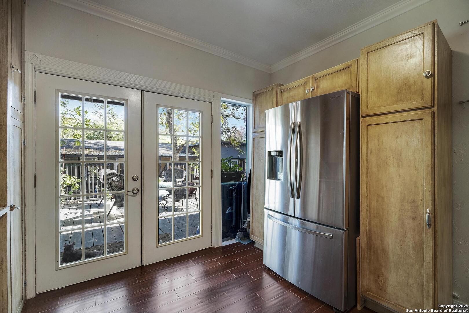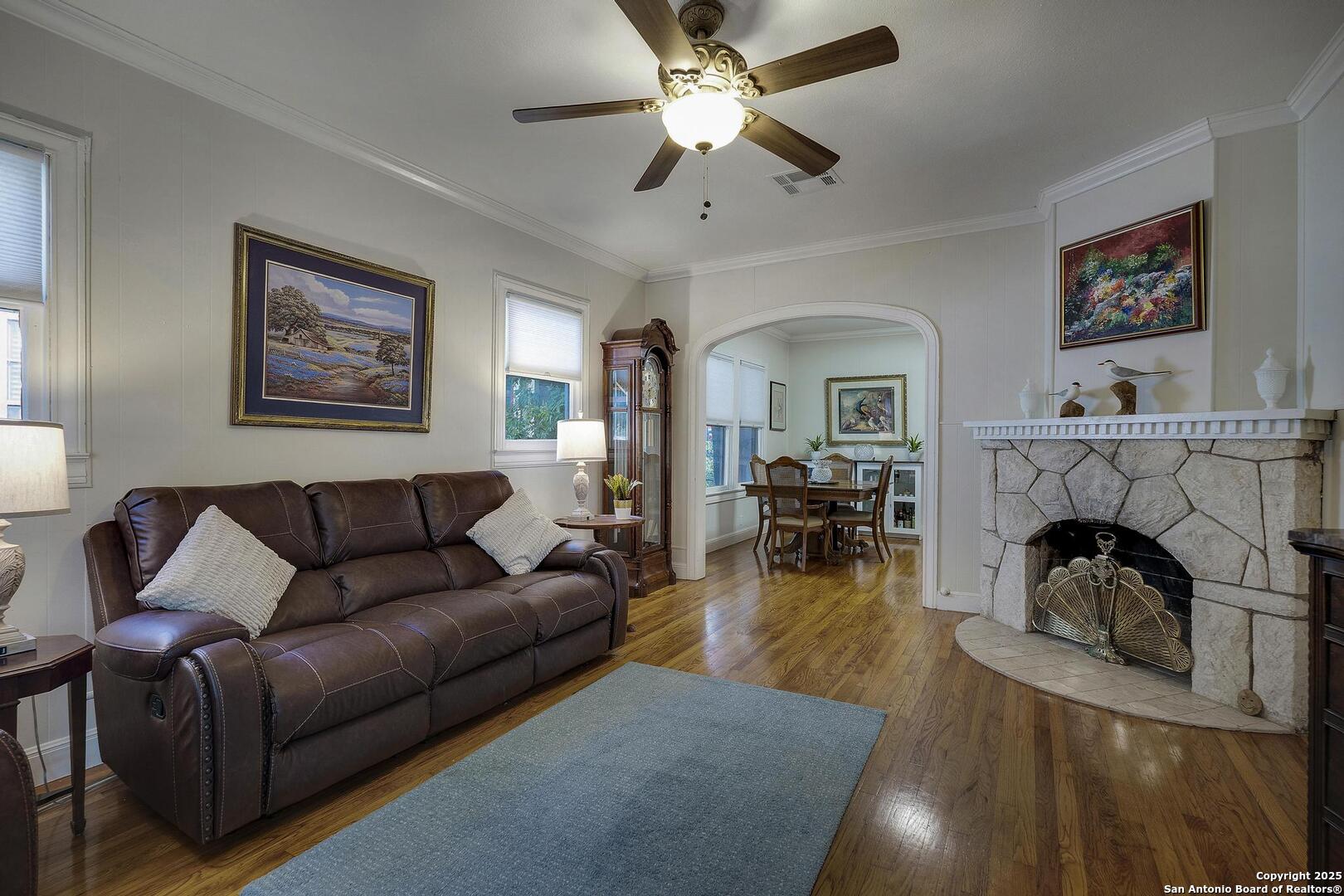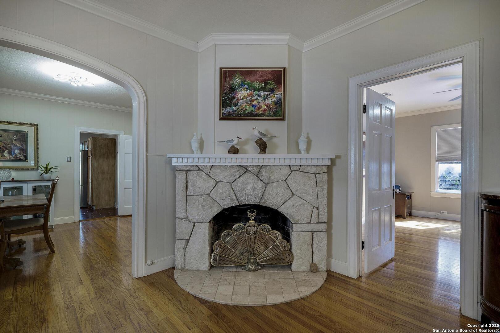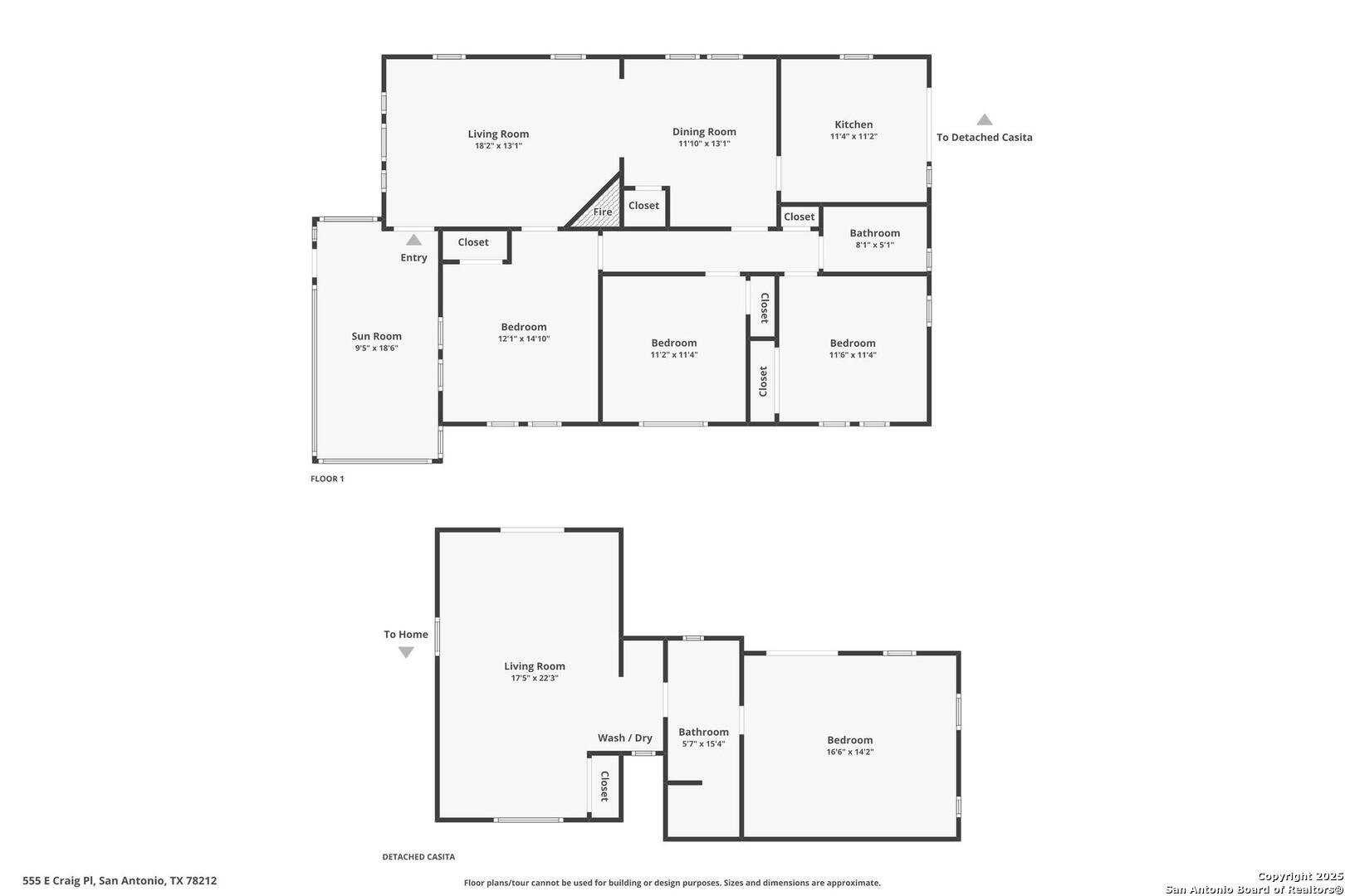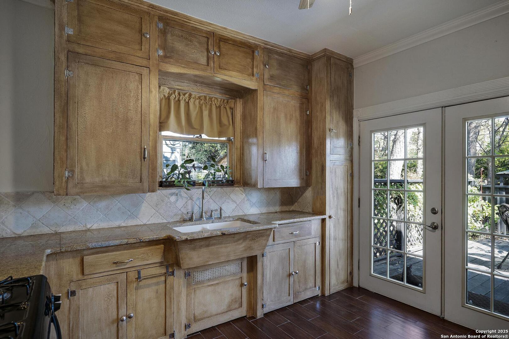 Welcome to River Road! Charming stone cottage with a detached casita in the highly desirable River Road neighborhood. Just steps from Brackenridge Park and minutes from The Pearl, Fort Sam Houston, and downtown San Antonio. The main home offers 3 bedrooms, 1 bath, and 1,247 square feet, blending timeless character with modern comfort. Original hardwood floors, arched doorways, and abundant natural light create a warm, inviting atmosphere. The living room features a cozy stone fireplace and flows effortlessly into the dining room, ideal for entertaining. The kitchen offers gas cooking, granite countertops, and plenty of cabinet space. The front sun-room overlooks the Brackenridge Golf Course, offering a serene and peaceful setting which is the perfect spot for morning coffee, reading, or plant lovers' paradise. Step outside to enjoy the spacious deck off the main house, shaded by mature trees and ideal for relaxing or hosting friends. The detached 835-square-foot casita includes 1 bedroom, 1 bath, a living area, and a large covered patio, providing a comfortable space for entertaining. Nestled in one of San Antonio's most picturesque and walkable neighborhoods, this home offers easy access to nature and city life. Stroll to Brackenridge Park, bike to The Pearl, or explore nearby restaurants and entertainment in minutes. 555 E Craig Place perfectly captures the essence of River Road living. Vintage charm, modern comfort, and an unbeatable location. The main house features 3 beds and 1 full bath. The casita has 1 bedroom and 1 full bathroom.