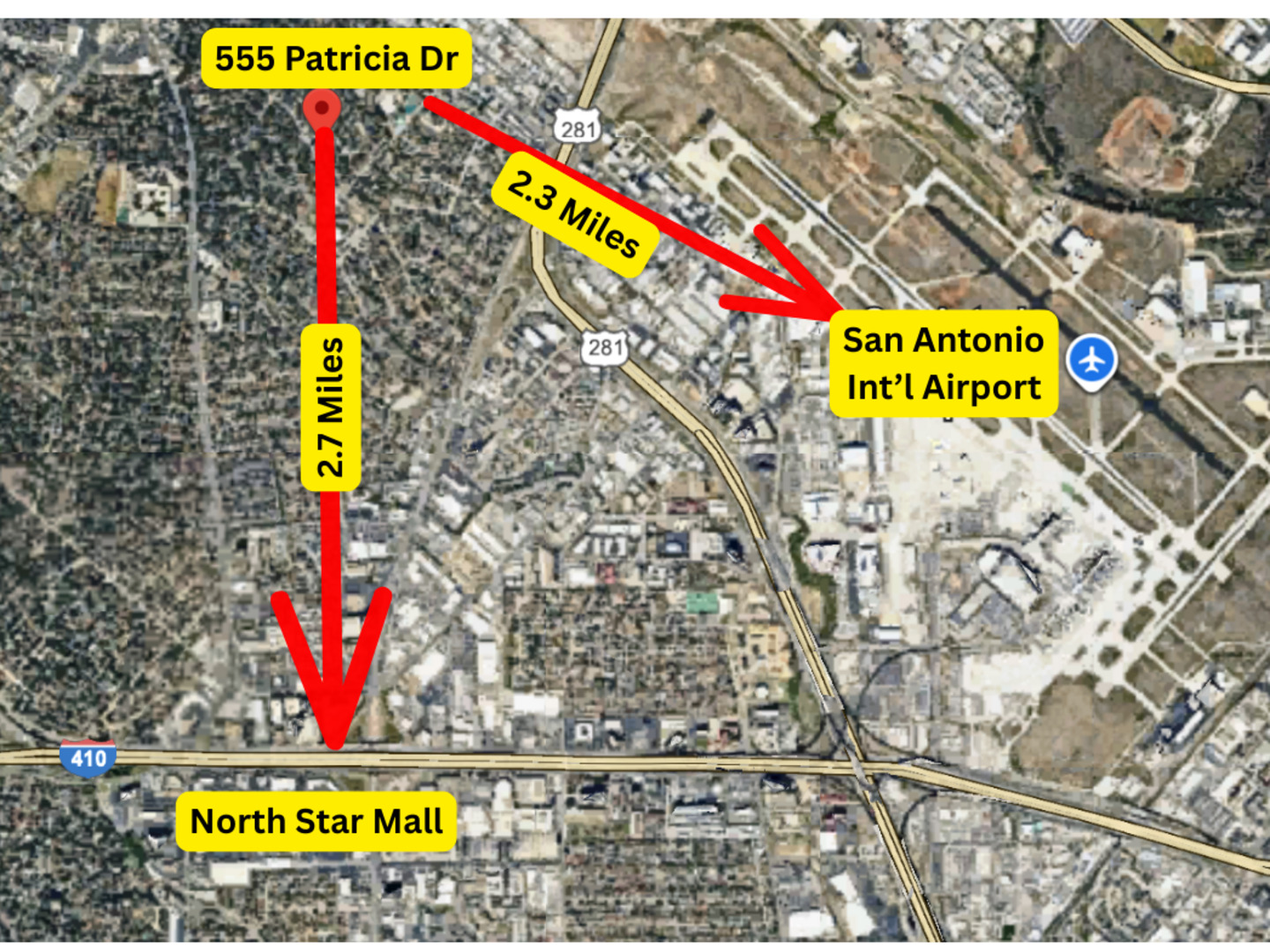 Nestled in the beautiful Enchanted Forest, this charming home offers a variety of features that make it truly special. Downstairs, you'll find a versatile study or office space, a combined living and dining room, and a kitchen equipped with granite countertops, a gas range, and stainless steel appliances, including a refrigerator and dishwasher. The converted two-car garage offers flexible use as a game room, media room, party space, hobby area, or workout room, and it comes with its own wall AC unit for comfort. A washer and dryer are also included for your convenience. Moving upstairs, there are three cozy bedrooms and a bathroom. The stairs and the upper area feature light wood-tone laminate flooring, while the lower level is tiled throughout, which means there's absolutely no carpet to worry about. Step outside to enjoy the covered patio that overlooks a spacious backyard, perfect for relaxation or entertaining. This home is conveniently located near Blanco Rd, San Pedro Ave, Hwy 281, and Loop 410, putting you just minutes away from North Star Mall (2.3 miles), numerous dining options, San Antonio International Airport, and much more. Plus, it's within walking distance of Harmony Hills Elementary School - just 0.3 miles away!!