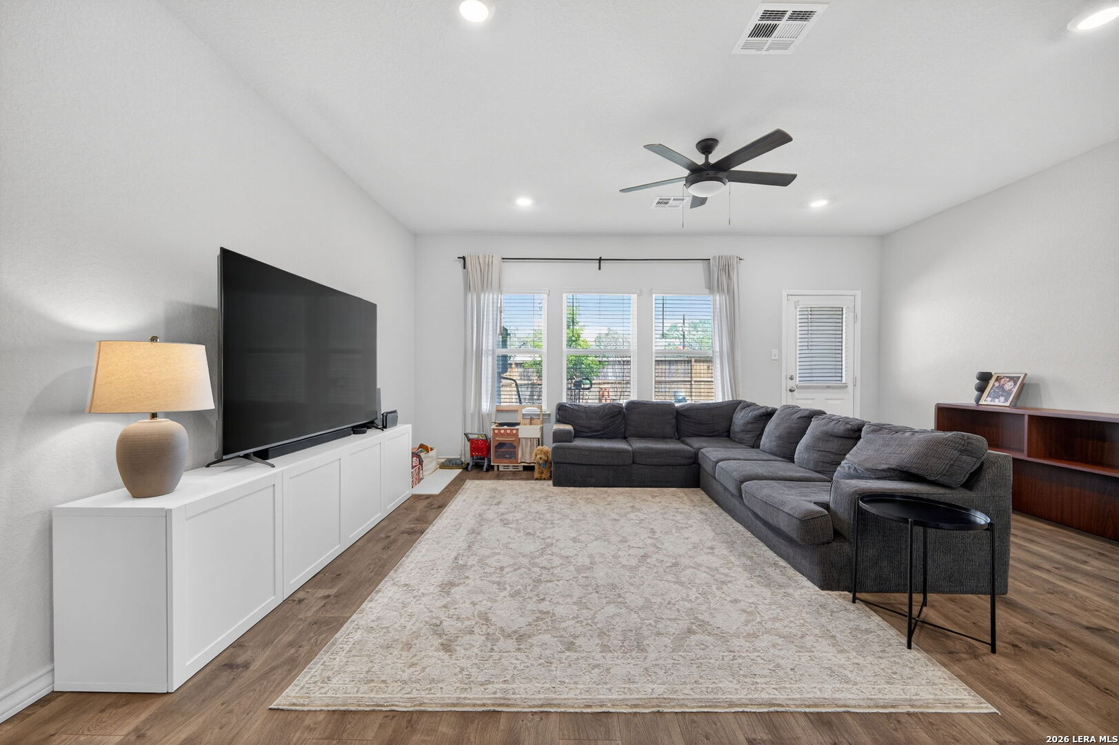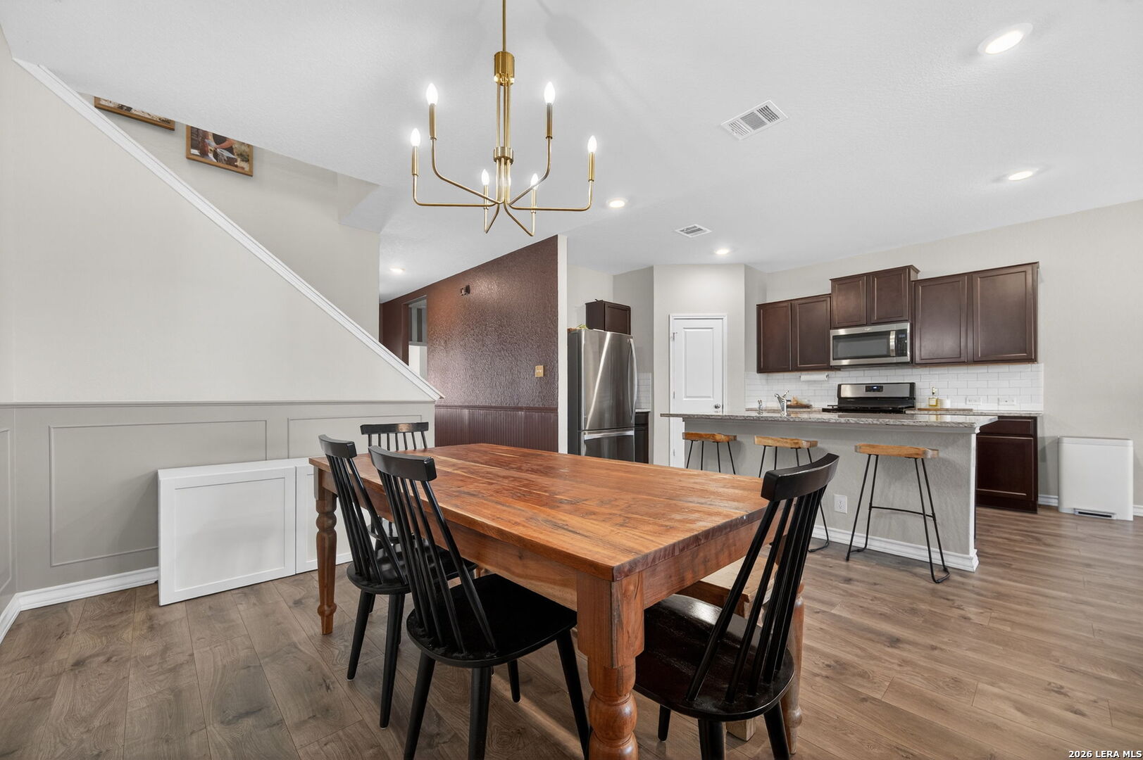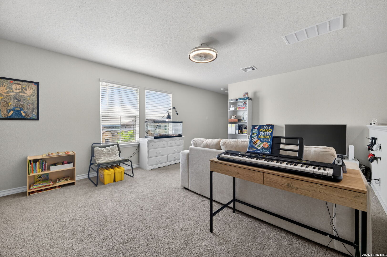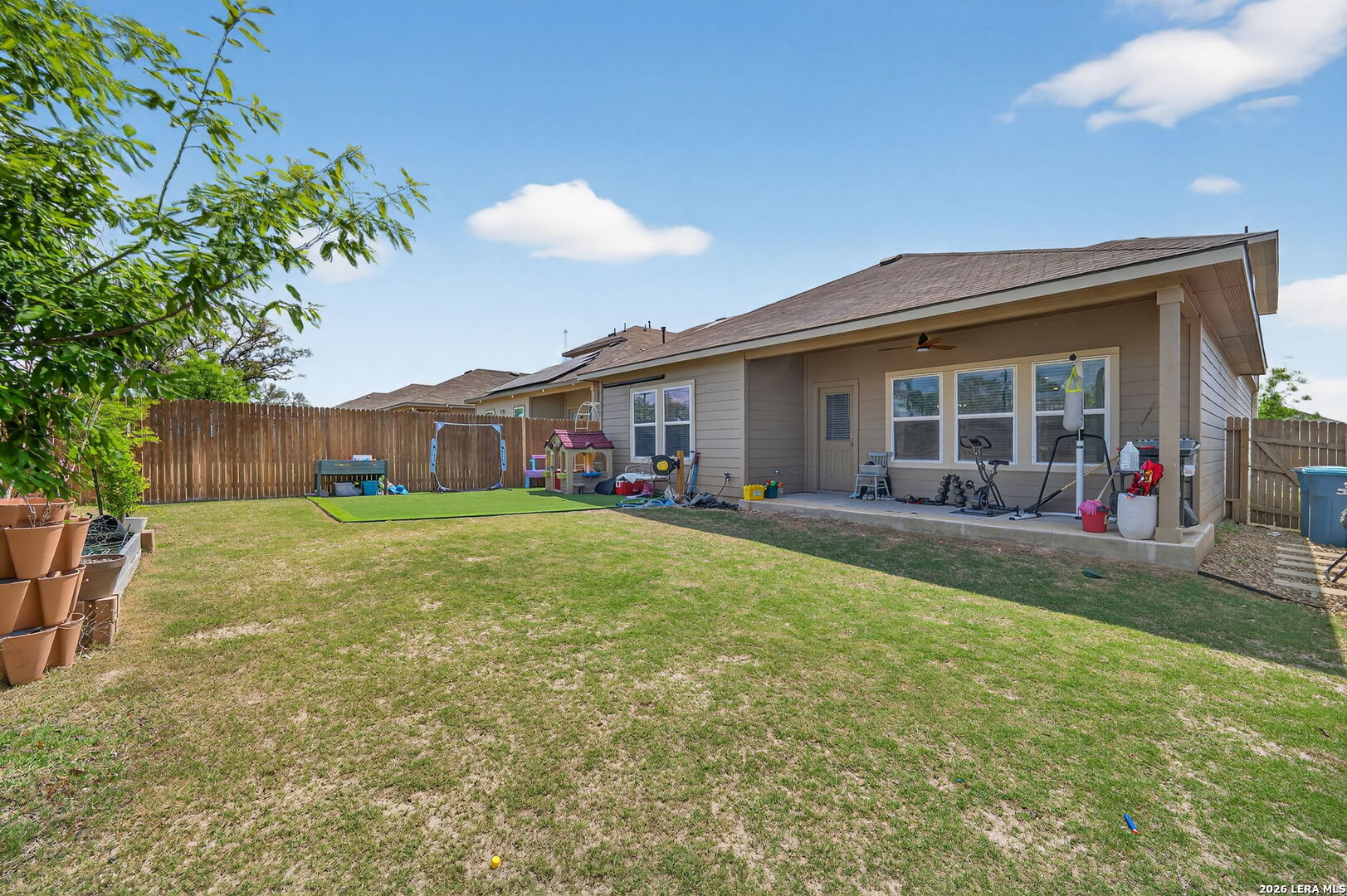 Ready for move-in April 15th. This lovely two-story home offers 2,257 sq. ft., 4 bedrooms, and 3 full bathrooms. Just off the inviting front entry, you'll find a secondary bedroom, full bathroom, utility room, and a grand kitchen. The entry opens into a spacious open-concept layout featuring the kitchen, dining area, and living room, perfect for both everyday living and entertaining. The kitchen is beautifully designed with granite countertops, stainless steel appliances, a gas range, classic white subway tile backsplash, a large island with dual sinks, and a generous walk-in corner pantry. The private primary suite is located downstairs and features a luxurious walk-in shower, separate water closet, and a spacious walk-in closet. Upstairs, you'll find a versatile game room, two additional bedrooms with walk-in closets, and a third full bathroom. Step outside to enjoy the large covered patio and a professionally landscaped yard with an irrigation system and putting green. The community offers great amenities, including a new pool and playground, and is conveniently located near Highways 281 and 1604, with easy access to shopping and restaurants.