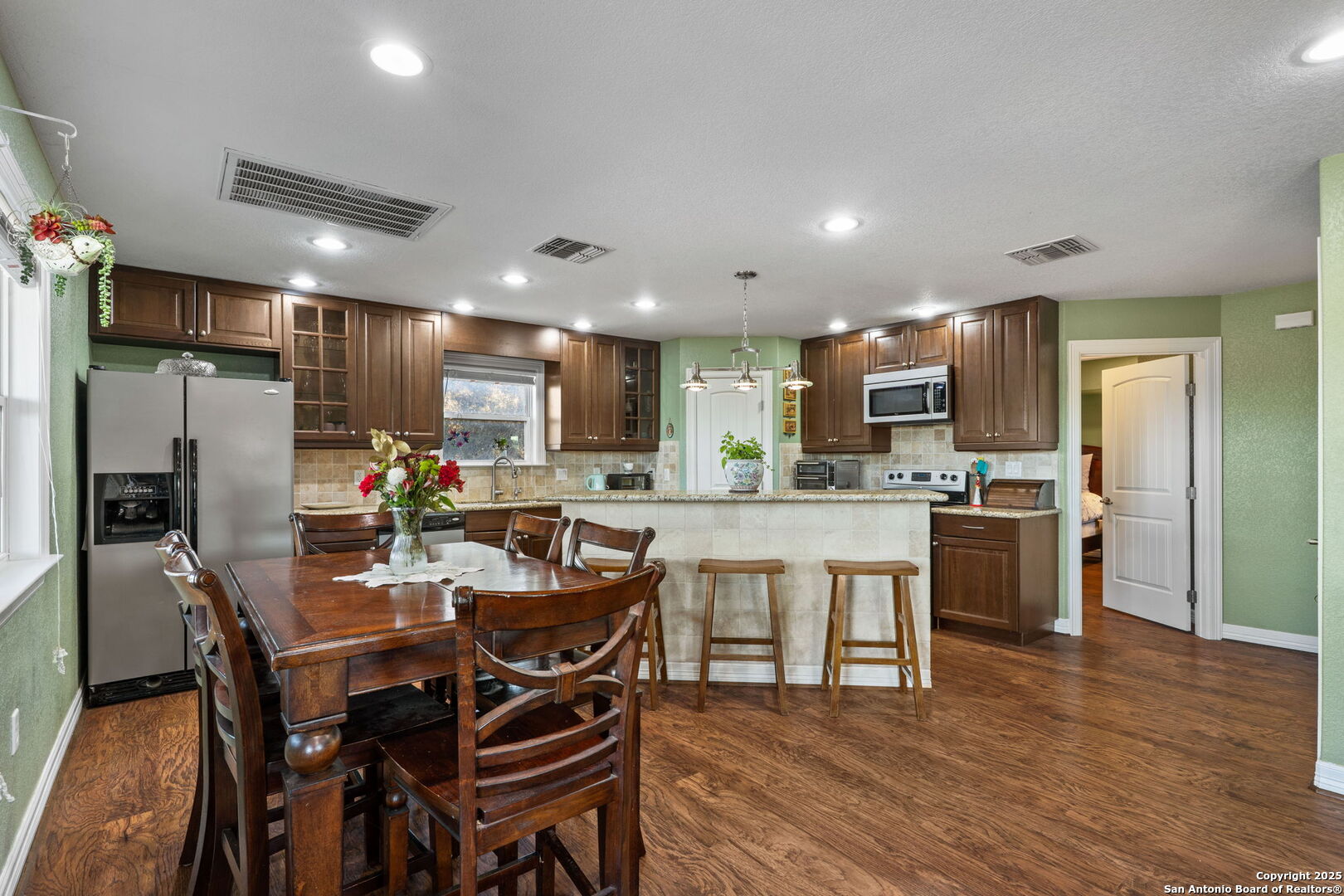 Imagine waking up to golden Hill Country sunrise and ending your evenings with the glowing sunsets slipping through the hills. At 556 Apollo Drive, every day feels like a getaway. This 5 bedroom, 2.5 bath, 2,679 sq ft. home offers space for everyone, with bedrooms on every level, a quiet study and a gameroom for laughter filled nights. The granite kitchen is the heart of the home where coffee brews before a morning walk and wood laminate floors guide you out to the screened in porch to watch deer pass by. Or you may choose one of the other patios to sit and relax! When the day winds down, gather around the outdoor fire pit - roasting s'mores, listening to music and making memories under the stars. The large detached garage keeps hobbies and projects at hand. Best of all, you're part of a friendly and welcoming community just down the road from Canyon Lake where weekends are filled with fishing and lakeside picnics. This just isn't a home, it's a Texas Hill Country lifestyle you will fall in love with.