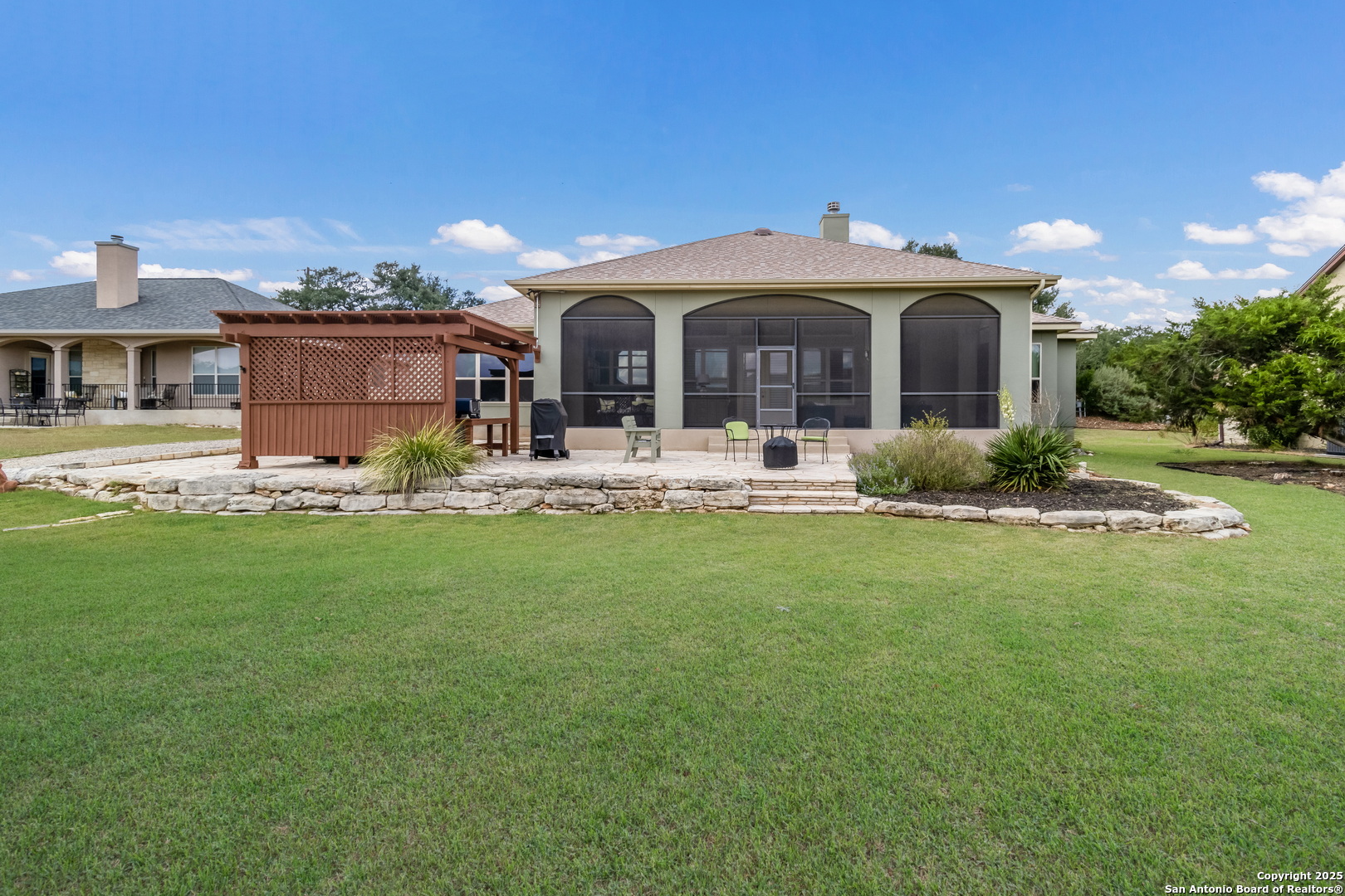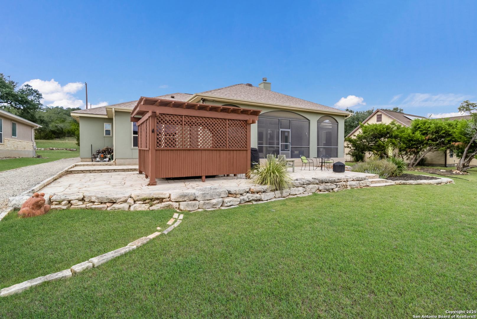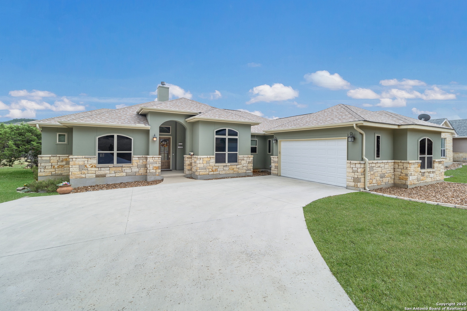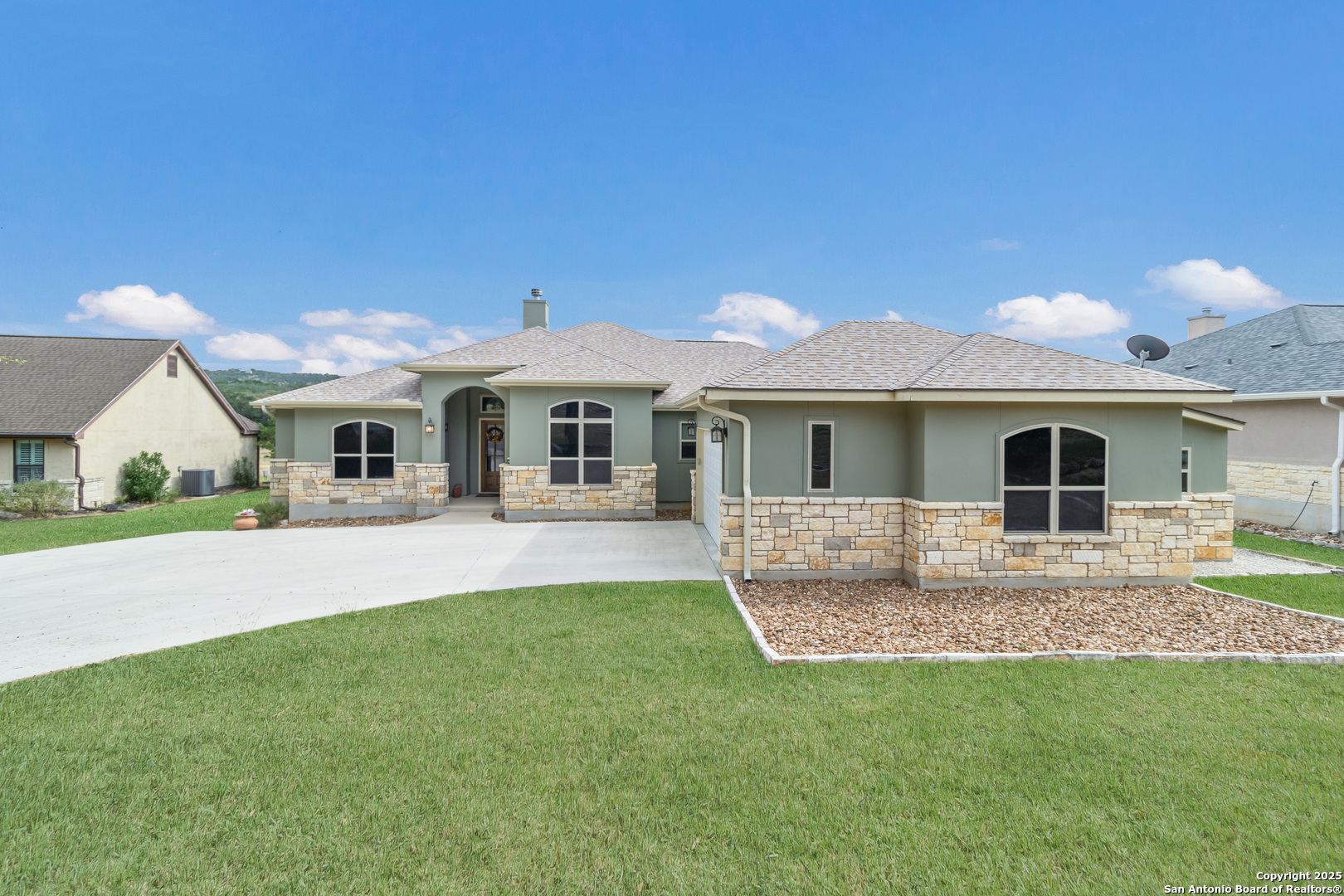 Experience Hill Country living in this beautifully maintained single-story home-featuring an expansive open layout, inviting natural light, and high-quality finishes throughout. Enjoy cooking in the modern kitchen with granite countertops, dark cabinetry, and stainless steel appliances, while the adjoining living room highlights a stone fireplace and scenic backyard views. The spacious primary suite offers a large walk-in closet and a private ensuite bath with a luxurious walk-in shower. Additional bedrooms provide versatility for guest accommodations or a home office. Outdoors, relax in the oversized, screened-in patio or soak in the covered hot tub while overlooking serene, landscaped grounds. The oversized garage also includes an extra bay, ideal for a golf cart or workshop space. Other features include a separate formal dining area, a dedicated laundry room with ample cabinetry, and a flexible floor plan with multiple storage options. The home sits in a picturesque neighborhood near Canyon Lake-offering quick access to recreational amenities, shopping, and dining. Schedule a private tour to discover the comfort and beauty of this exceptional Canyon Lake property.