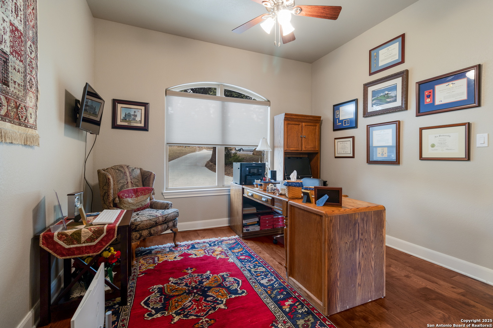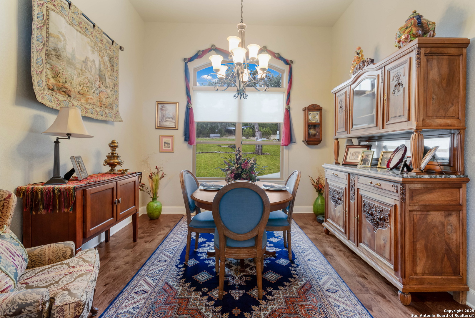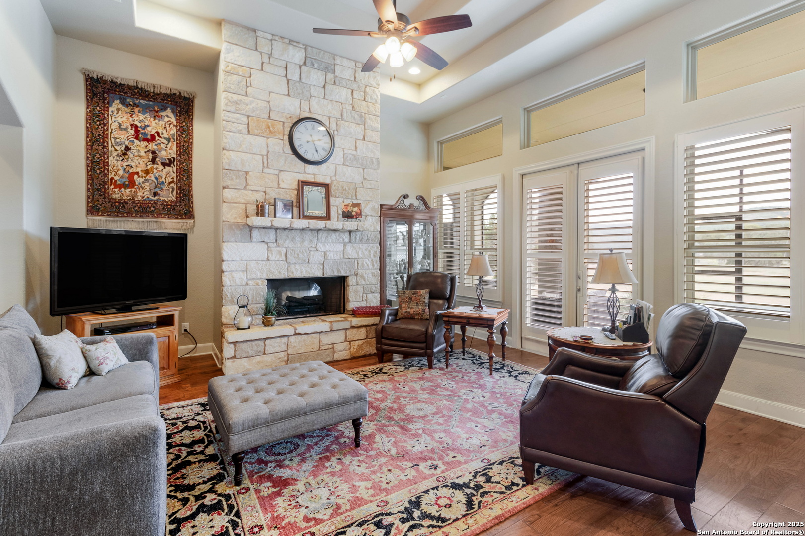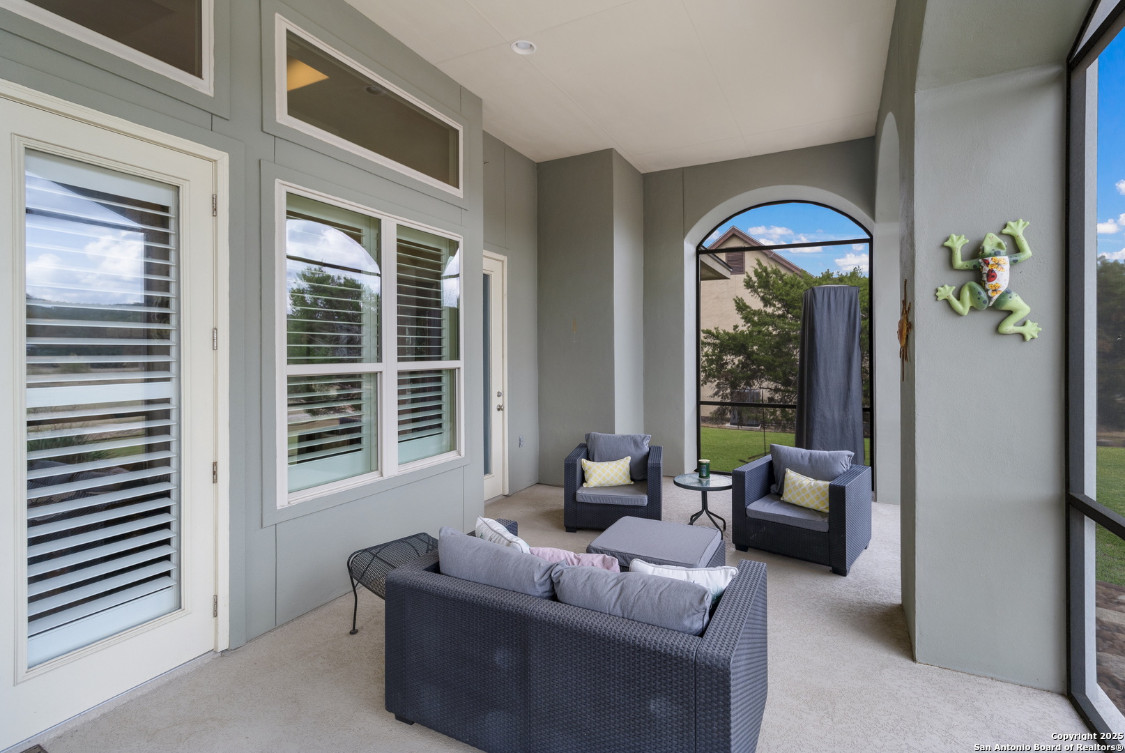 Experience Hill Country living in this beautifully maintained single-story home-featuring an expansive open layout, inviting natural light, and high-quality finishes throughout. Enjoy cooking in the modern kitchen with granite countertops, dark cabinetry, and stainless steel appliances, while the adjoining living room highlights a stone fireplace and scenic backyard views. The spacious primary suite offers a large walk-in closet and a private ensuite bath with a luxurious walk-in shower. Additional bedrooms provide versatility for guest accommodations or a home office. Outdoors, relax in the oversized, screened-in patio or soak in the covered hot tub while overlooking serene, landscaped grounds. The oversized garage also includes an extra bay, ideal for a golf cart or workshop space. Other features include a separate formal dining area, a dedicated laundry room with ample cabinetry, and a flexible floor plan with multiple storage options. The home sits in a picturesque neighborhood near Canyon Lake-offering quick access to recreational amenities, shopping, and dining. Schedule a private tour to discover the comfort and beauty of this exceptional Canyon Lake property.