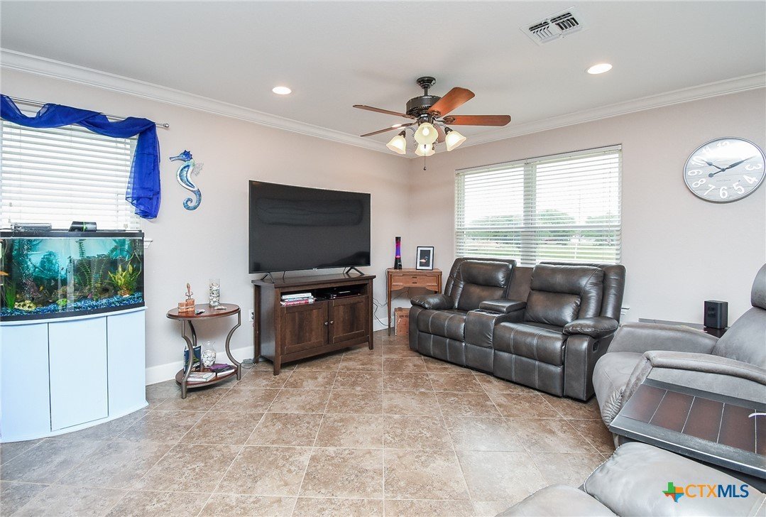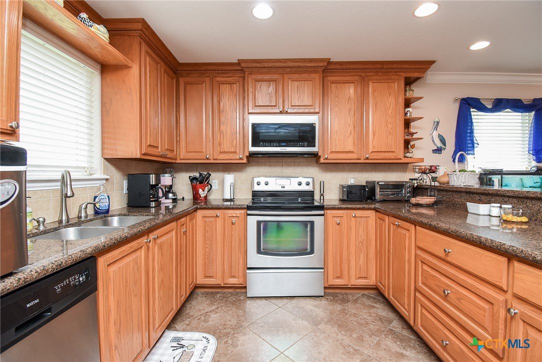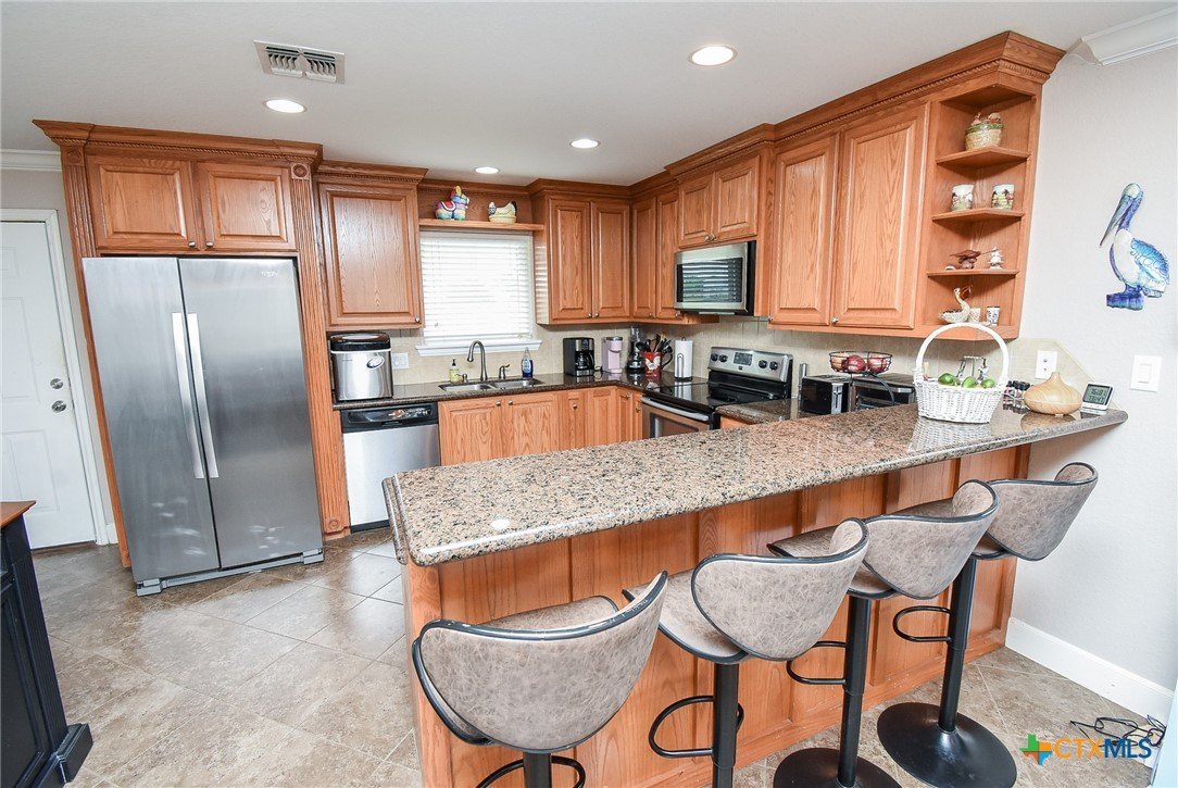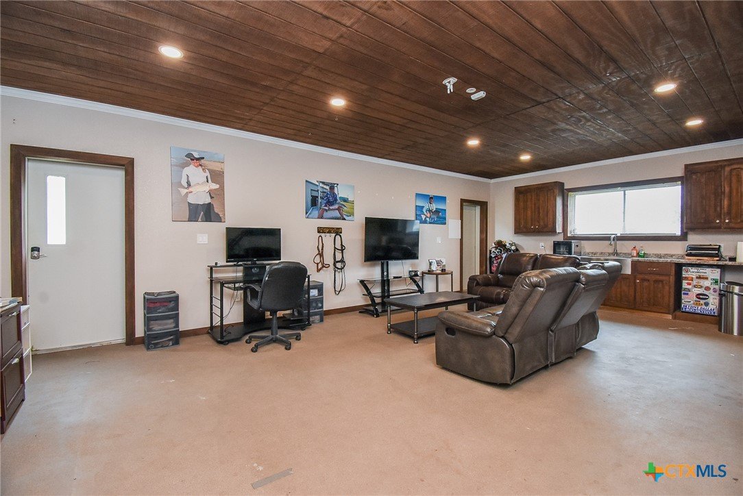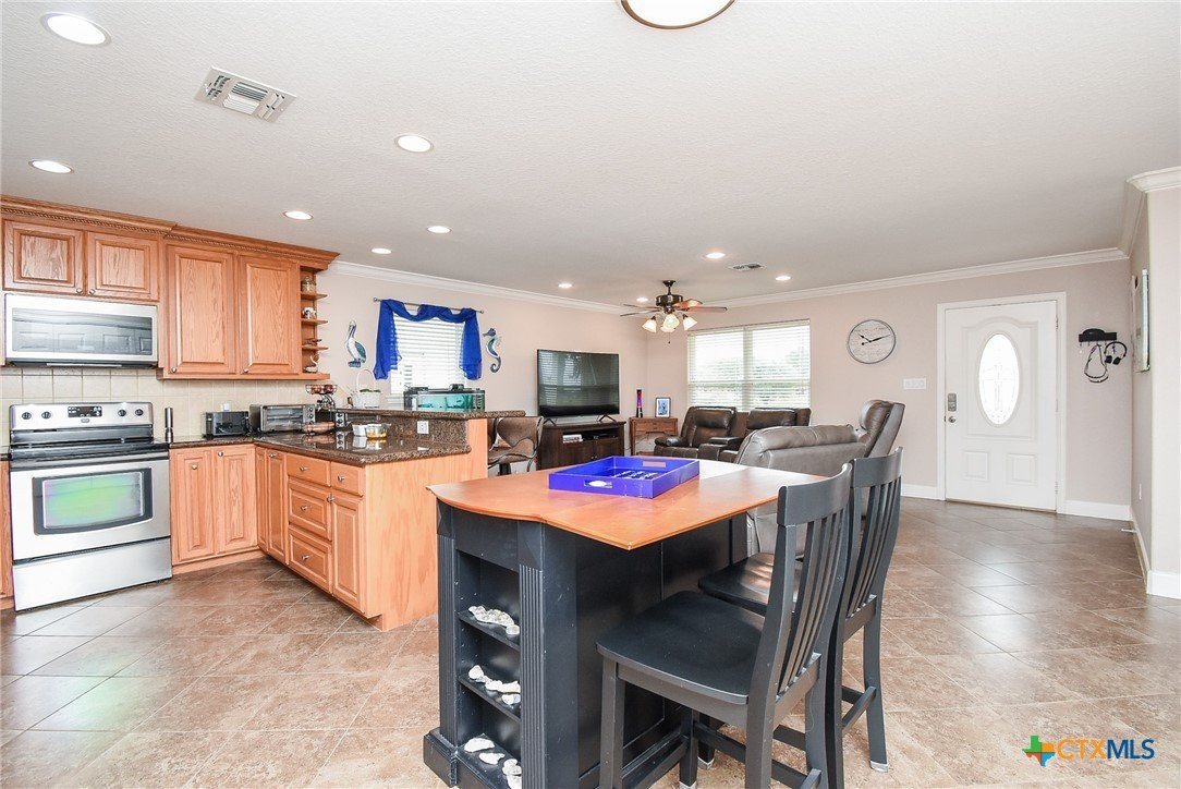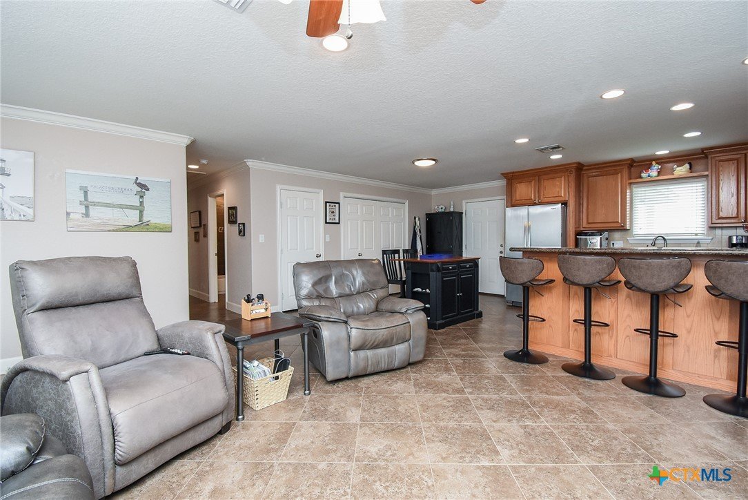 Discover relaxed coastal living in this stunning waterview home nestled within the gated community of Cape Carancahua. Designed for comfort and easy entertaining, the open-concept layout features a light-filled living area that flows effortlessly into the dining space and kitchen, complete with custom cabinetry, granite countertops, pantry storage, breakfast bar seating, and a scenic view from the kitchen sink. The primary suite offers a peaceful retreat with an ensuite bath, walk-in closet plus a secondary closet, and a beautifully finished glass-and-tile shower with bench seating. Step outside to enjoy the coastal breeze from the covered back patio or spend quiet mornings in the garden space. The garage adds exceptional versatility with parking, workshop space, and a temperature-controlled living area with kitchenette—ideal for guests or hobbies. Perfect as a full-time residence or weekend escape, this home blends coastal charm, functionality, and everyday comfort.