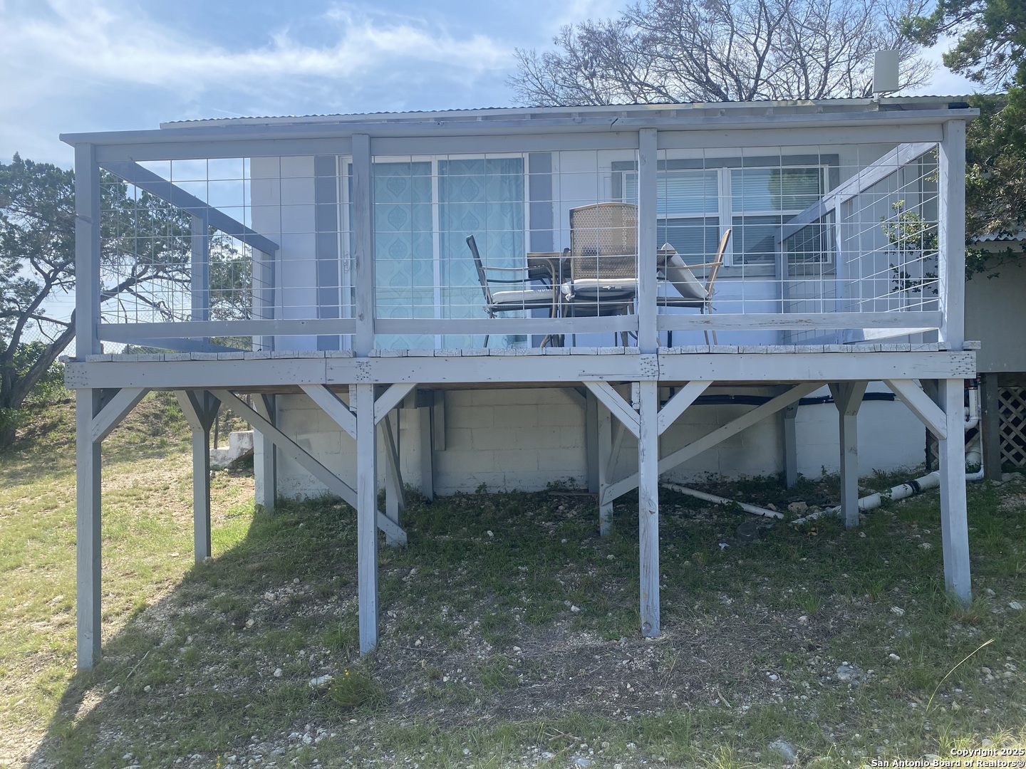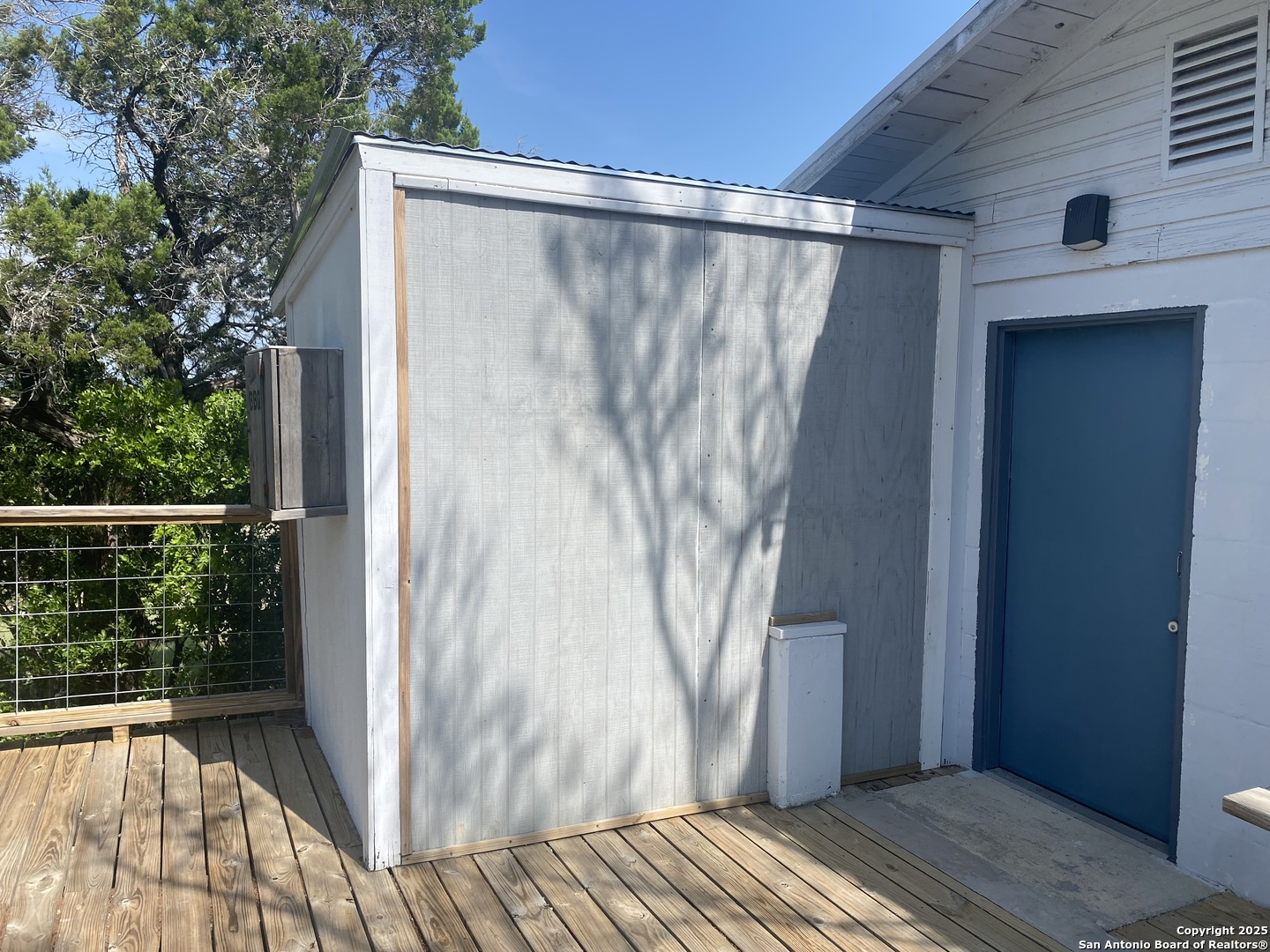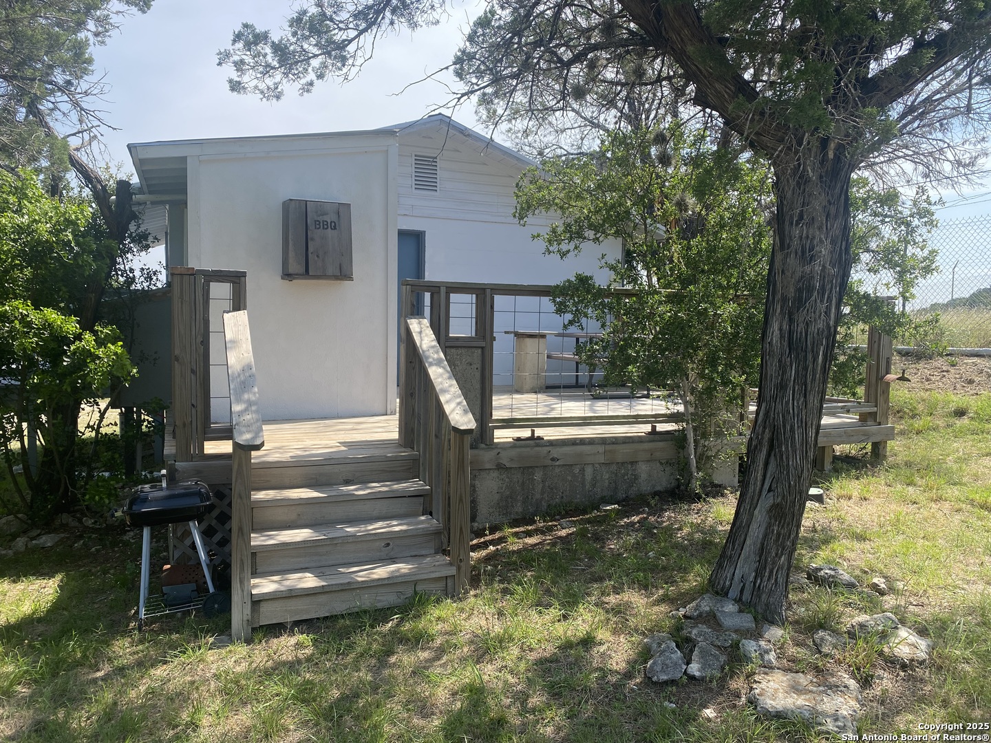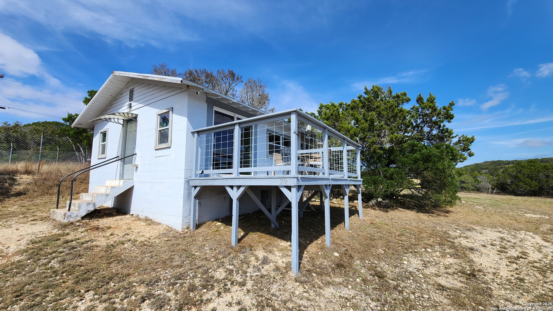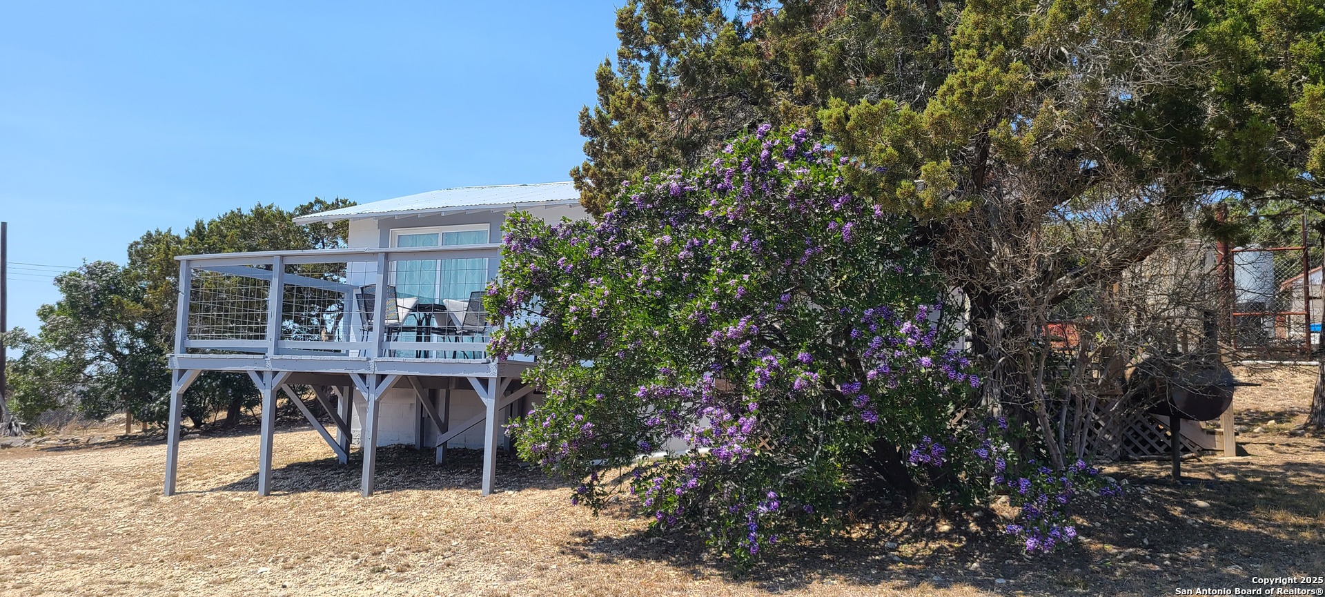 This is a recently upgraded effeciency residence perfect for an individual or a couple. Main space is 20' x 20' open concept space. The kitchenette is furnished with stainless steel appliances including a range and refrigerator/feezer. This space also has a small functional island for food prep and storage. The remaining space can be organized as the residents desire. Photos show a nicely defined space for dining, reclining and sleeping. The layout is up to the occupants. The bathroom/utility extension is equiped with floating vanity, lavatory, walk in shower. The washer/dryer combo unit willl be a dream. In the Texas Hill Country, being able to do your own laundry in your own property is HUGE! Think of the convenience and the hours saved as the nearest laundromat is a 15 minute drive (one way). And you always have to amazing outdoor spaces to relax, on either of the homes two spaces decks. This is refined rural luxury.