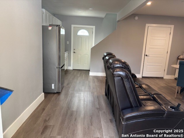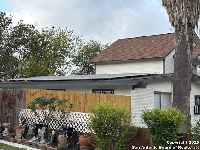 Beautifully renovated and endlessly flexible, this property offers two self-contained living spaces on a single 0.24-acre lot. Each side has its own kitchen, living area, and bedrooms, making it ideal for multi-generational living, two families, or a smart investment. Side A: A single-story, 3 bedrooms, 1 full bath home with a bright kitchen, dining area, and living room. A barn door separates the bedroom zone for added privacy and versatility. Side B: A stylish two-story home featuring 1 bedroom, 1 full bath, a walk-in closet, and a balcony on the second floor. The first floor hosts the kitchen, laundry, and living area. Separate, fully functional living spaces perfect for privacy, rental income, in-law suite, or a combined family home. 0.24-acre lot with plenty of outdoor space for gardens, play, or future additions. Large, efficient solar panels to help lower electric bills and promote a greener lifestyle. Modern renovations throughout, with quality finishes and easy-care flooring. Flexible layout ready for two households, a duplex, or single-family living with generous guest or work-from-home options. Potential for excellent rental income or multi-generational living without sacrificing privacy. Renewable energy adds value and reduces monthly operating costs. Private, self-contained units on one lot, offering endless configuration possibilities. Perfect for sustainable living in sunny San Antonio, this property combines modern comfort with thoughtful versatility. Schedule a private tour today to see how two homes in one can work for you.