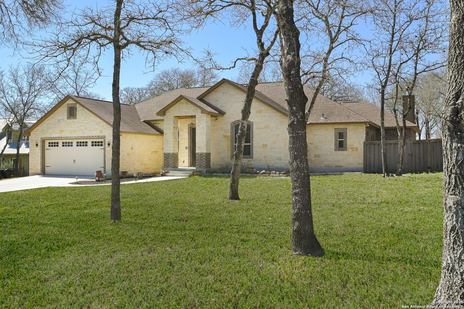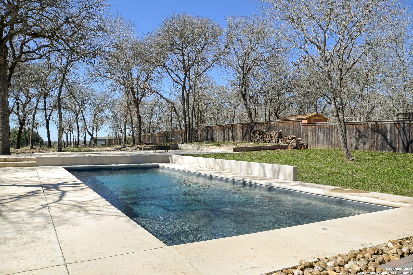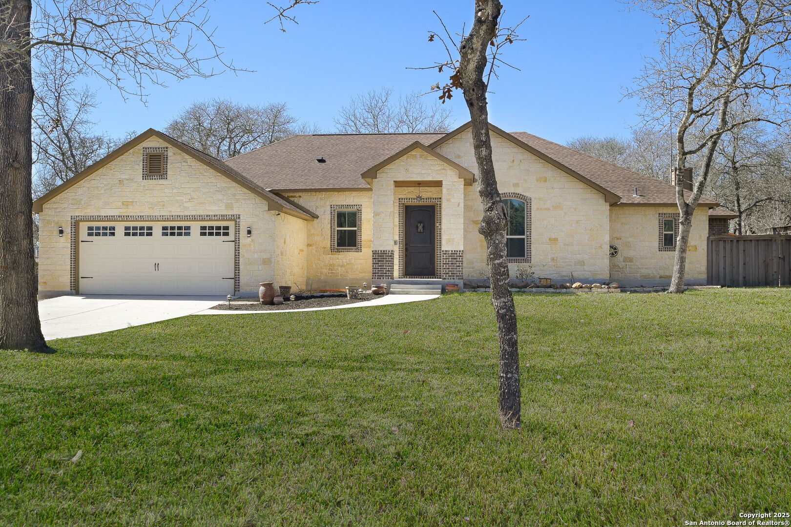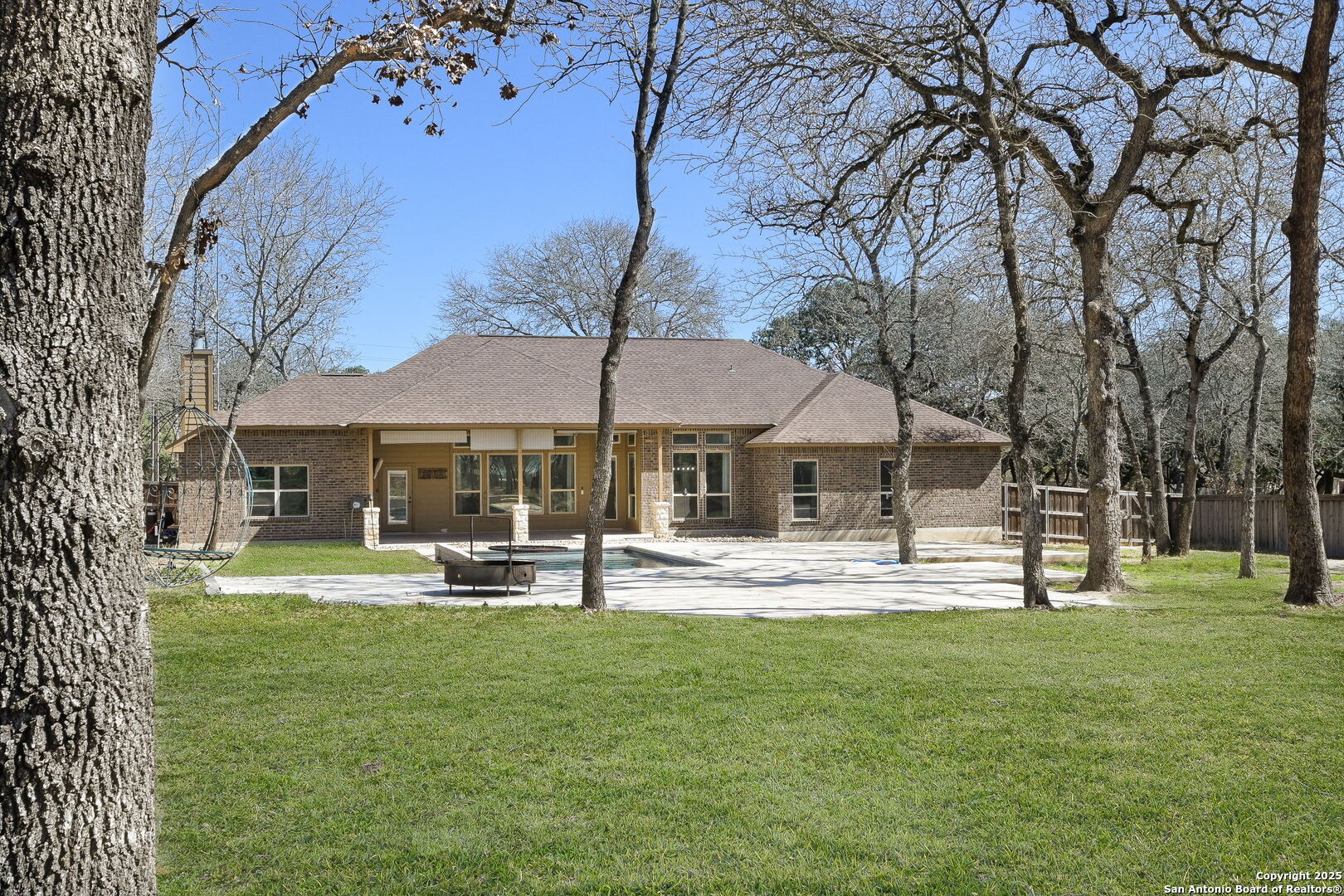 Experience country living at its finest in this charming custom 4-bedroom, 2.5-bath home located in the desirable Jacobs Acres, set on a 1.28-acre lot with mature shade trees. Enjoy year-round outdoor fun in the 1-year-old, heated and chilled saltwater pool, complete with an additional cement slab ready for a new gazebo. The private, wooded backyard offers the perfect setting for entertaining, especially for classic Texas BBQs. Step inside to discover high ceilings and an abundance of natural light throughout this single-story home. The kitchen boasts stunning granite countertops, stainless steel appliances, 42" cabinets, and a breakfast bar that opens to the spacious living room. The private primary suite features a tile shower, a separate spa tub, double vanities, and a walk-in closet. The generously sized secondary bedrooms include one with its own wood-burning fireplace and wood beam ceilings. Tile flooring flows seamlessly throughout-no carpet! The oversized covered patio is perfect for pool parties and outdoor gatherings. This home is a true entertainer's dream!