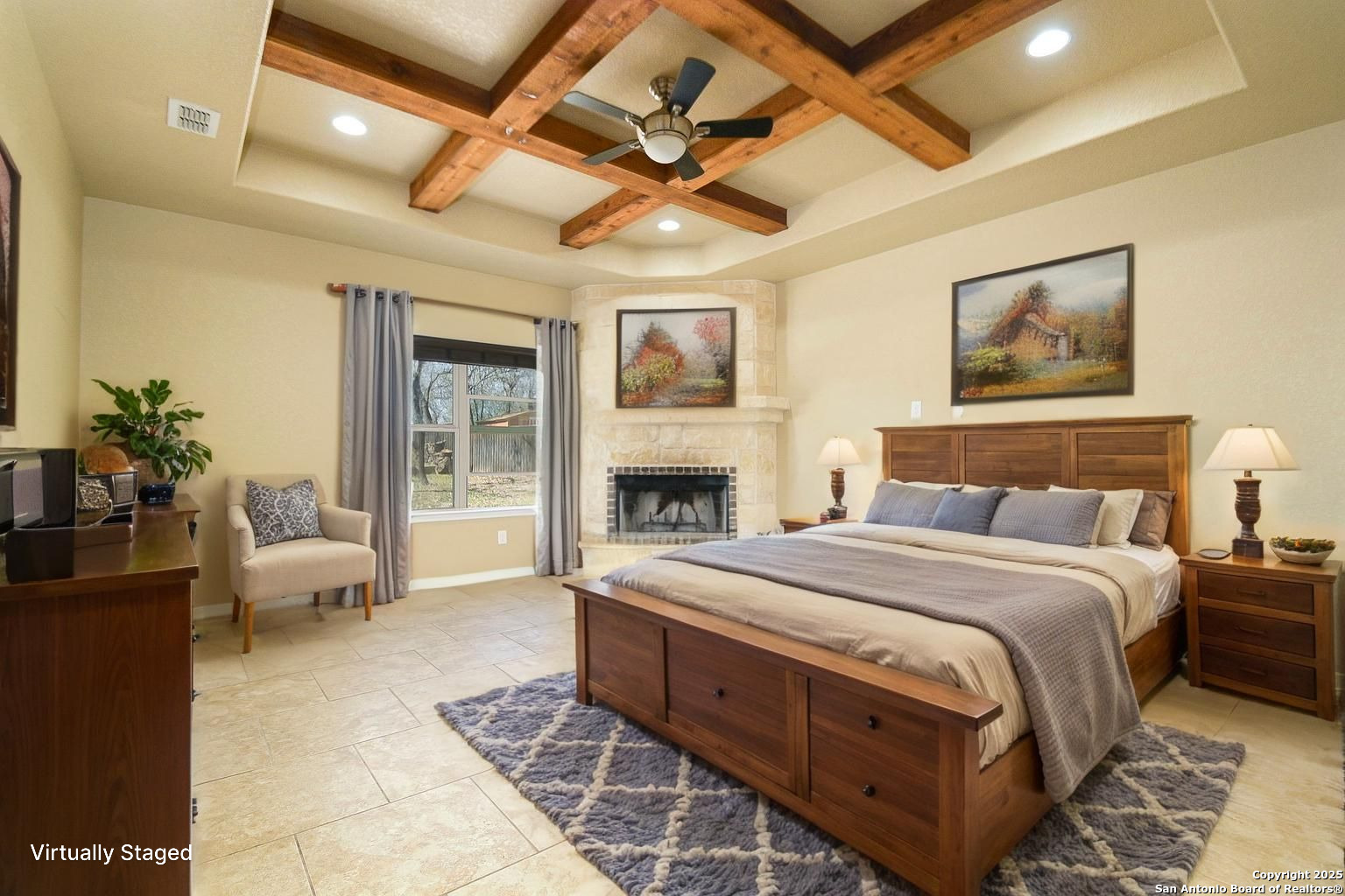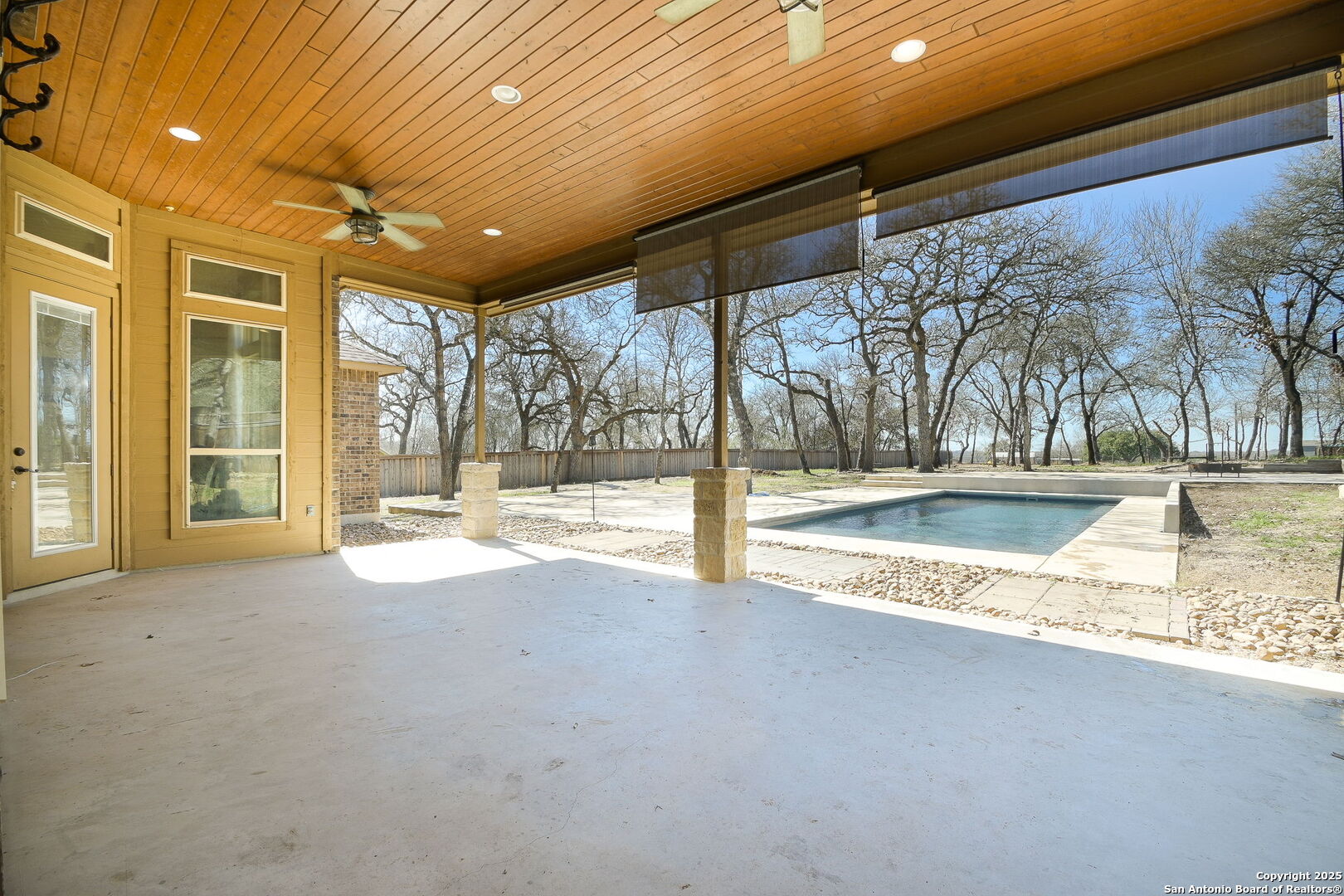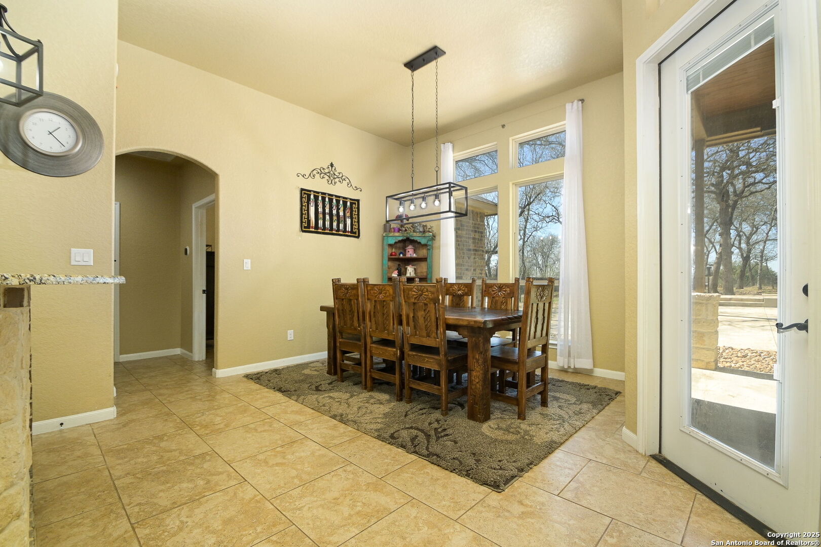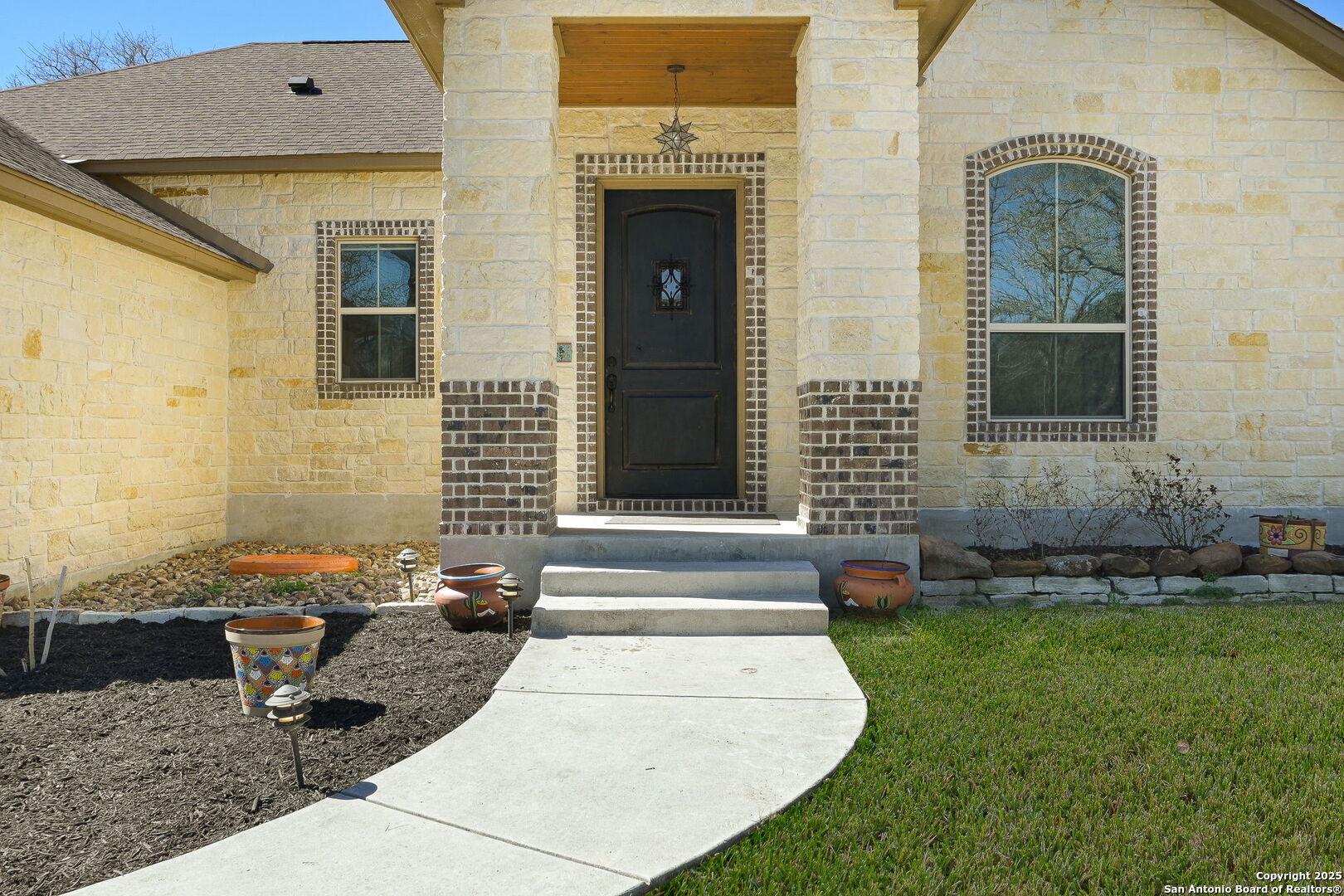 Experience country living at its finest in this charming custom 4-bedroom, 2.5-bath home located in the desirable Jacobs Acres, set on a 1.28-acre lot with mature shade trees. Enjoy year-round outdoor fun in the 1-year-old, heated and chilled saltwater pool, complete with an additional cement slab ready for a new gazebo. The private, wooded backyard offers the perfect setting for entertaining, especially for classic Texas BBQs. Step inside to discover high ceilings and an abundance of natural light throughout this single-story home. The kitchen boasts stunning granite countertops, stainless steel appliances, 42" cabinets, and a breakfast bar that opens to the spacious living room. The private primary suite features a tile shower, a separate spa tub, double vanities, and a walk-in closet. The generously sized secondary bedrooms include one with its own wood-burning fireplace and wood beam ceilings. Tile flooring flows seamlessly throughout-no carpet! The oversized covered patio is perfect for pool parties and outdoor gatherings. This home is a true entertainer's dream!