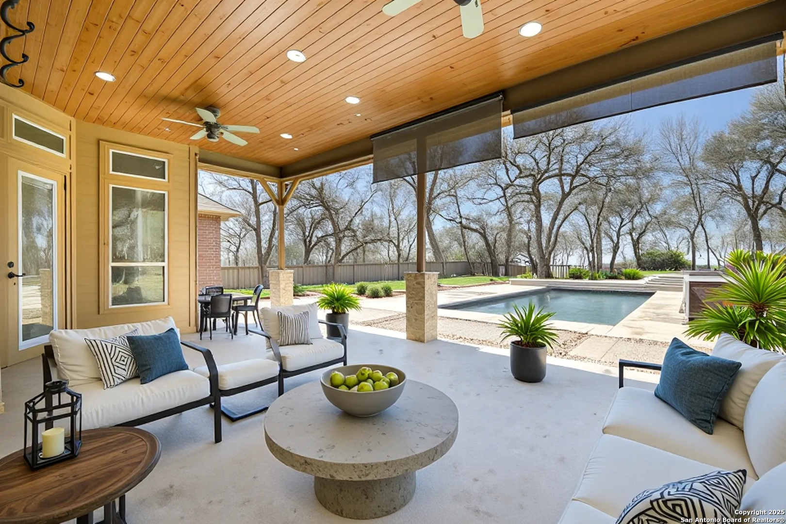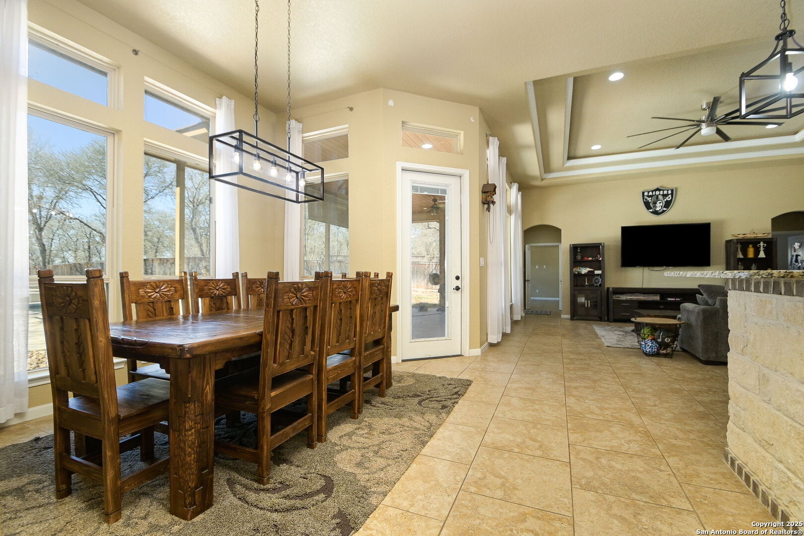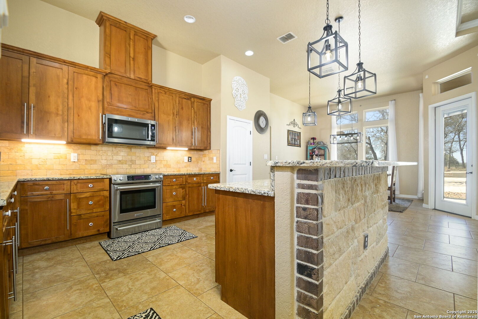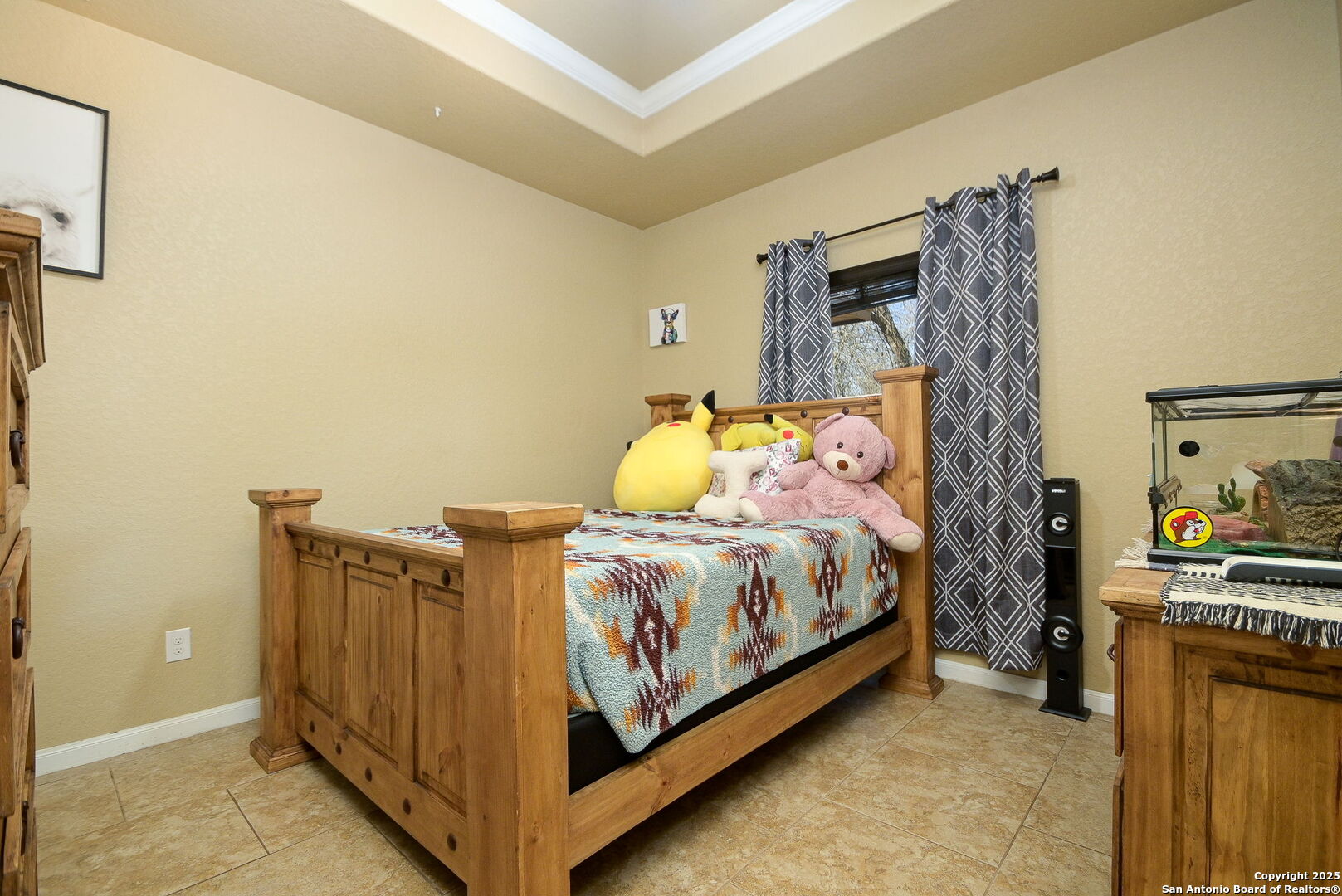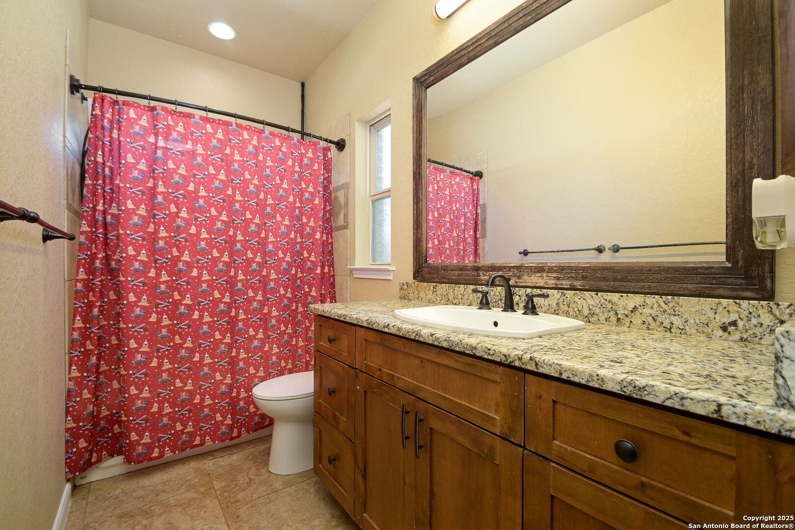 Experience country living at its finest in this charming custom 4-bedroom, 2.5-bath home located in the desirable Jacobs Acres, set on a 1.28-acre lot with mature shade trees. Enjoy year-round outdoor fun in the 1-year-old, heated and chilled saltwater pool, complete with an additional cement slab ready for a new gazebo. The private, wooded backyard offers the perfect setting for entertaining, especially for classic Texas BBQs. Step inside to discover high ceilings and an abundance of natural light throughout this single-story home. The kitchen boasts stunning granite countertops, stainless steel appliances, 42" cabinets, and a breakfast bar that opens to the spacious living room. The private primary suite features a tile shower, a separate spa tub, double vanities, and a walk-in closet. The generously sized secondary bedrooms include one with its own wood-burning fireplace and wood beam ceilings. Tile flooring flows seamlessly throughout-no carpet! The oversized covered patio is perfect for pool parties and outdoor gatherings. This home is a true entertainer's dream!