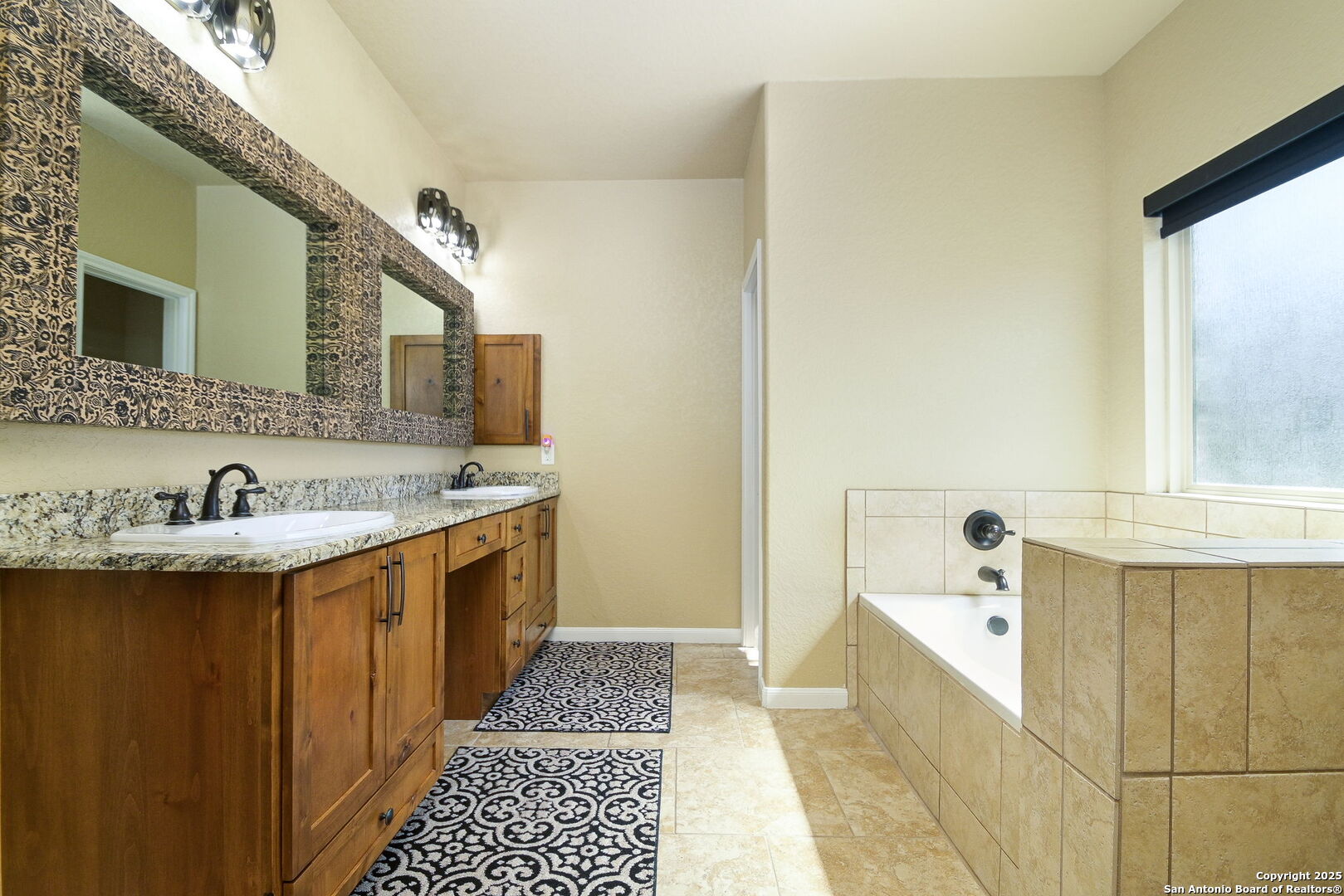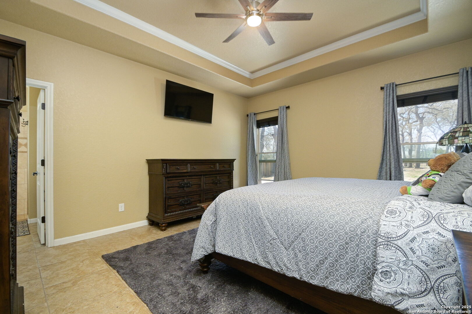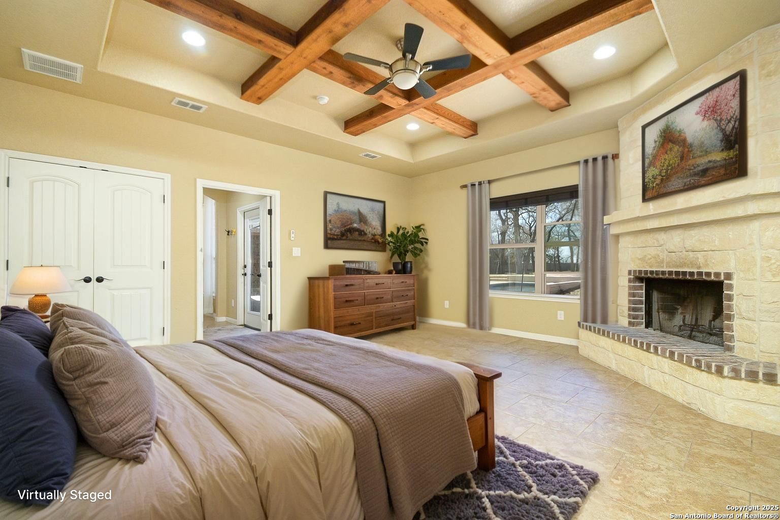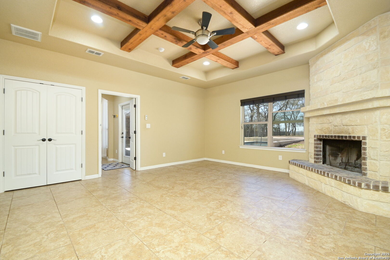 Experience country living at its finest in this charming custom 4-bedroom, 2.5-bath home located in the desirable Jacobs Acres, set on a 1.28-acre lot with mature shade trees. Enjoy year-round outdoor fun in the 1-year-old, heated and chilled saltwater pool, complete with an additional cement slab ready for a new gazebo. The private, wooded backyard offers the perfect setting for entertaining, especially for classic Texas BBQs. Step inside to discover high ceilings and an abundance of natural light throughout this single-story home. The kitchen boasts stunning granite countertops, stainless steel appliances, 42" cabinets, and a breakfast bar that opens to the spacious living room. The private primary suite features a tile shower, a separate spa tub, double vanities, and a walk-in closet. The generously sized secondary bedrooms include one with its own wood-burning fireplace and wood beam ceilings. Tile flooring flows seamlessly throughout-no carpet! The oversized covered patio is perfect for pool parties and outdoor gatherings. This home is a true entertainer's dream!