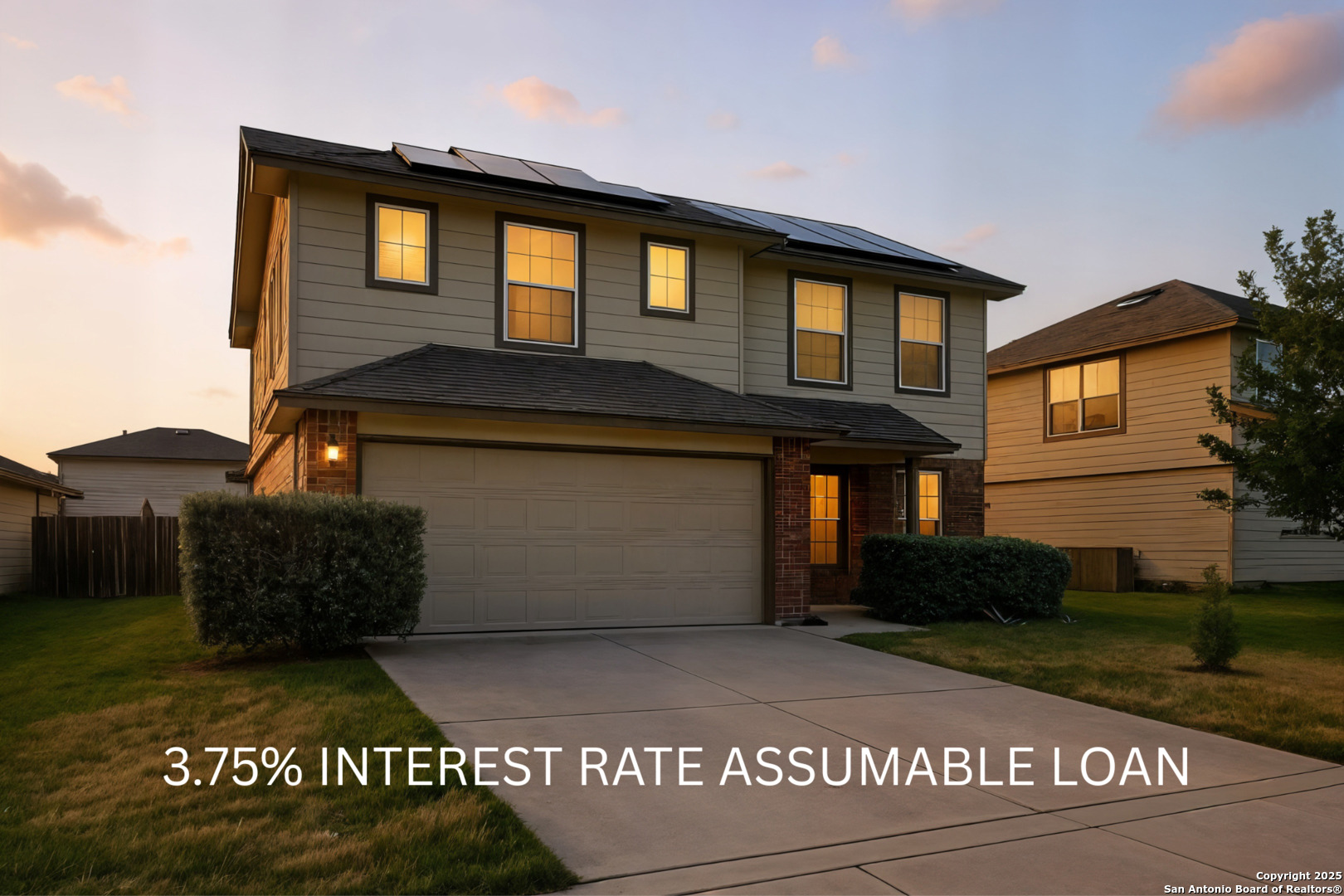 You don't get this with a new build!!3.75% INTEREST RATE ASSUMABLE LOAN! From the moment you step inside, this two-story home welcomes you with natural light and open spaces that feel warm, inviting, and full of possibility. The heart of the home is the open kitchen, where a breakfast bar flows seamlessly into the living room-perfect for morning coffee, weeknight dinners, and conversations that last long after the plates are cleared. A separate dining room offers the ideal spot for holiday gatherings and celebrations you'll remember for years to come. Upstairs, a spacious secondary living area creates flexibility for movie nights, game days, or a cozy retreat for quiet evenings. With four bedrooms and 2.5 bathrooms, everyone has the space they need while still feeling connected under one roof. The backyard is ready for your vision, while solar panels keep monthly energy costs low, the two-car garage adds everyday convenience. Loan assumption with a low interest rate gives qualified buyers an incredible opportunity you won't want to miss. This isn't just a house-it's where connection, comfort, and smarter living come together in San Antonio.