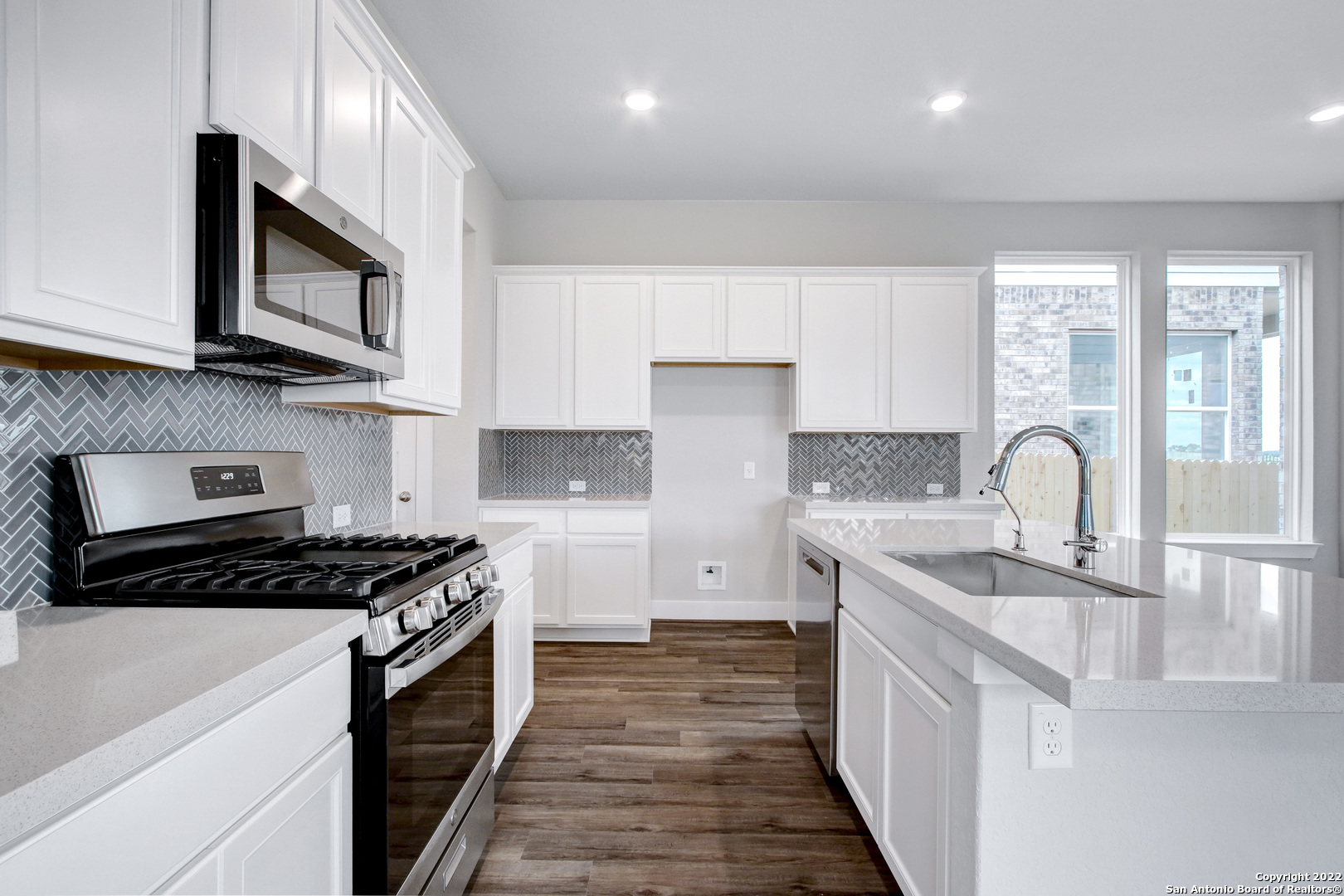 Gorgeous home! 4 bedrooms, 2 1/2 bath, bright open floor plan. Kitchen features gas cooking, stainless steel appliances, custom cabinets, quartz countertops. Downstairs master bedroom features spa like bathroom with huge walk in closet. Upstairs you will find family room, and 3 large bedrooms. Walking distance to community pool and park. Easy access to Loop 1604 and Ih 35, plenty of shopping nearby. Top rated NEISD Schools.