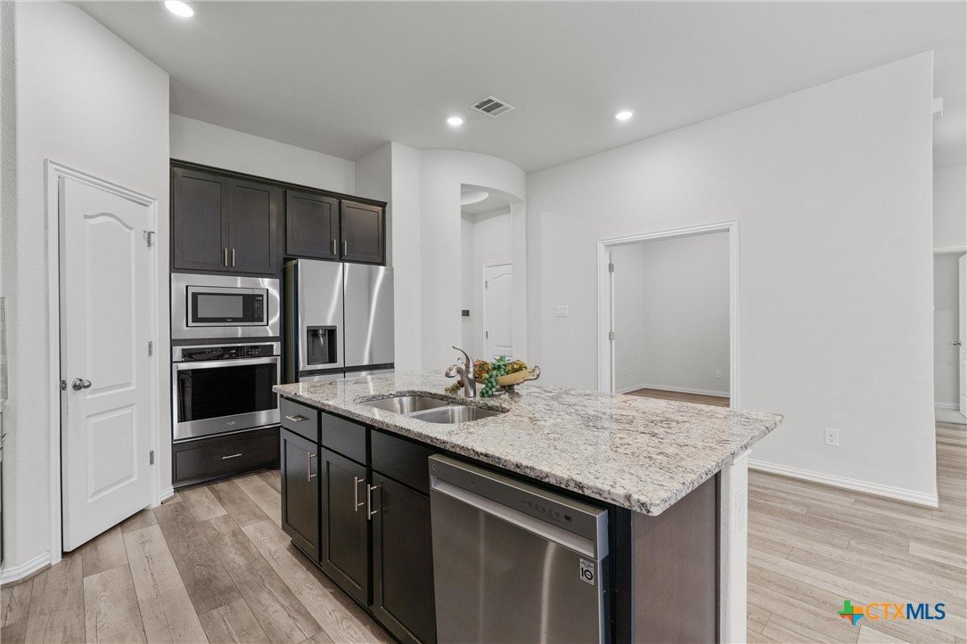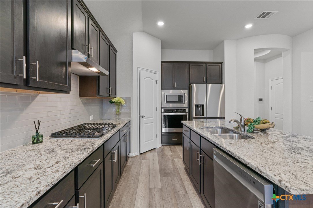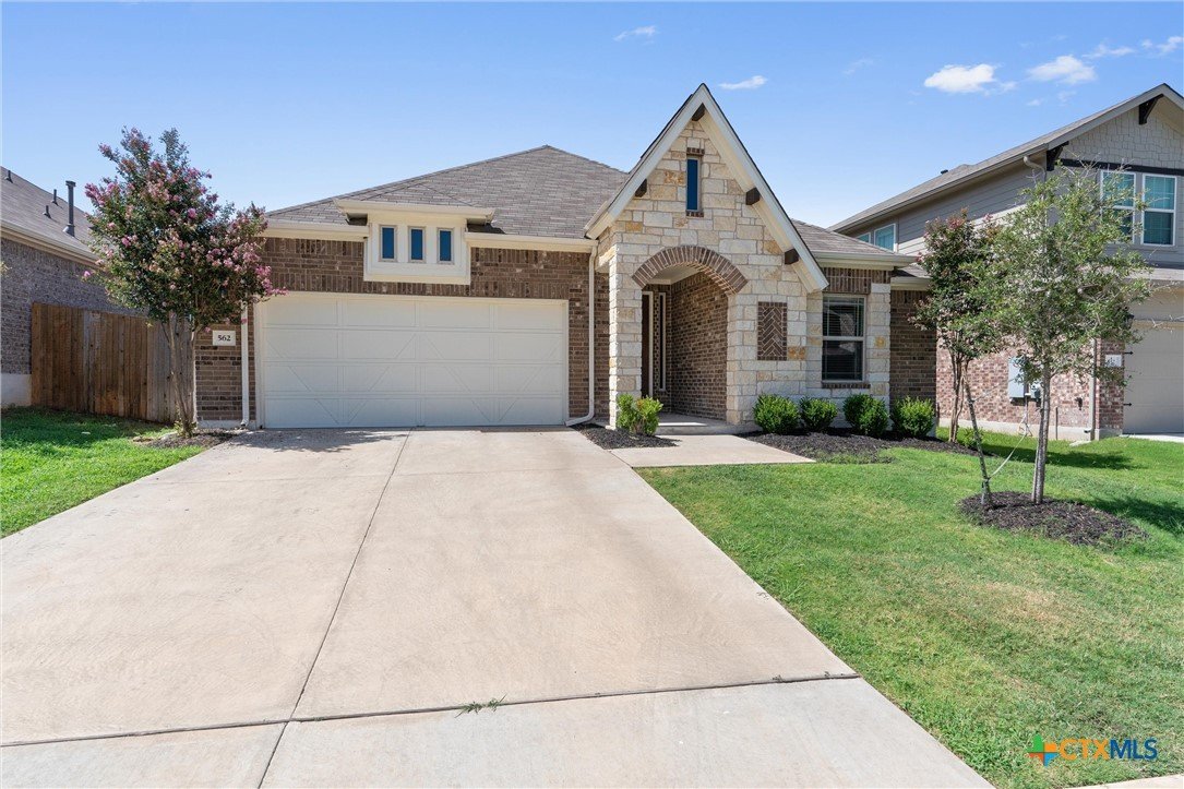 Nestled in the serene Sunfield subdivision of Buda, this remarkable single-story home spans an impressive 2210 square feet. A harmonious blend of elegance and functionality, it boasts four spacious bedrooms and three full bathrooms, along with an office and a flex area for homework or a workstation, accommodating family needs with ease and grace. As one steps through the welcoming entrance, a sense of warmth envelops them. The open-concept living area, adorned with contemporary finishes, seamlessly flows into a chef's kitchen, equipped with modern appliances and ample storage. Natural light pours in through expansive windows, illuminating the meticulously designed space. The master suite, a sanctuary of tranquility, features an en-suite bath complete with dual vanities and a lavish soaking tub. Each additional bedroom offers comfort and privacy, ensuring that every family member finds their retreat. This home is more than just a structure; it is a haven for cherished memories, inviting its residents to embrace a lifestyle of comfort and connection in the charming town of Buda. Conveniently located near shopping and offering quick access to major highways!