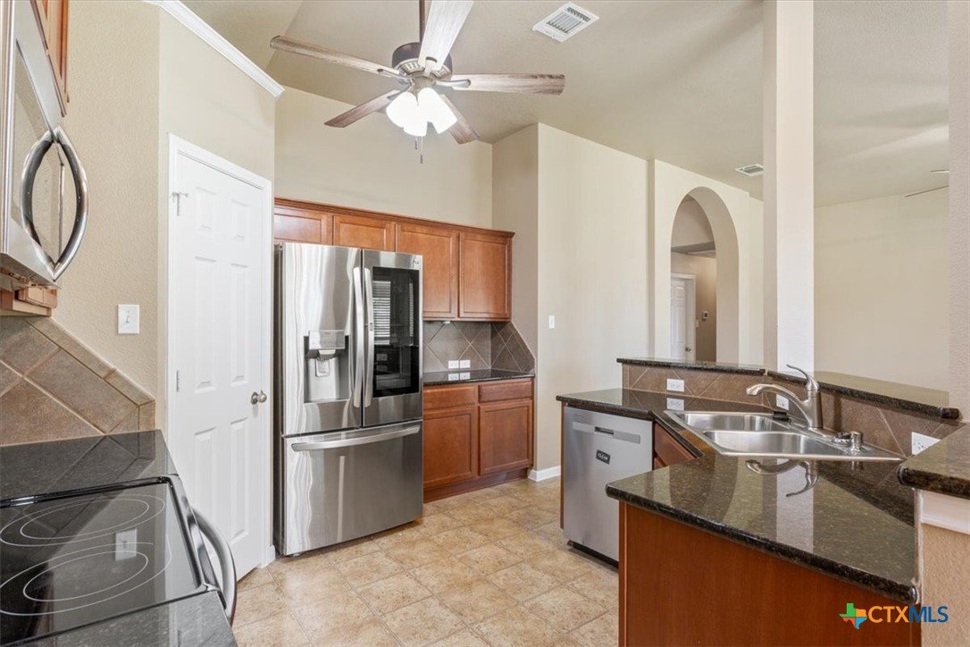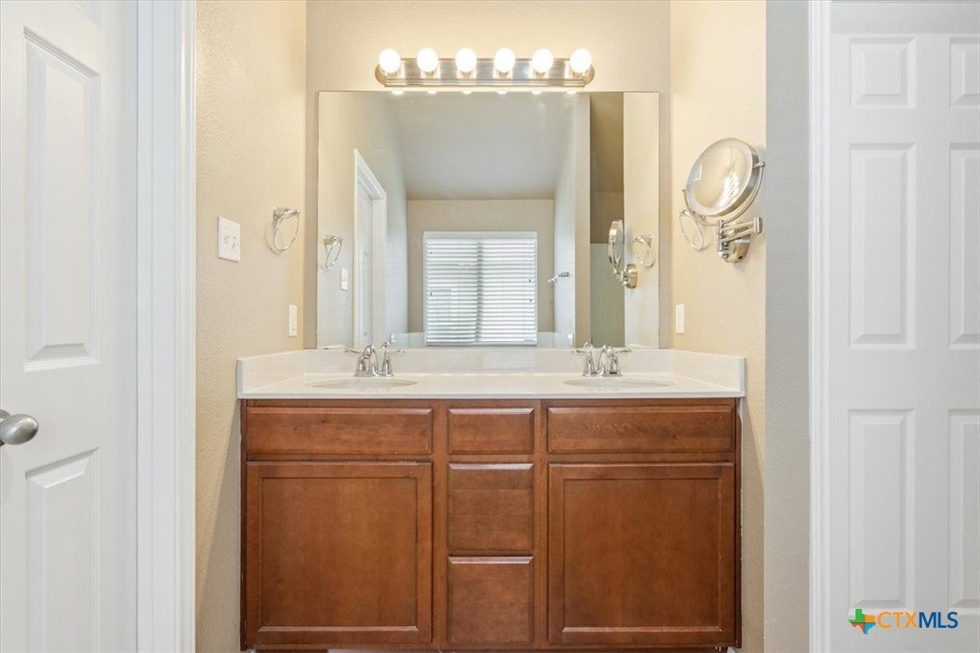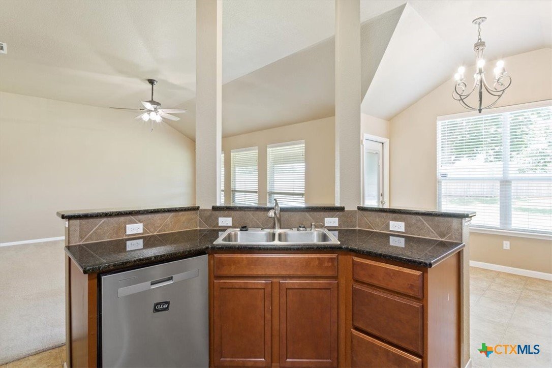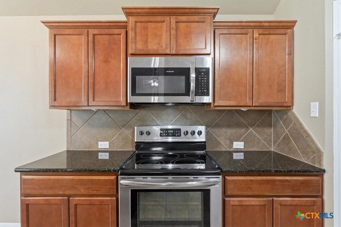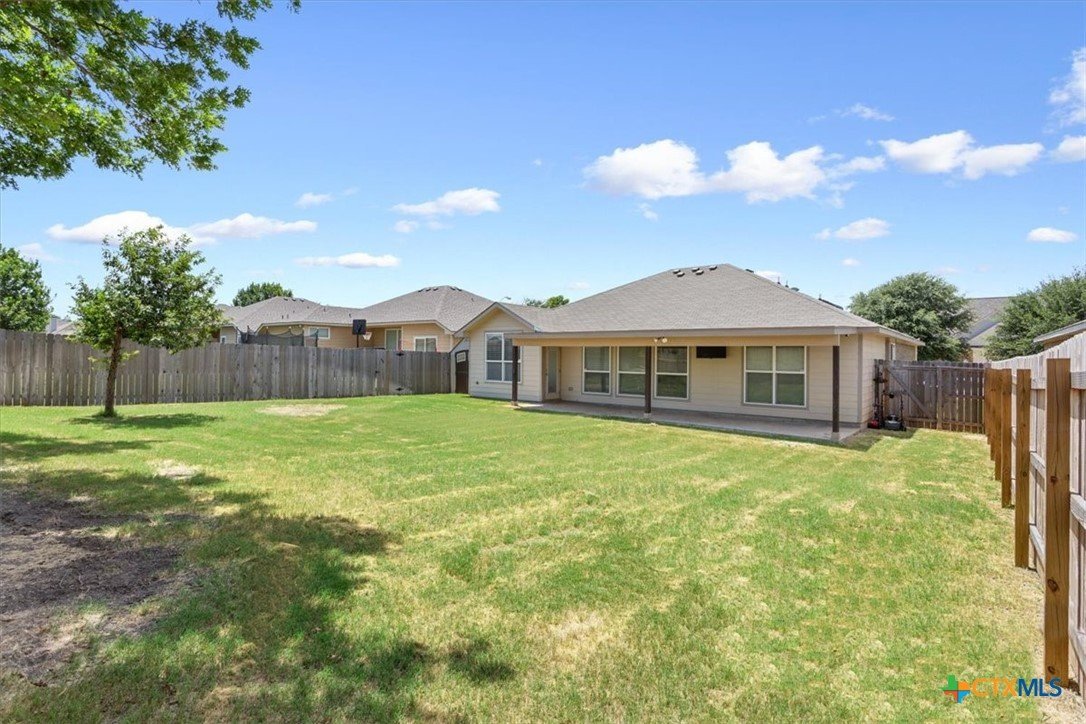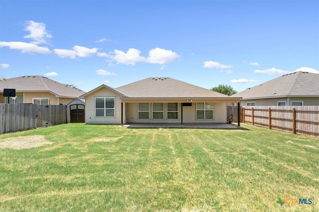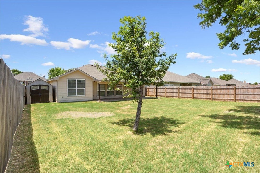 This beautiful 3/2/2 1454 sq.ft. brick home is ready to go. Nestled in the highly sought after Wyndham Hill Subdivision with access to the playground and community pool, this home is priced right and offers real value. Nice curb appeal leads you through the pretty wood door and into an expansive living area with vaulted ceilings and lots of windows that fill the living/kitchen/dining with natural light. The kitchen is a showstopper with granite countertops, an abundance of cabinets, a double sink with lots of counterspace that opens to the living area, refrigerator, and a pantry. The informal dining connects to the living/kitchen and offers access to the back porch. Large master suite offers dual vanities, separate shower and garden tub, huge walk-in closet and a private toilet. Guest bedrooms are roomy with nice closets. Separate laundry room with shelves and hanging space. Large garage with insulated door and cabinets. The outback offers a huge, covered porch with a TV on the east side that will keep you shaded from the summer sun and is perfect for grillin and chillin. Large back yard with a privacy fence and a small storage shed for the outdoor essentials. Great location with a short drive to Scott and White and shopping. Located in the highly acclaimed Academy ISD.