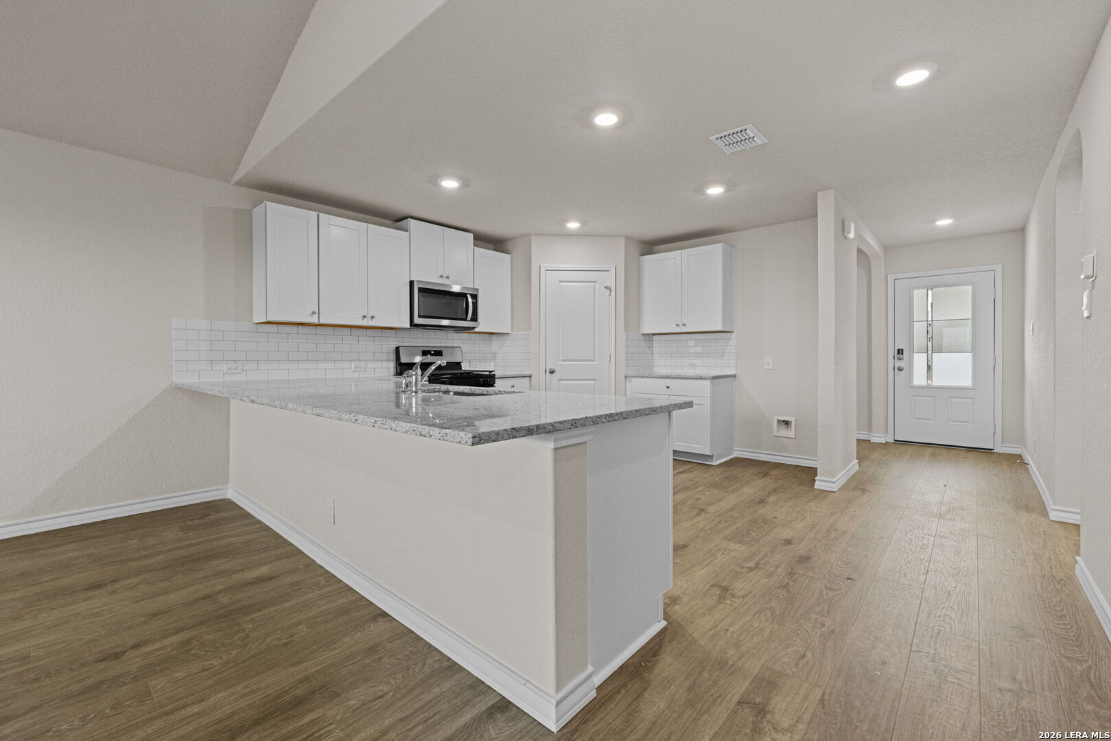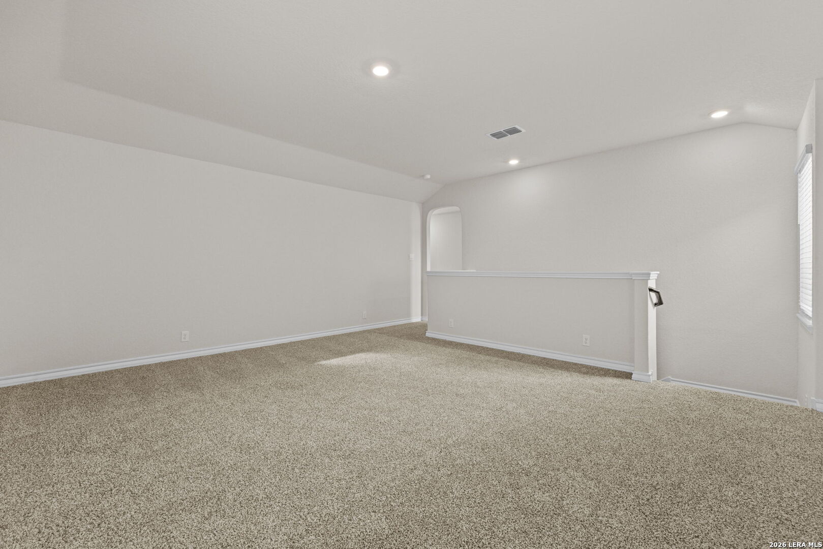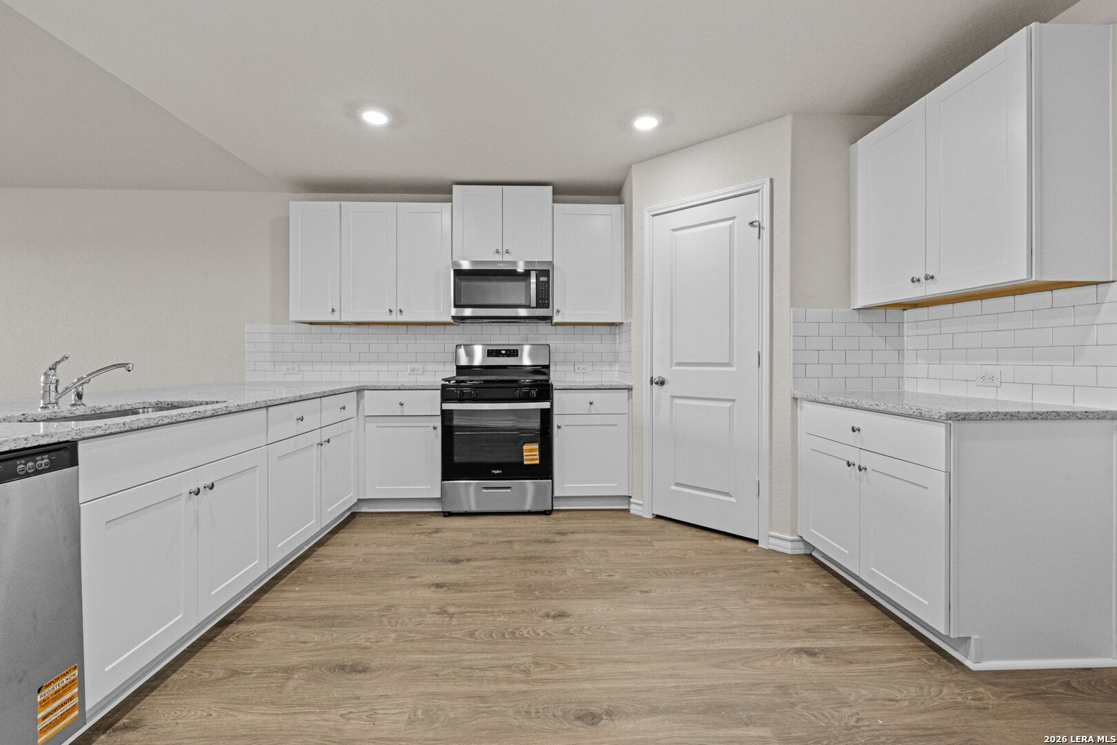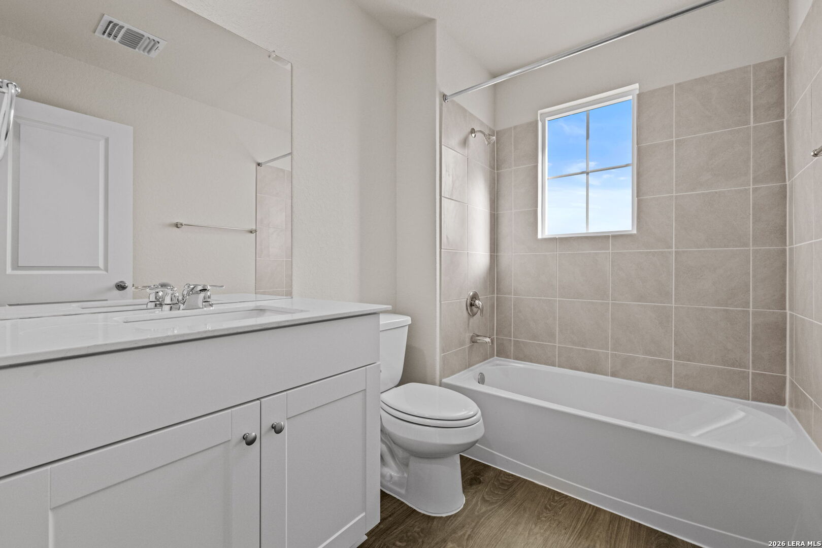 Seller is willing to assist with closing costs or a rate buy-down through preferred lender with an acceptable offer. Welcome to The Walsh, a stunning two-story home located at Stonehill in San Antonio, TX. This floor plan offers a 2-car garage, and a full yard landscaping and irrigation package, ensuring that your home has instant curb appeal. A spacious covered front porch welcomes you inside this 4 bedroom, 2.5 bathroom home where you'll find 2323 square feet of living space. Follow the entry hallway past a beautiful formal dining room and into the open kitchen featuring stainless steel appliances, quartz countertops, stylish white subway tile backsplash, spacious corner pantry, tons of cabinet space and a large eat-in breakfast bar. The kitchen opens to a spacious living room, complete with a stunning vaulted ceiling and easy-maintenance hard surface flooring. The living room extends to a lengthy covered back patio, perfect for outdoor dining or just simply keeping an eye on the kids while they play outside. The private main bedroom suite is located downstairs off the family room and offers dual vanities, a separate tub and walk-in shower, ceramic tile flooring, and a storage-friendly walk-in closet with shelving. Head upstairs to find a spacious game room or office area, a second full bath, and three large secondary bedrooms with quality carpet and walk-in closets. Additional features of The Walsh include 2-inch faux wood blinds throughout the home, luxury vinyl plank flooring in entryway, family room, kitchen, and dining room, ceramic tile at all bathrooms and utility room, and pre-plumb for water softener loop.