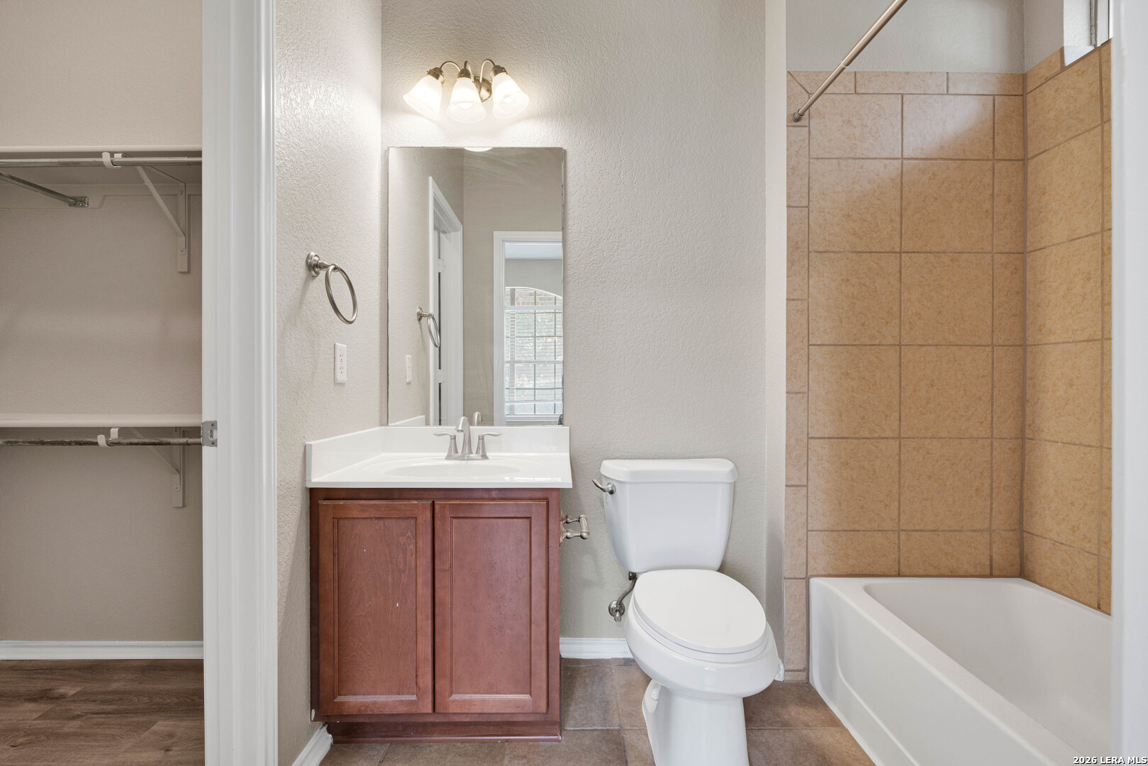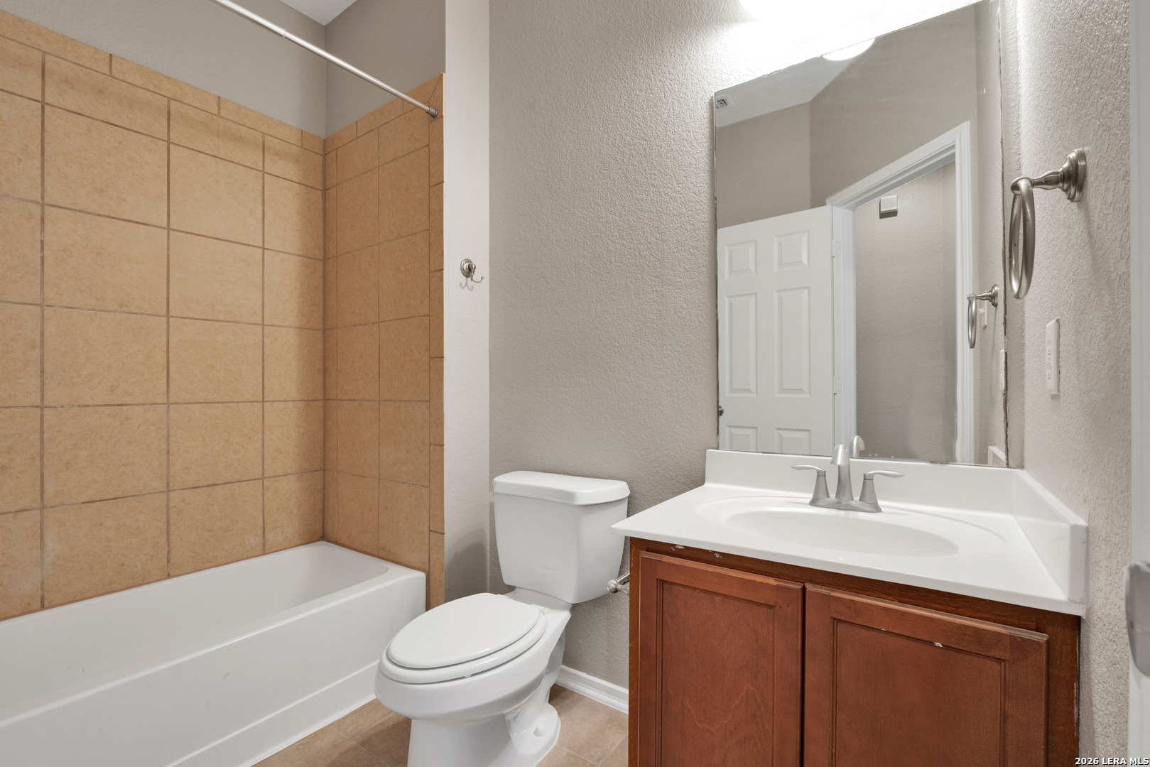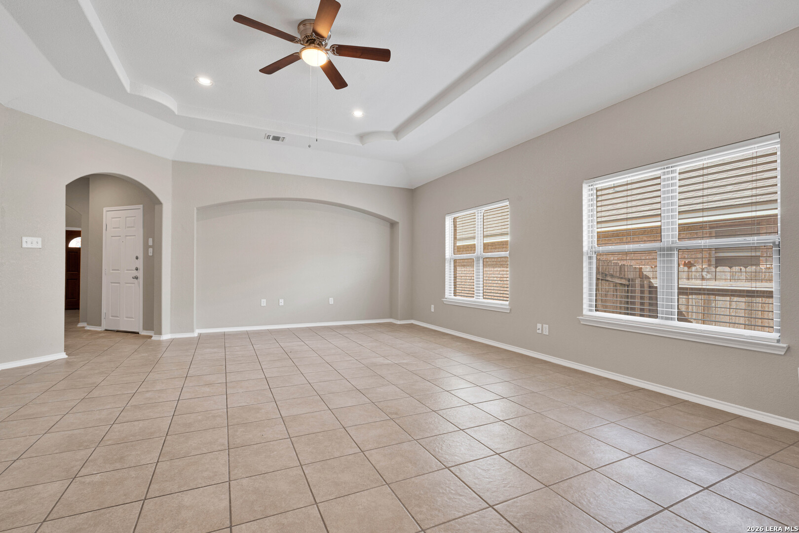 Perfect for multi-generational living, this beautifully designed 4-bedroom, 3-full-bath home features a highly desirable dual-master layout and spacious open living with soaring ceilings, architectural niches, and elegant tray ceilings. All bedrooms include spacious closets and ceiling fans for comfort and storage. The chef-inspired kitchen boasts 42" cabinetry, a pantry, center island, abundant counter and cabinet space, and a bright adjoining dining area - ideal for everyday living and entertaining. The primary suite offers double vanities, a relaxing garden tub, and an impressive oversized spacious shower. Enjoy the durability and curb appeal of four-sides brick construction plus a covered patio perfect for outdoor gatherings. Conveniently located near Loop 1604 and Bandera Road with easy access to University of Texas at San Antonio and shopping/dining at The Shops at La Cantera. Please note that some images in this listing have been virtually staged.