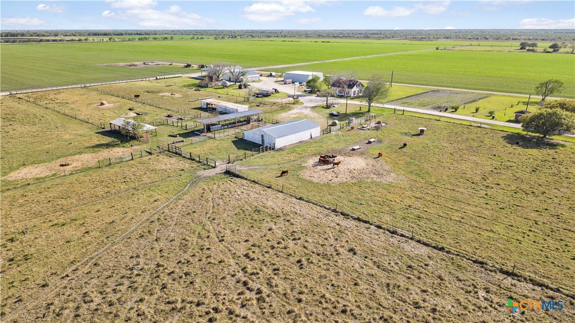 Exceptional 373+/- acre farm and ranch property located between Edna & Victoria right off of Highway 59! This impressive property includes 164.8+/- acres of improved pastureland with Gordo, Jiggs, and Medio grasses, plus an additional 208.20+/--acre row crop farmland. Soils consist of 89.78% Laewest clay and 10.13% Dacosta sandy clay loam. The property features new perimeter fences on two sides of the property and a good gravel road around the barns and majority of the pastureland. It also features a beautiful 1,928 sq. ft. brick home, 1,865 sq. ft. farmhouse, and a 520 sq. ft. office. Homes are already setup for ranch/farm employees or for rental income. Extensive outbuildings include a 2,880 sq. ft. slant wall metal barn with concrete floor, 1,800 sq. ft. metal barn with concrete floor, 2,400 sq. ft. lean-to with gravel floor, 2,809 sq. ft. pole barn, and 1,920 sq. ft. hay barn. Livestock amenities include covered working pens with squeeze chute plus 2 water wells. Perfect for a cattle operation or your dream farm & ranch!