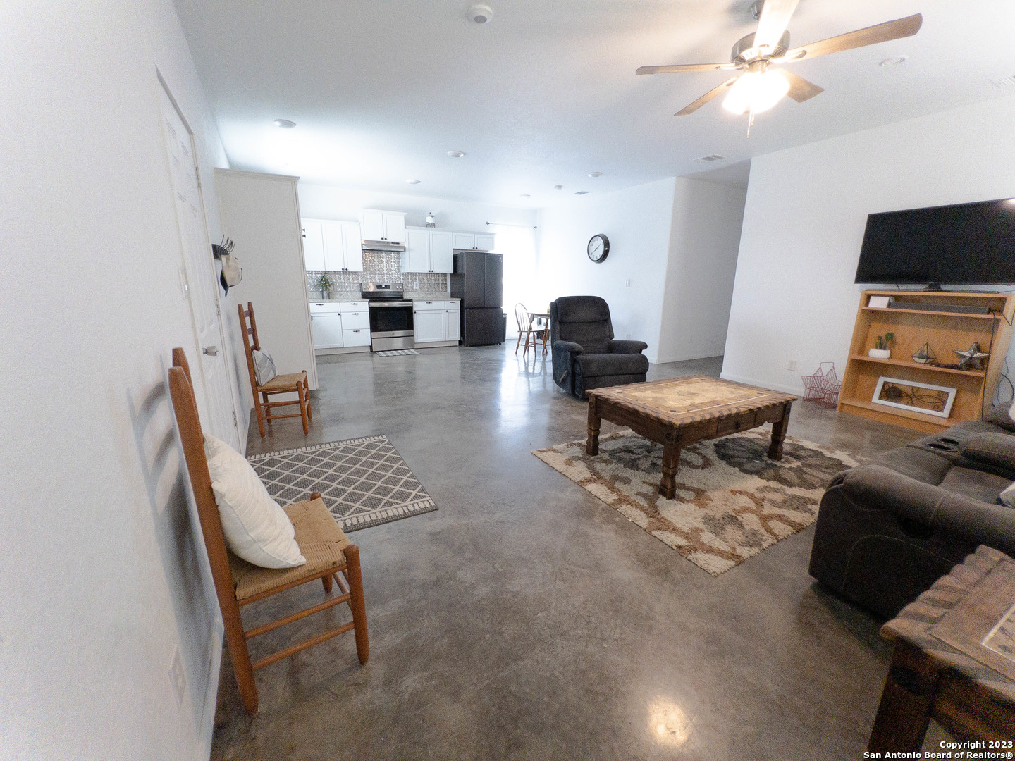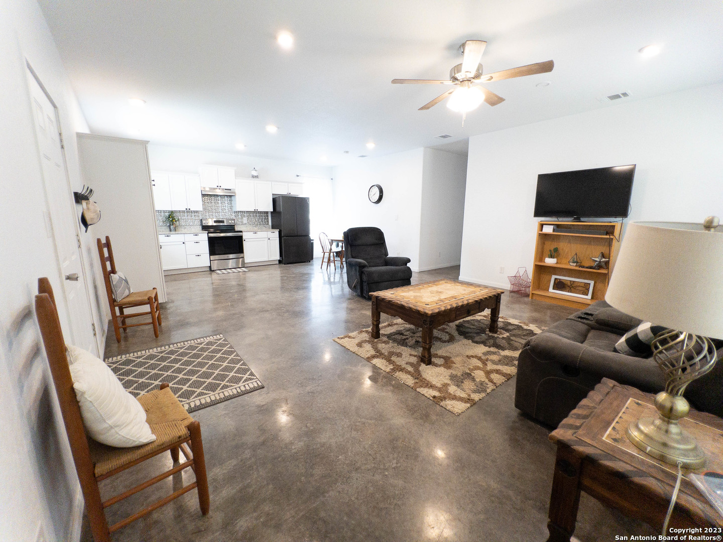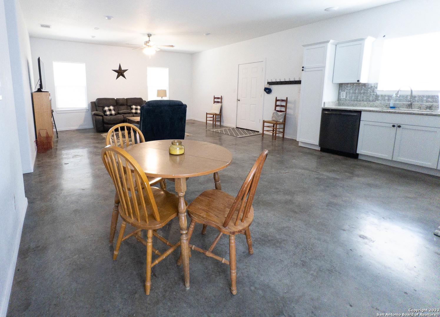 This newer construction in Tamarack Shores is exactly what you've been looking for-3 bedrooms, 2 bath, tall ceilings, low maintenance concrete floors, open living and dining. The private park provides access to Canyon Lake with stunning neighborhood views throughout. There's also a community playground and pool! This neighborhood allows for short term vacation rentals/AirBNB or it would be a wonderful starter home. Storage shed, washer dryer, and fridge do not convey but are negotiable.