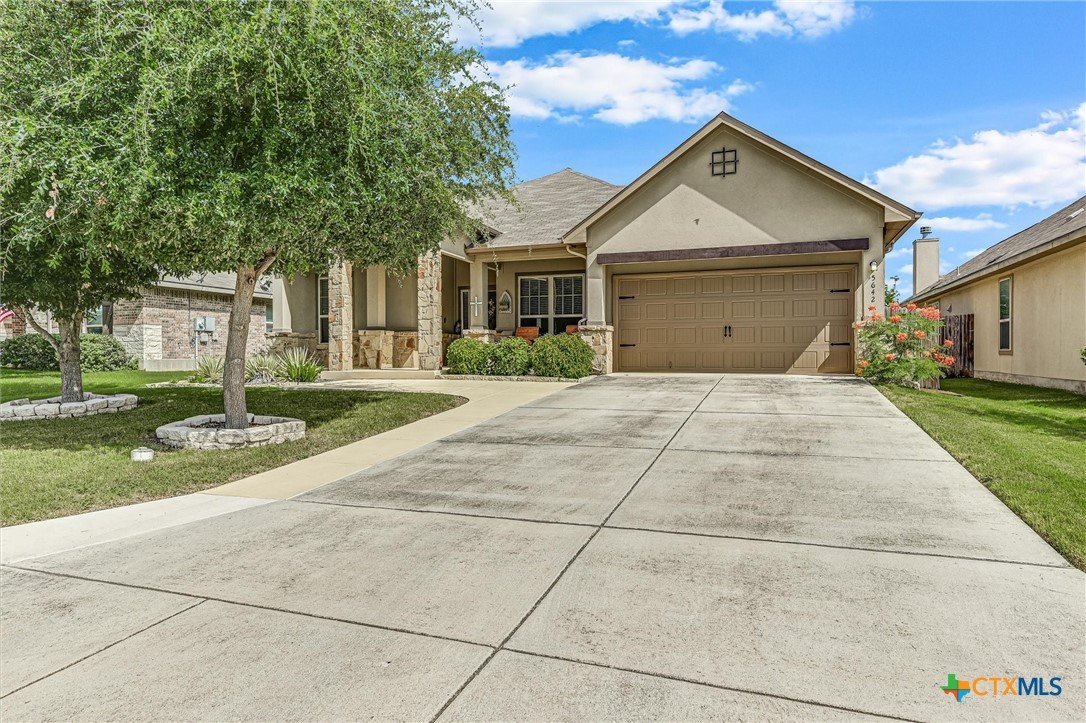 Welcome home to this beautifully designed 4 bedroom, 2 bathroom stunner with low property taxes!! Picture yourself savoring coffee on the charming front porch or hanging out on the extended covered back patio featuring two ceiling fans. It’s perfect for relaxing evenings or weekend cookouts! Step through the front door into the welcoming foyer, where the flexible fourth bedroom with French doors & walk-in closet awaits. It's ideal as a guest room, home office, or creative space. The other two guest bedrooms & guest bath are on the opposite side of the entryway. As you walk further into the home, you’re greeted by the expansive open-concept kitchen, dining, & living areas filled with natural light. The spacious kitchen boasts a walk-in pantry, generous countertops, & plenty of cabinetry with new hardware. Casual nights & festive gatherings will be plentiful here. A built-in desk nook between the kitchen & mudroom is a perfect spot for work, and the laundry room is conveniently off the mudroom. The oversized primary suite at the back of the house overlooks the serene backyard, offering a true private retreat. It boasts an enormous walk-in closet & bathroom featuring a massive walk-in shower for two, dual vanities with extra-large sinks & generous counters. Each person enjoys their own complete vanity space! Ceiling fans in every room ensure maximum comfort year-round. Additional highlights include a two-car garage with a widened walkway & driveway (perfect for larger vehicles), an owned high-end water softener, & fully landscaped front & backyards with a sprinkler system. Nestled in a small, private neighborhood with a community park, you’ll love the peaceful feel with quick access to I-35 for easy commutes to San Antonio, San Marcos, Austin, & beyond. Vibrant New Braunfels is a town rich in history, charm, & attractions like Schlitterbahn & Gruene Hall nearby. This home offers the perfect balance of space, comfort, & location. Come see this beauty before it’s gone!!
