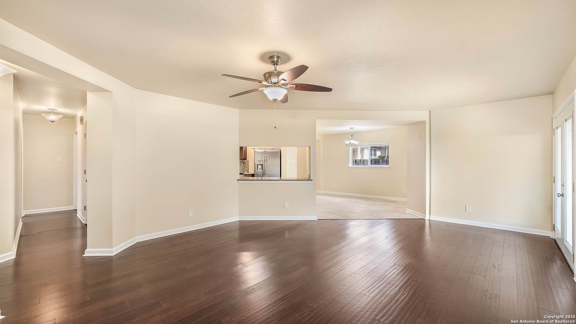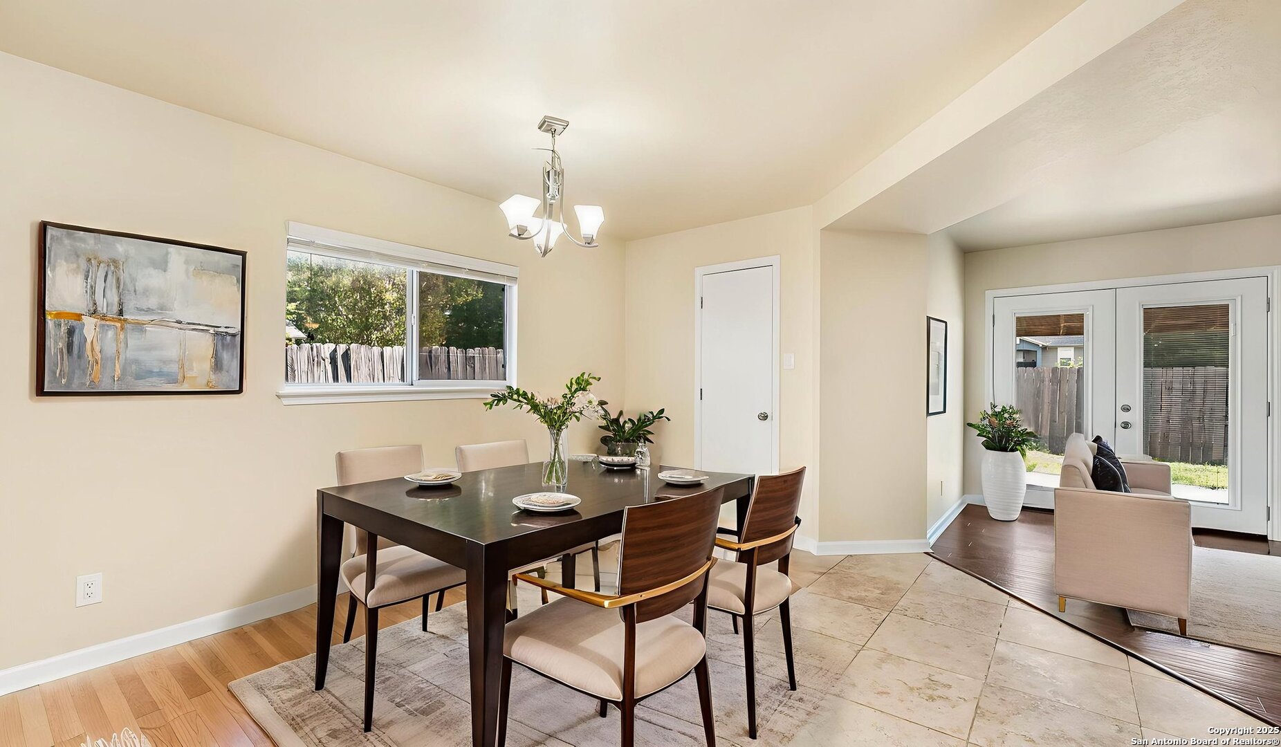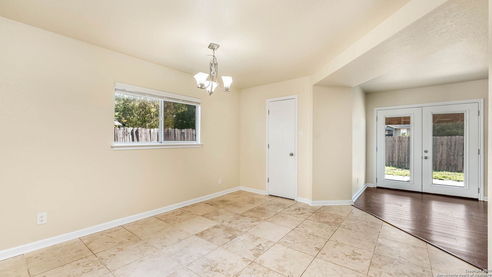 Welcome to this fantastic 4-bedroom home featuring a superb layout with two spacious living areas, a large dining room, and an oversized eat-in kitchen complete with an extraordinary walk-in pantry! The primary suite offers generous space and a spa-inspired ensuite with a deep soaker jacuzzi tub-your private retreat after a long day. Three additional bedrooms provide flexibility for family, guests, or the perfect home office. Pet owners will love the built-in doggie door and dedicated pet run, making this home ideal for your furry friends. Step outside to a large backyard with a covered patio-perfect for relaxing or firing up the grill for those weekend BBQs. There's no carpet throughout-enjoy beautiful bamboo floors and stylish travertine tile in the kitchen and bathrooms. Conveniently located close to shopping, major highways, and just minutes from JBSA-Fort Sam Houston & Randolph, this property is a great fit for military families and commuters. Full of charm and ready for your personal touch-don't miss out! Schedule your showing today!