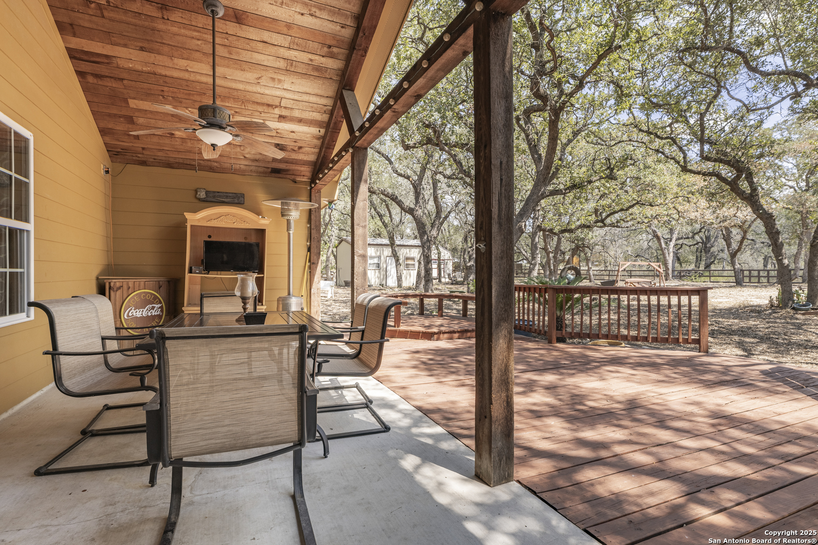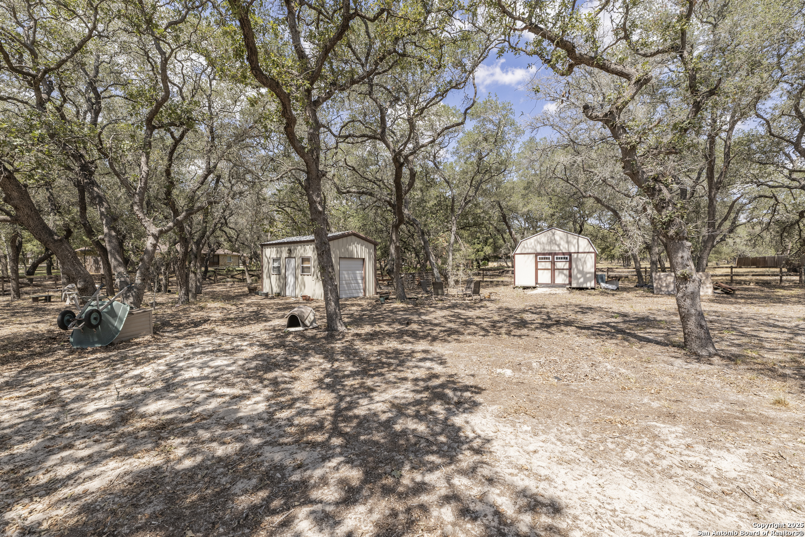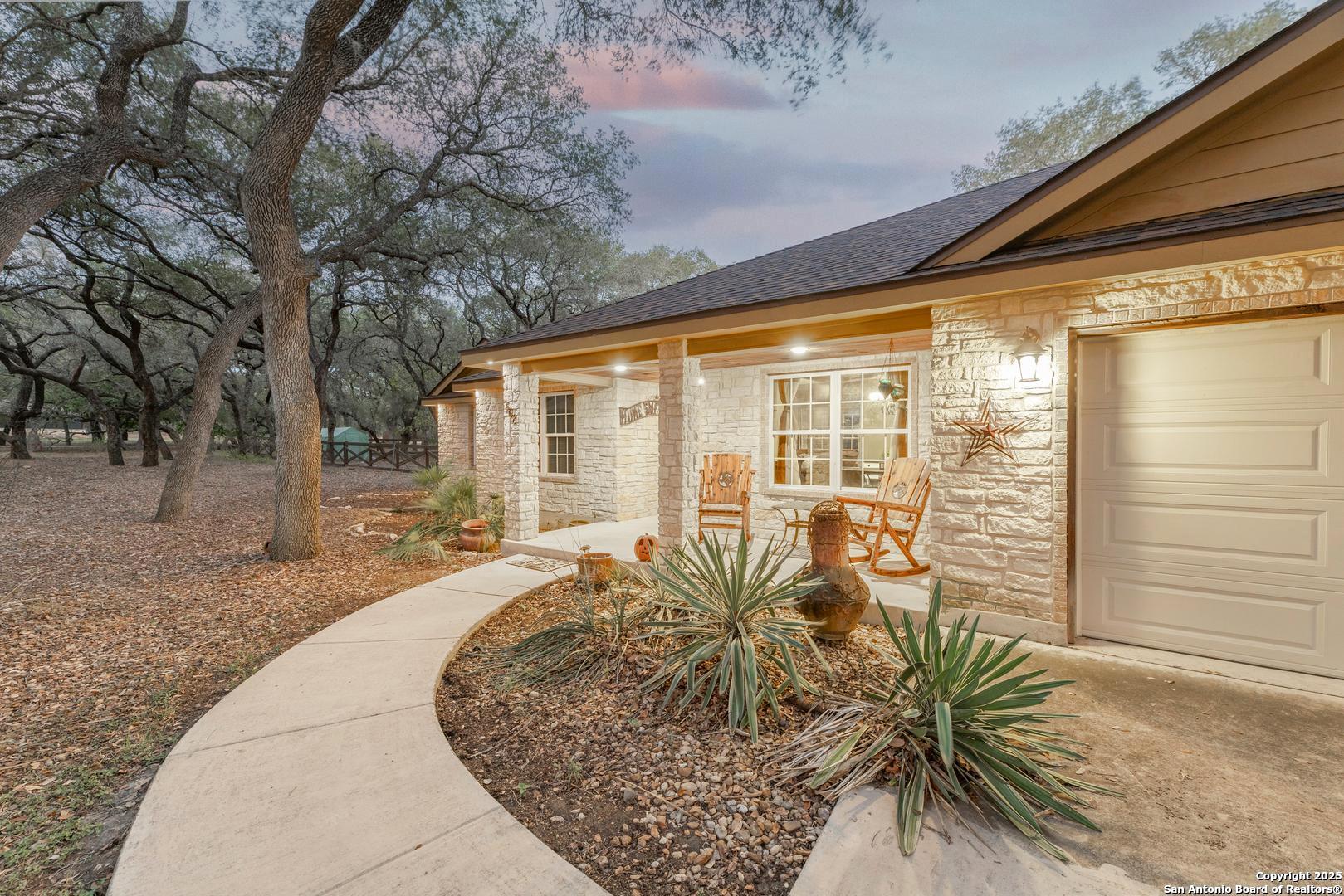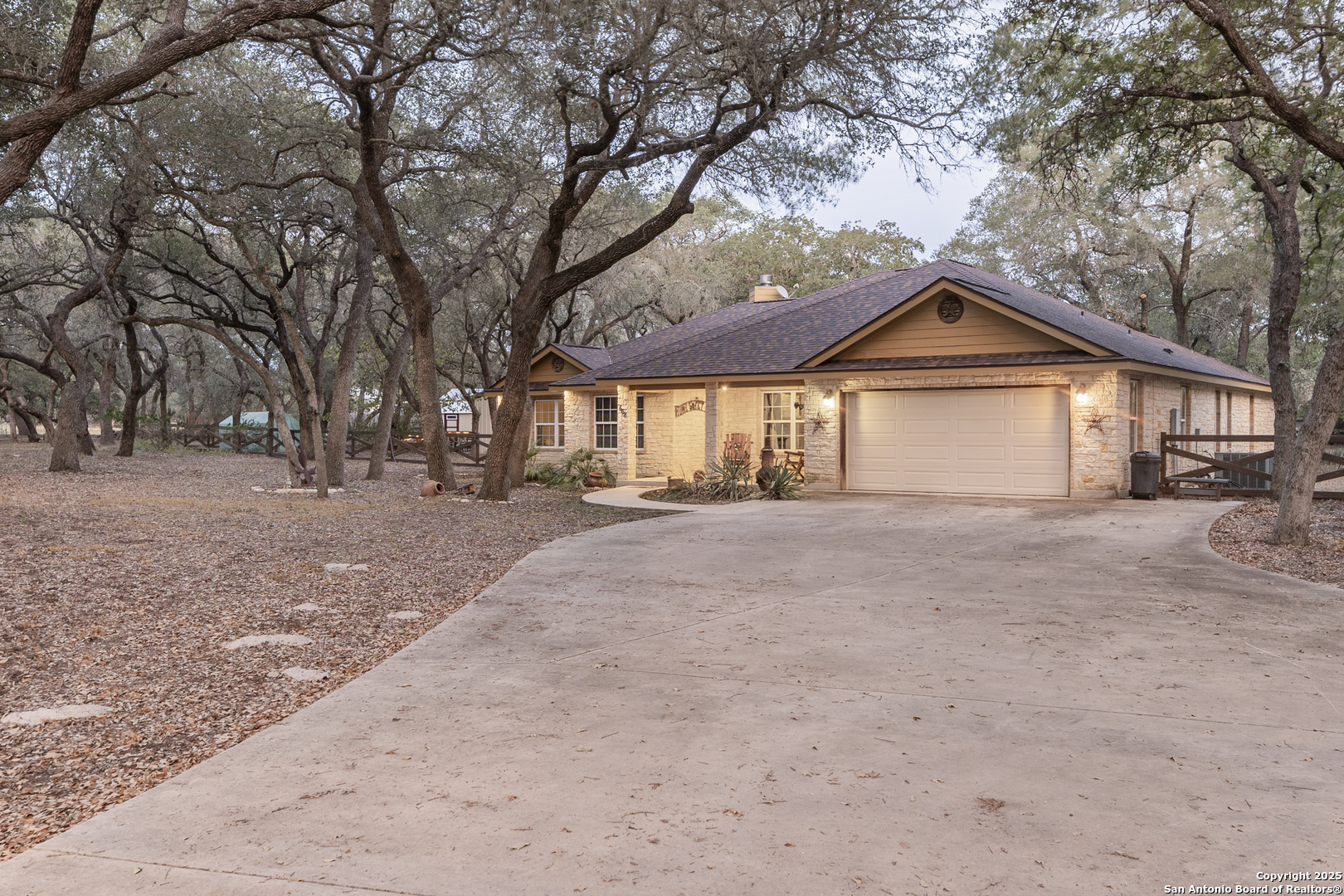 If you're looking for a home in La Vernia that stands out from the sea of gray walls and shiplap, you need this beautiful 4-bedroom, 2.5 bath stone home on nearly 2 acres! Off-set from the other houses for privacy, all sides stone and brick masonry, beautifully rustic touches, 2-car attached garage, workshop, and space to spread out. Semi-open floor plan offers vaulted ceilings, large kitchen flowing into the breakfast area and dining room, spacious living room with floor-to-ceiling stone fireplace, and split bedroom layout. Primary suite features private patio access, soaking tub, separate shower with dual showerheads and two walk-in closets. Outside you'll find all the things that make life in the country enjoyable: a huge back patio and deck that you and your guests will want to stay on long after the sun goes down, cross-fencing (horses are welcome!), beautiful trees, garden area, and plenty of space for new projects or pets... because this lot is nearly an acre larger than many in the same price range. Hobbyists might have a hard time choosing where to set up shop: the 12x20 metal shop with AC unit, rollup door and loft (plus a secret hang-out area on the back side), OR the 14x20 shed complete with loft and work bench, OR the attached garage with work sink and storage room. Located on a quiet cul-de-sac road ideal for morning jogs, bike rides, or evening walks, and in easy reach of nearby shopping. Your brand-new roof offers peace of mind and lower insurance premiums... so with fiber internet, La Vernia schools, low 1.7% tax rate, an easy commute to San Antonio... and now an even better price for the area, this home delivers beauty, functionality, a relaxed country lifestyle, and value. If you prefer a home with warmth and character, this home is calling your name- request your showing today.