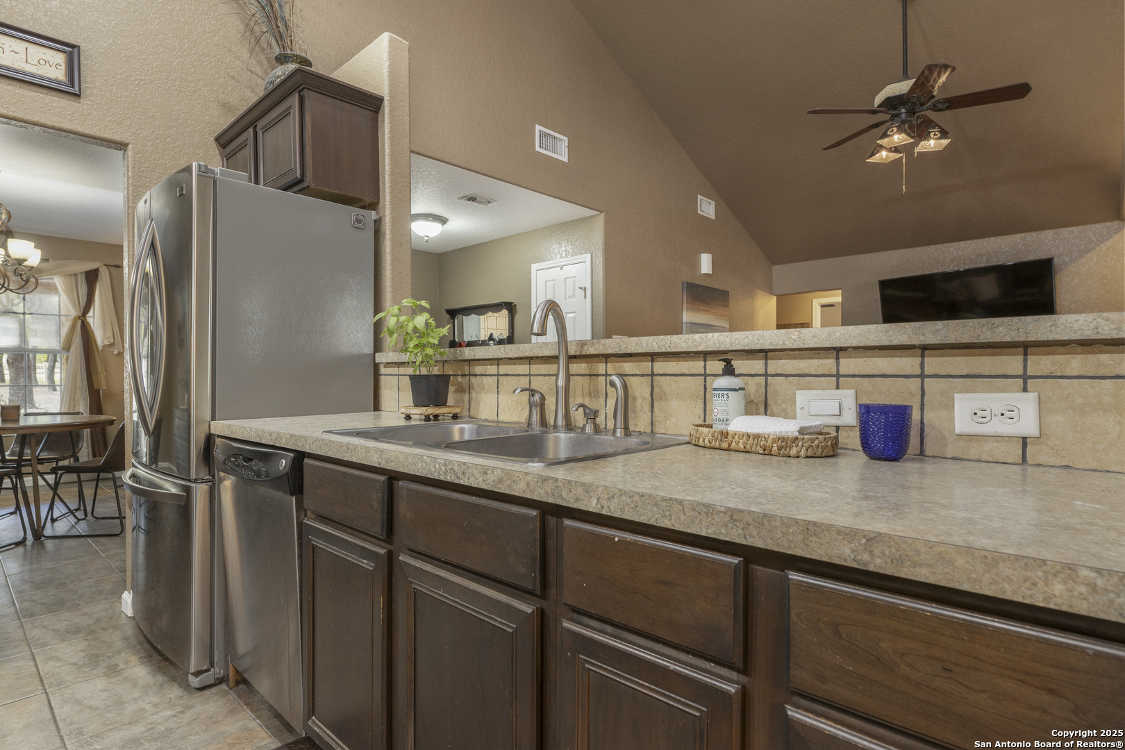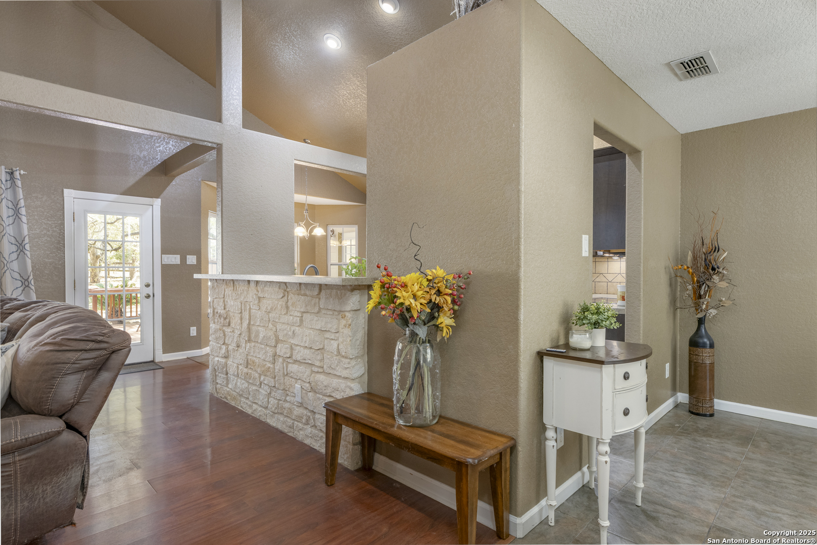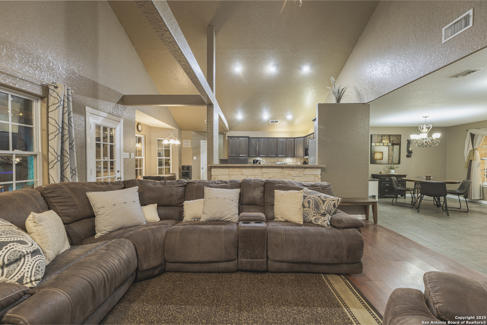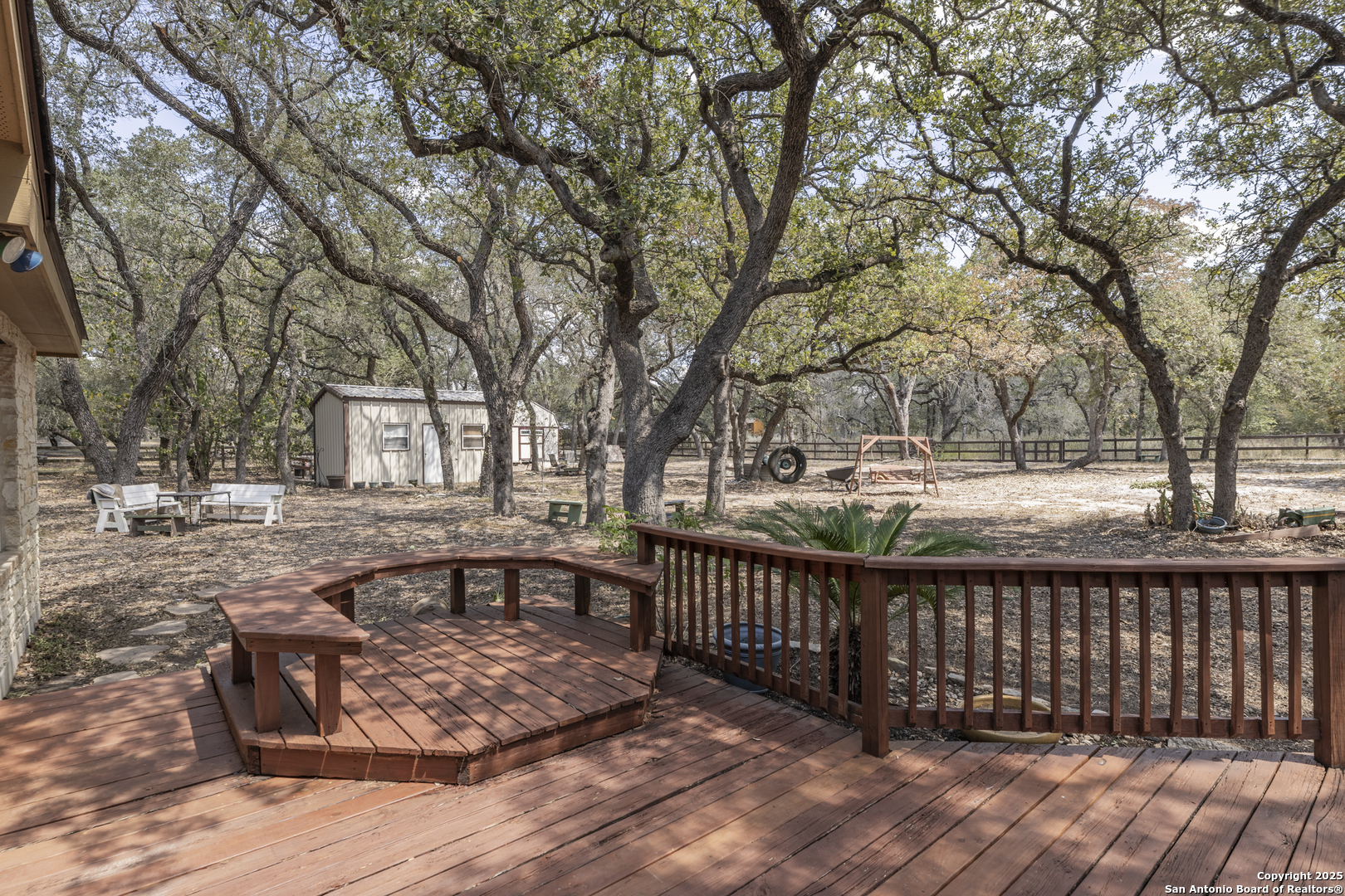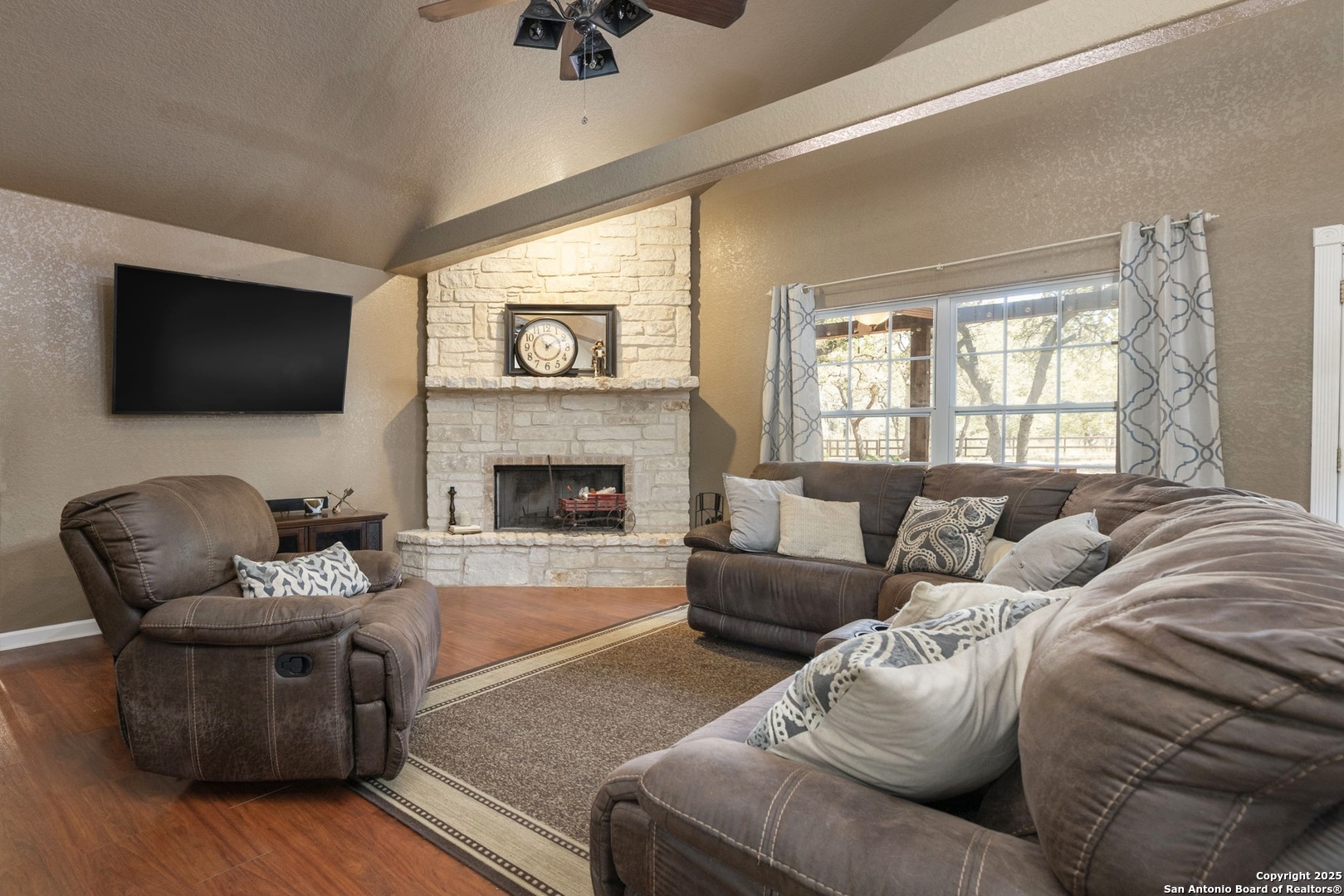 If you're looking for a home in La Vernia that stands out from the sea of gray walls and shiplap, you need this beautiful 4-bedroom, 2.5 bath stone home on nearly 2 acres! Off-set from the other houses for privacy, all sides stone and brick masonry, beautifully rustic touches, 2-car attached garage, workshop, and space to spread out. Semi-open floor plan offers vaulted ceilings, large kitchen flowing into the breakfast area and dining room, spacious living room with floor-to-ceiling stone fireplace, and split bedroom layout. Primary suite features private patio access, soaking tub, separate shower with dual showerheads and two walk-in closets. Outside you'll find all the things that make life in the country enjoyable: a huge back patio and deck that you and your guests will want to stay on long after the sun goes down, cross-fencing (horses are welcome!), beautiful trees, garden area, and plenty of space for new projects or pets... because this lot is nearly an acre larger than many in the same price range. Hobbyists might have a hard time choosing where to set up shop: the 12x20 metal shop with AC unit, rollup door and loft (plus a secret hang-out area on the back side), OR the 14x20 shed complete with loft and work bench, OR the attached garage with work sink and storage room. Located on a quiet cul-de-sac road ideal for morning jogs, bike rides, or evening walks, and in easy reach of nearby shopping. Your brand-new roof offers peace of mind and lower insurance premiums... so with fiber internet, La Vernia schools, low 1.7% tax rate, an easy commute to San Antonio... and now an even better price for the area, this home delivers beauty, functionality, a relaxed country lifestyle, and value. If you prefer a home with warmth and character, this home is calling your name- request your showing today.