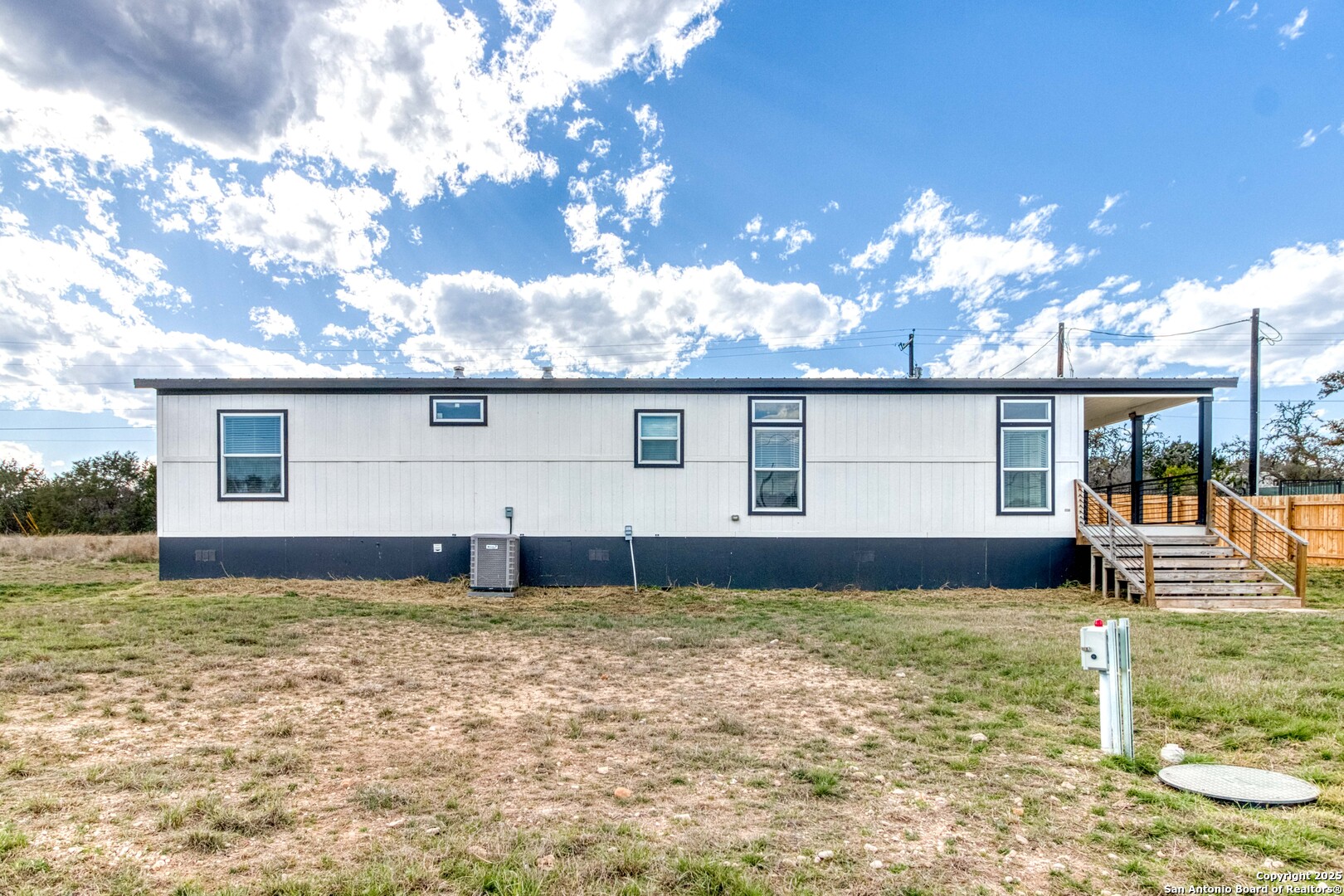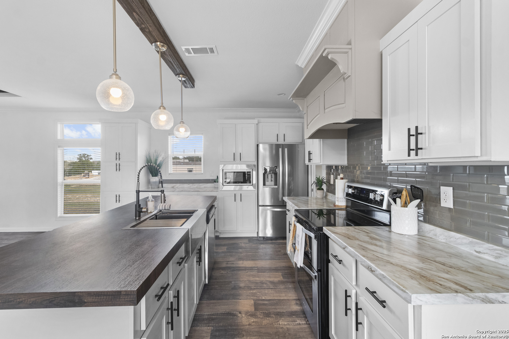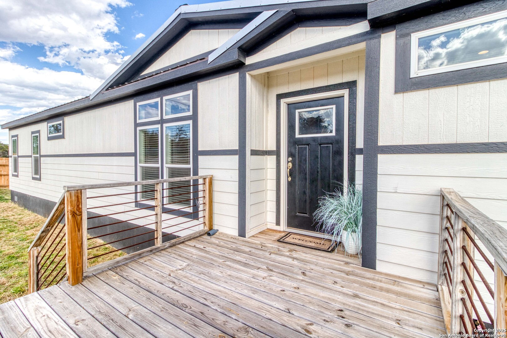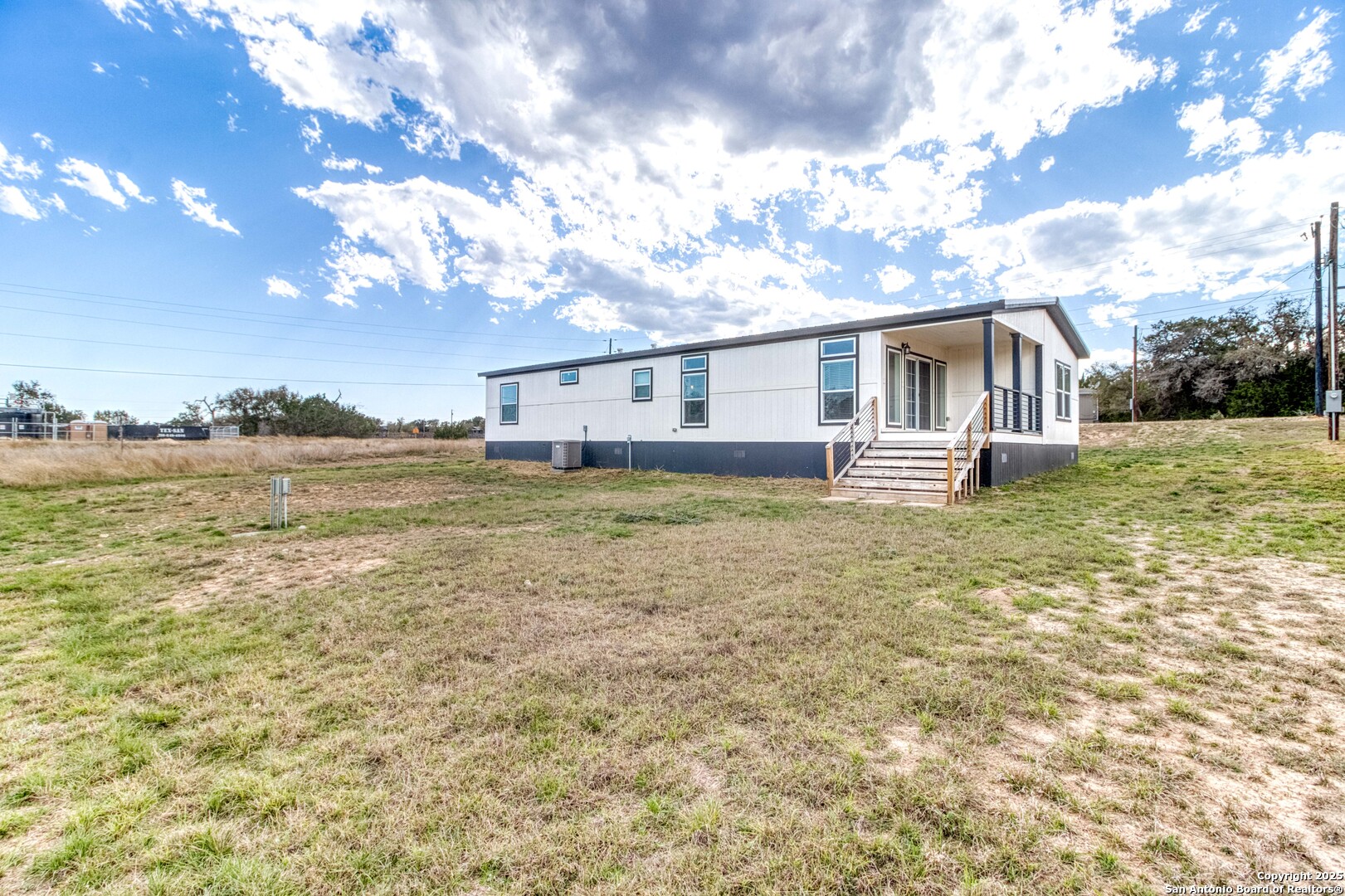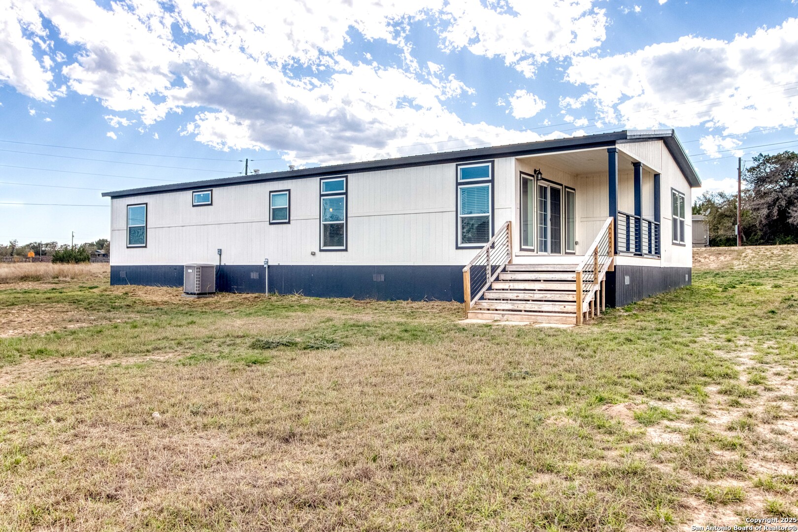 Tucked away in the exclusive, gated Holiday Villages near the tranquil Medina Lake, this brand-new, never-before-lived-in residence offers an elegant and effortless lifestyle. Holiday Villages is a secure community with a guard stand, swimming pool, a welcoming clubhouse, and access to a lake park when the lake is at its peak-adding to the allure of this exceptional setting. With an open-concept design, the home boasts 3 generously sized bedrooms, 2 luxurious bathrooms, and an expansive 2,046 square feet of living area. The gourmet kitchen is a true chef's delight, featuring premium stainless steel appliances, a freestanding double oven, a sprawling island, and a single-basin sink complete with a built-in drying rack and colander. Sleek cabinetry, stylish countertops, and a contemporary backsplash complete the look, while a convenient office nook adds storage and a dedicated workspace. The primary suite serves as a luxurious retreat, complete with a spacious bedroom and a spa-inspired bathroom showcasing a modern free-standing tub and a stunning shower-perfect for unwinding in style. Additional upgrades include a durable metal roof and a covered rear patio, ideal for enjoying the serene surroundings. Combining contemporary design, comfort, and practicality, this home is truly a dream come true. Welcome to Holiday Villages, where your next chapter begins!