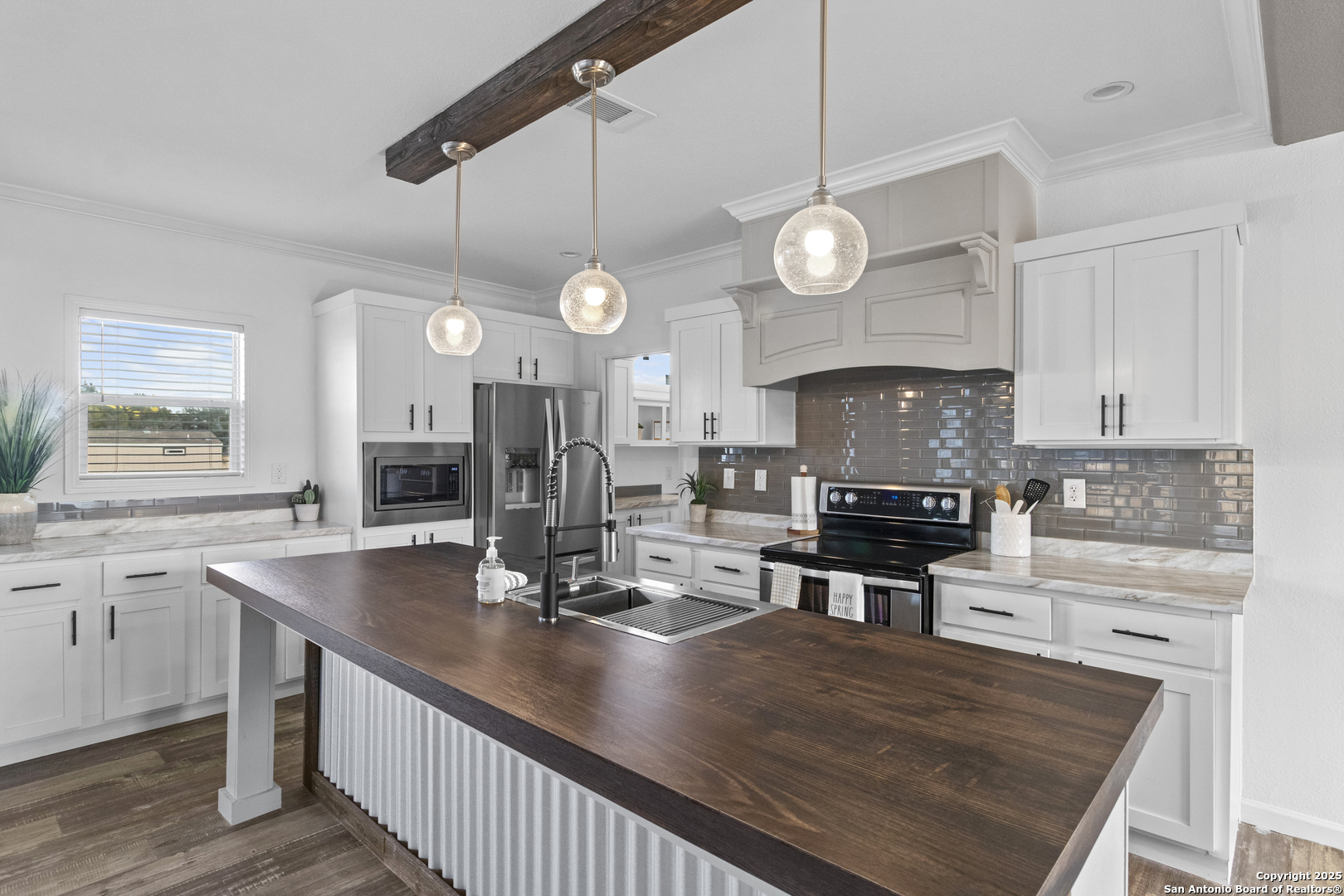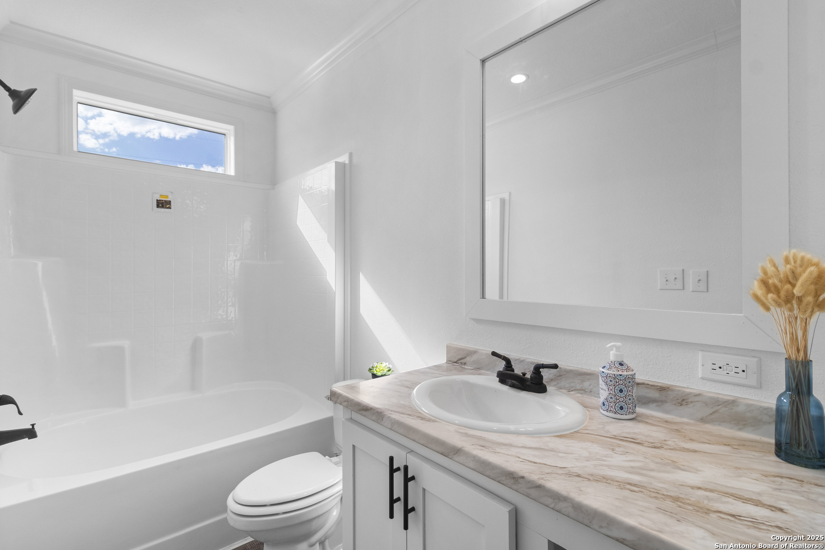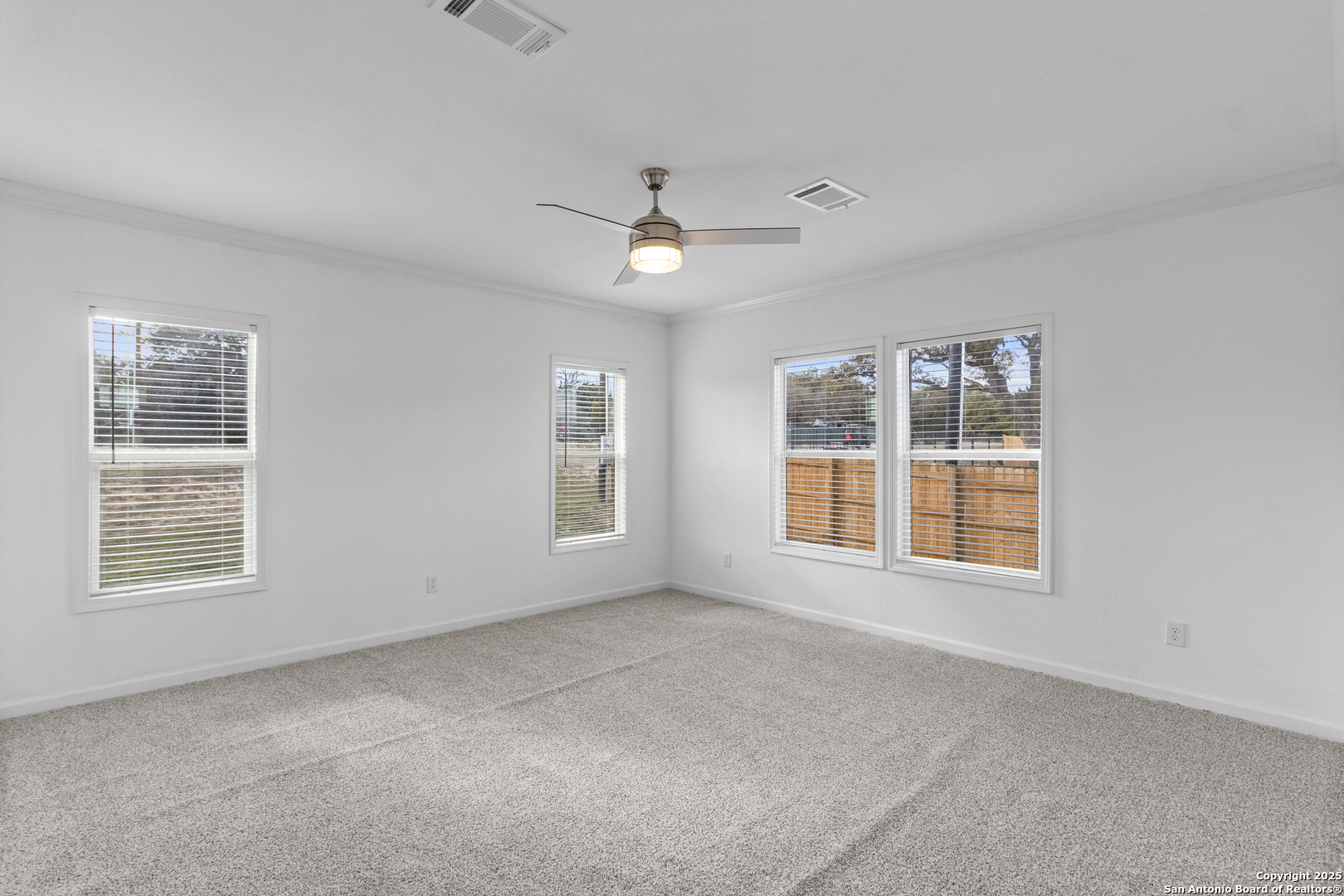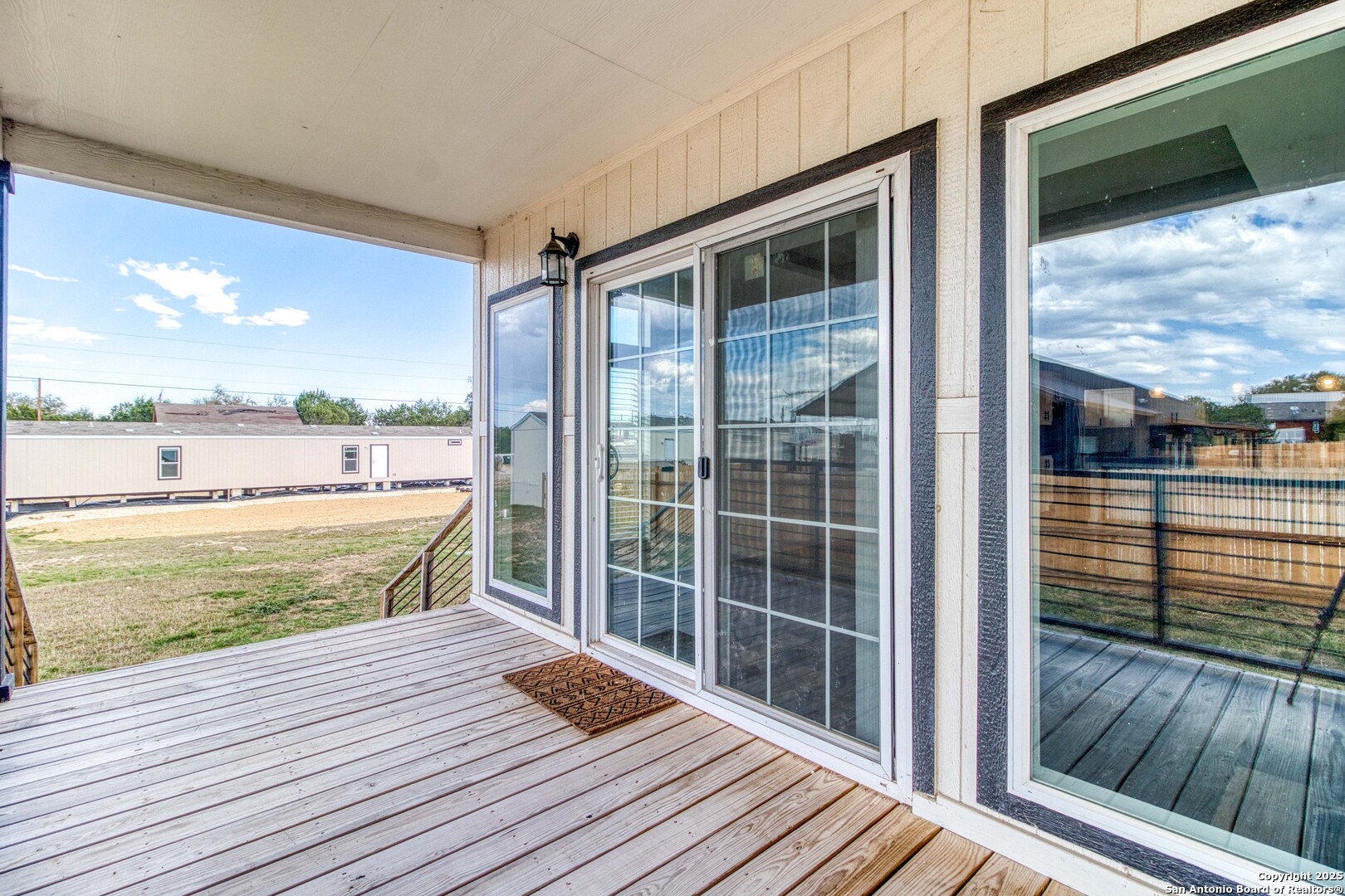 Tucked away in the exclusive, gated Holiday Villages near the tranquil Medina Lake, this brand-new, never-before-lived-in residence offers an elegant and effortless lifestyle. Holiday Villages is a secure community with a guard stand, swimming pool, a welcoming clubhouse, and access to a lake park when the lake is at its peak-adding to the allure of this exceptional setting. With an open-concept design, the home boasts 3 generously sized bedrooms, 2 luxurious bathrooms, and an expansive 2,046 square feet of living area. The gourmet kitchen is a true chef's delight, featuring premium stainless steel appliances, a freestanding double oven, a sprawling island, and a single-basin sink complete with a built-in drying rack and colander. Sleek cabinetry, stylish countertops, and a contemporary backsplash complete the look, while a convenient office nook adds storage and a dedicated workspace. The primary suite serves as a luxurious retreat, complete with a spacious bedroom and a spa-inspired bathroom showcasing a modern free-standing tub and a stunning shower-perfect for unwinding in style. Additional upgrades include a durable metal roof and a covered rear patio, ideal for enjoying the serene surroundings. Combining contemporary design, comfort, and practicality, this home is truly a dream come true. Welcome to Holiday Villages, where your next chapter begins!