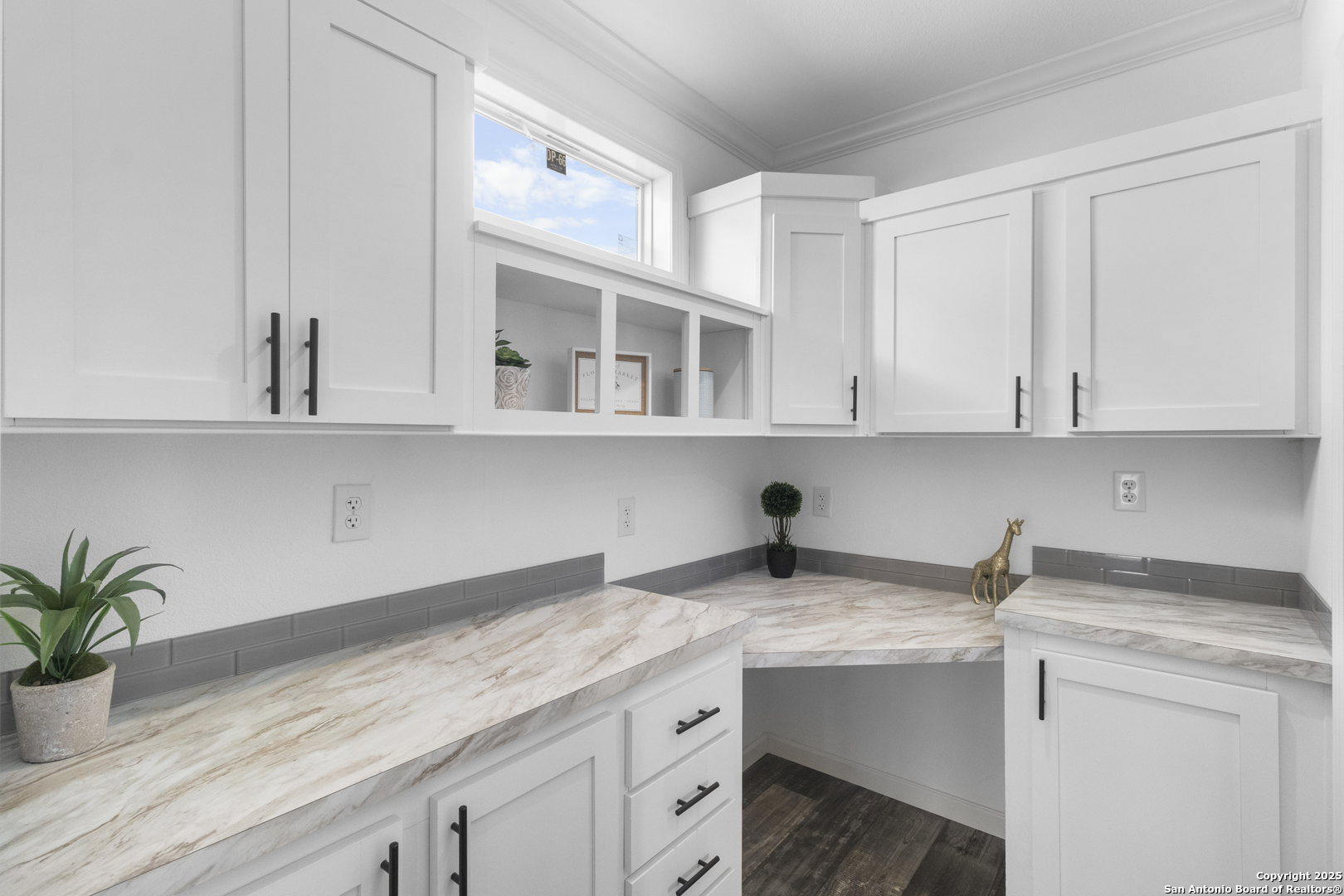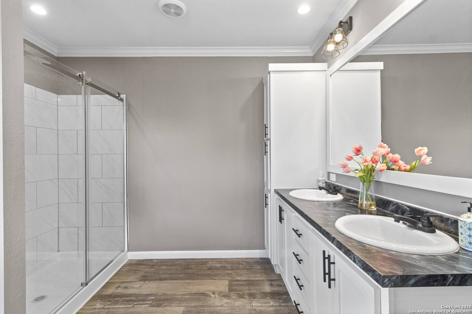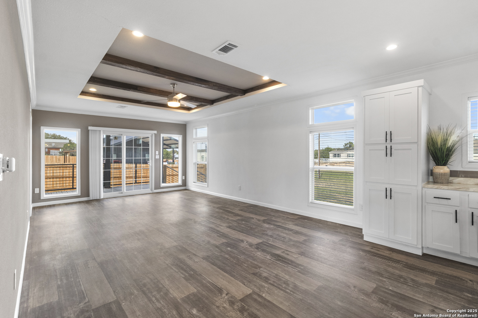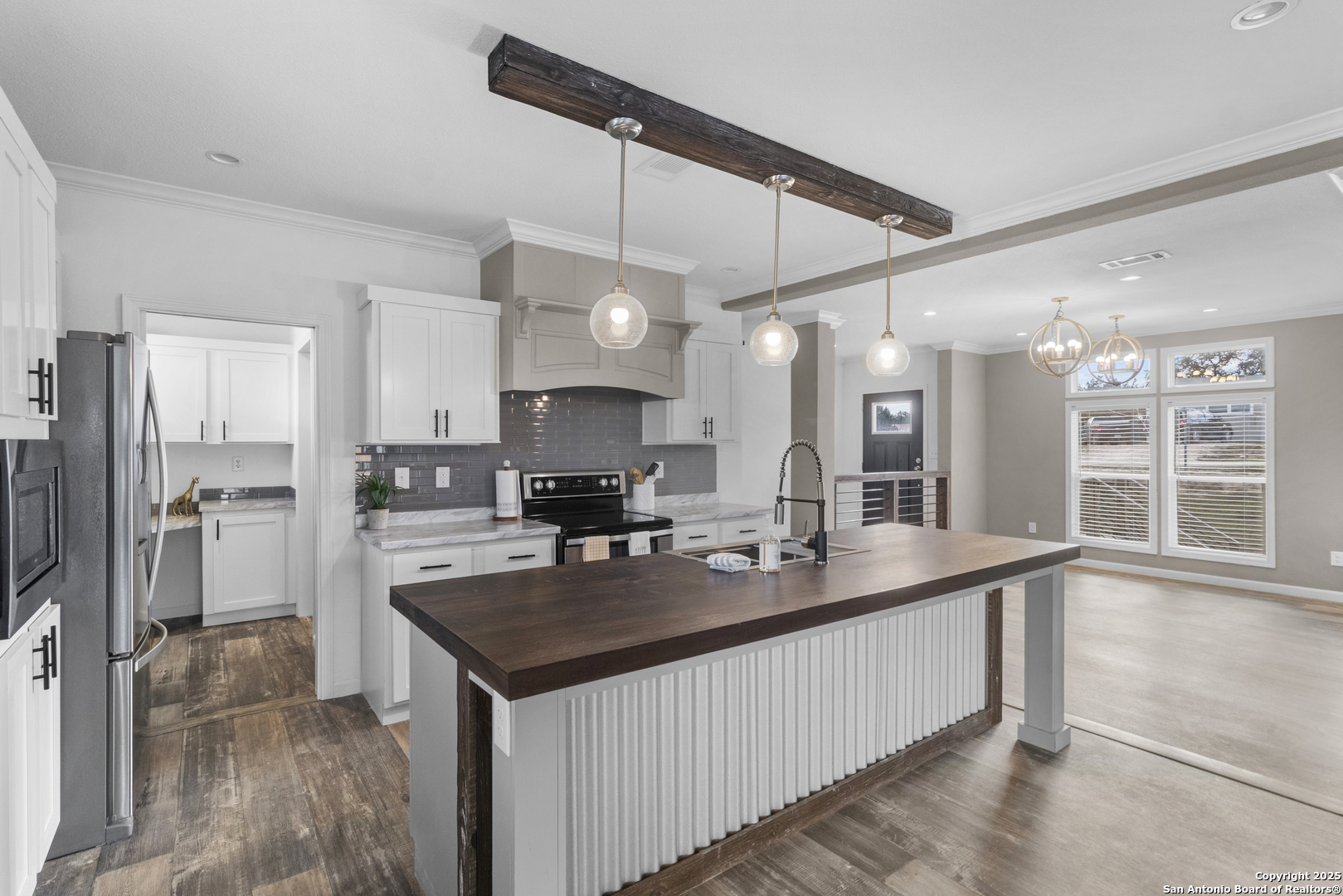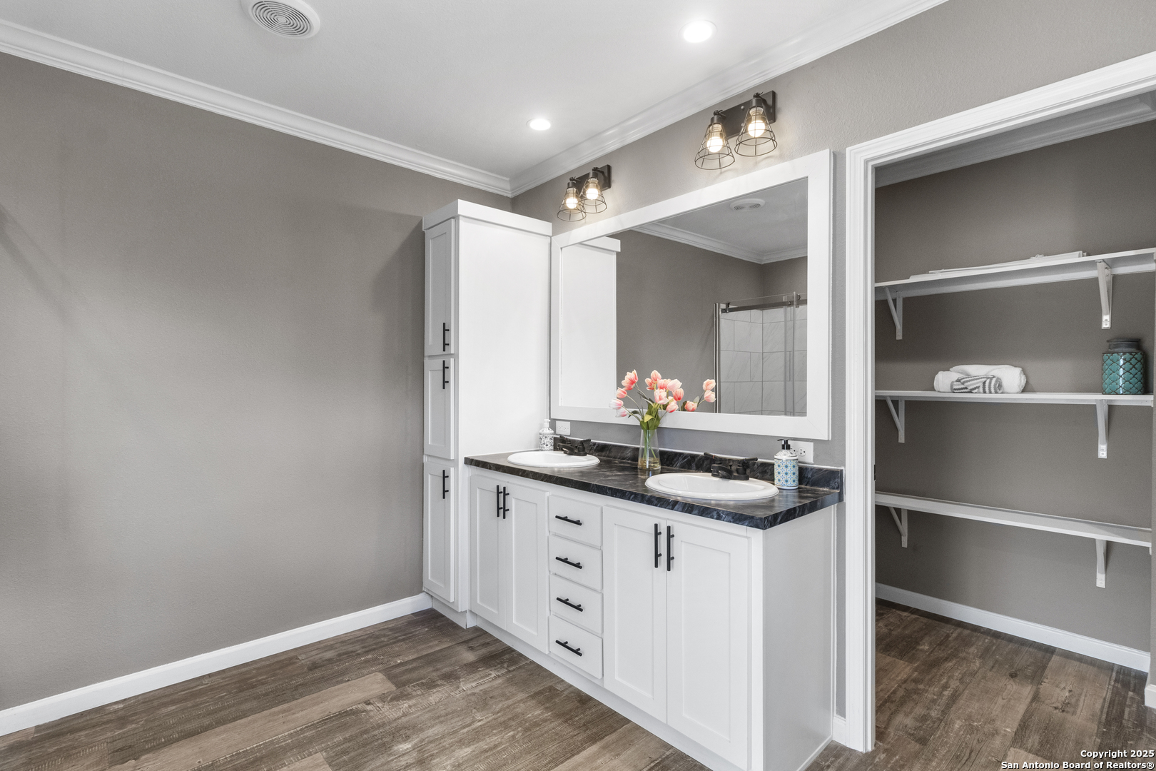 Tucked away in the exclusive, gated Holiday Villages near the tranquil Medina Lake, this brand-new, never-before-lived-in residence offers an elegant and effortless lifestyle. Holiday Villages is a secure community with a guard stand, swimming pool, a welcoming clubhouse, and access to a lake park when the lake is at its peak-adding to the allure of this exceptional setting. With an open-concept design, the home boasts 3 generously sized bedrooms, 2 luxurious bathrooms, and an expansive 2,046 square feet of living area. The gourmet kitchen is a true chef's delight, featuring premium stainless steel appliances, a freestanding double oven, a sprawling island, and a single-basin sink complete with a built-in drying rack and colander. Sleek cabinetry, stylish countertops, and a contemporary backsplash complete the look, while a convenient office nook adds storage and a dedicated workspace. The primary suite serves as a luxurious retreat, complete with a spacious bedroom and a spa-inspired bathroom showcasing a modern free-standing tub and a stunning shower-perfect for unwinding in style. Additional upgrades include a durable metal roof and a covered rear patio, ideal for enjoying the serene surroundings. Combining contemporary design, comfort, and practicality, this home is truly a dream come true. Welcome to Holiday Villages, where your next chapter begins!