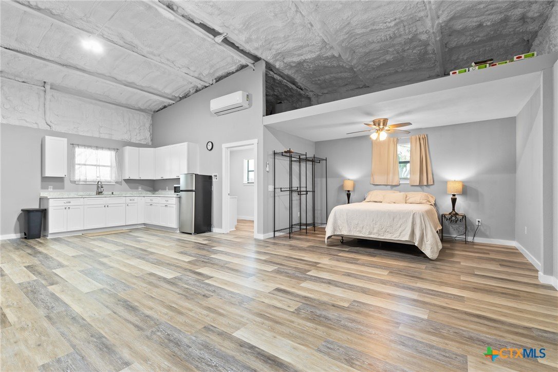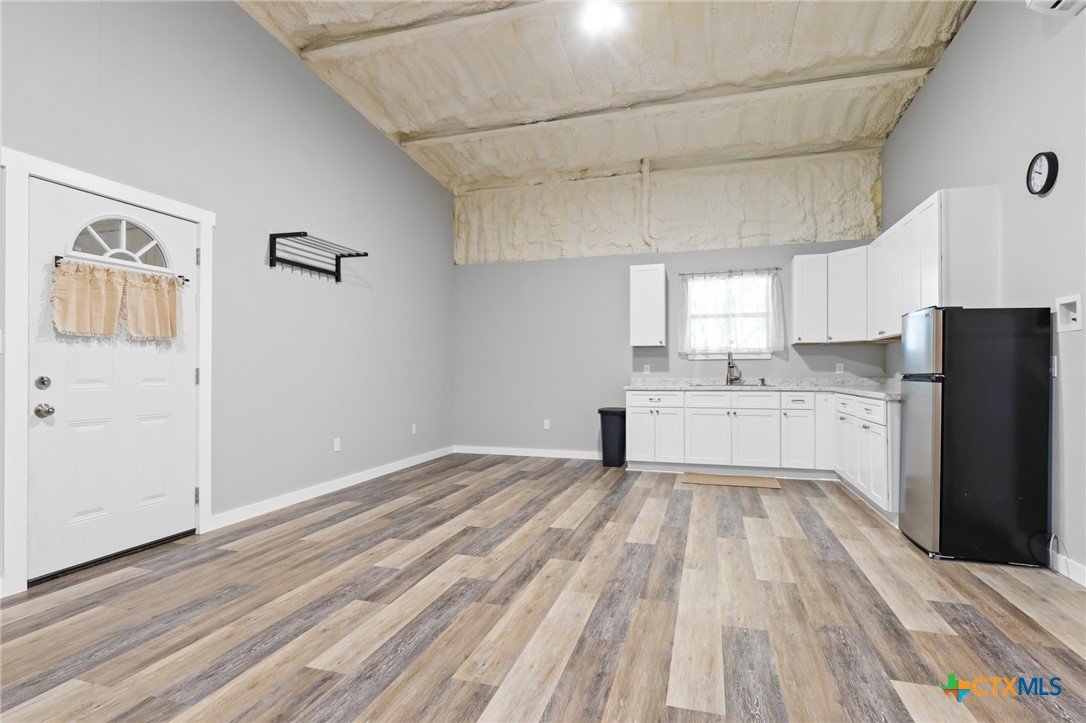 Discover 10.01 acres of serene countryside living in this thoughtfully crafted versatile barndominium, offering the perfect blend of rustic charm and modern convenience. With a total of 1,500 sq ft under roof, the space includes a cozy 750 sq ft living area and a versatile 750 sq ft barn/shop—ideal for hobbies, storage, or future expansion. Step inside to an open-concept layout featuring a spacious living area, kitchenette, and a full bathroom with washer/dryer connections already in place. Just steps away, a separate 600 sq ft workshop provides ample room for vehicles, tools, and weekend projects. The building / structure offers an attached 15 ft wide by 50 foot long covered concrete patio area for additional living and workspace. Designed with future growth in mind, the property includes a water well, electric service, and septic system sized to support additional structures or upgrades. Whether you're dreaming of a larger homestead or simply want room to grow, the infrastructure is ready. Enjoy peaceful mornings and quiet evenings surrounded by native wildlife including turkey, deer, and wild hogs. This property offers a tranquil escape from the hustle, perfect for weekend getaways or full-time country living. Situated in the Evant Independent School District, you're just a short drive from Evant, Hamilton, Lampasas, Goldthwaite, and Gatesville. Larger cities like Waco, Stephenville, Temple, Killeen, and Brownwood are all within an hour’s reach—giving you the best of both worlds. Whether you're building a legacy, seeking a peaceful retreat, or investing in a property with long-term potential, this 10-acre barndominium delivers the rare combination of comfort, versatility, and opportunity. With essential infrastructure in place, abundant wildlife at your doorstep, and a location that balances rural tranquility with access to thriving communities, this property is more than a place to live—it's a foundation for whatever future you envision.