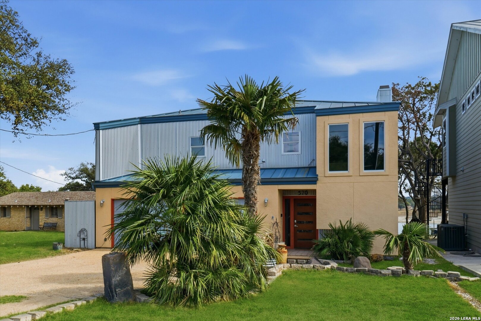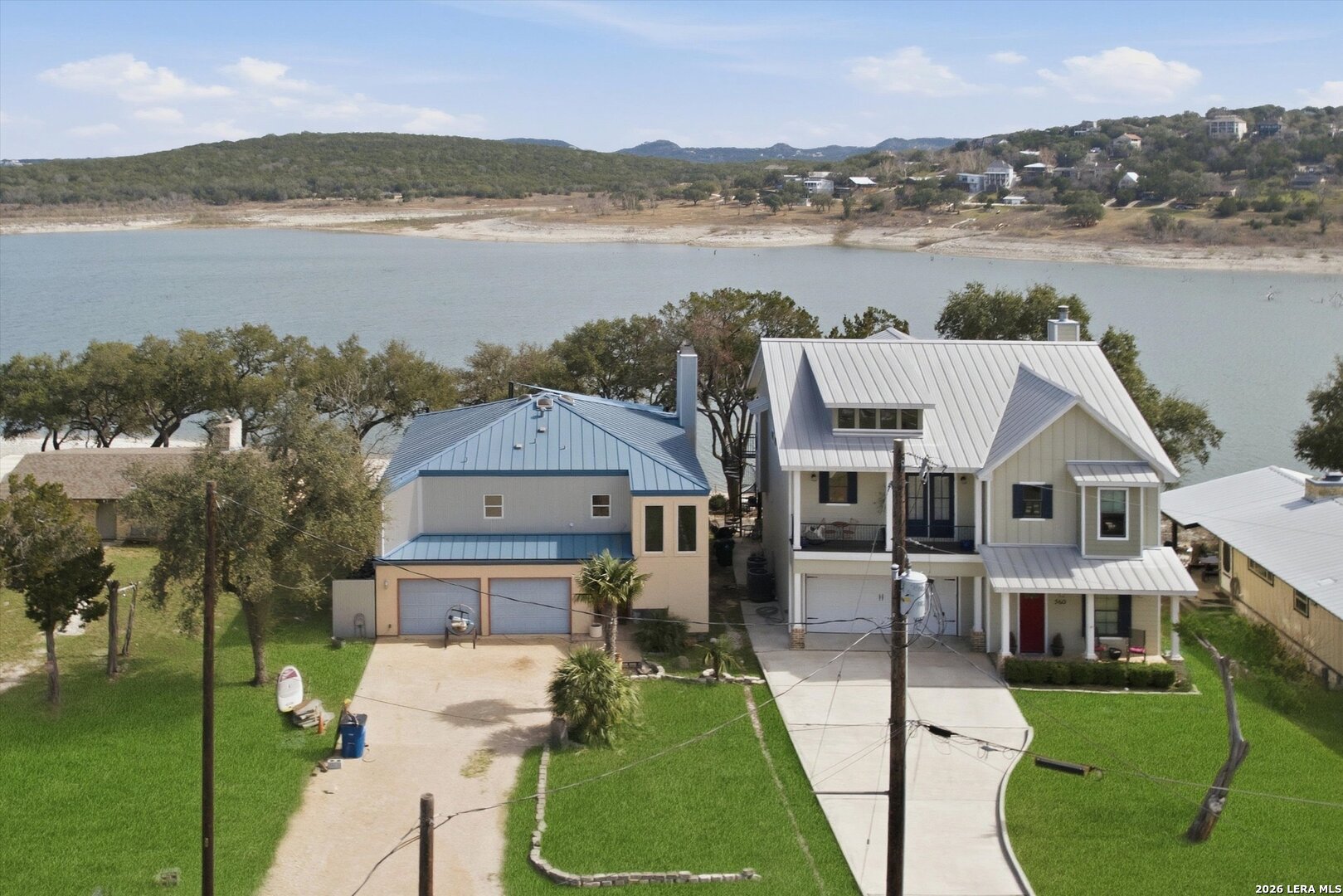LAKEFRONT- 3 bedroom 2 bath home with BIG WATER VIEWS from almost every room. Upside down floor plan with 1 bedroom downstairs with outside access. This home was designed to maximize the scenery. Features include a 2 car garage, metal deck, spacious patio, large masonry fireplace, low maintenance exterior and metal roof. Partially remodeled with plenty of room for you to add your personal touch. Enjoy the lake breezes from the back deck and patio- just a skip to the water. This is a small subdivision with private lake access with just a few homes. No HOA and Owner is READY TO SELL!
