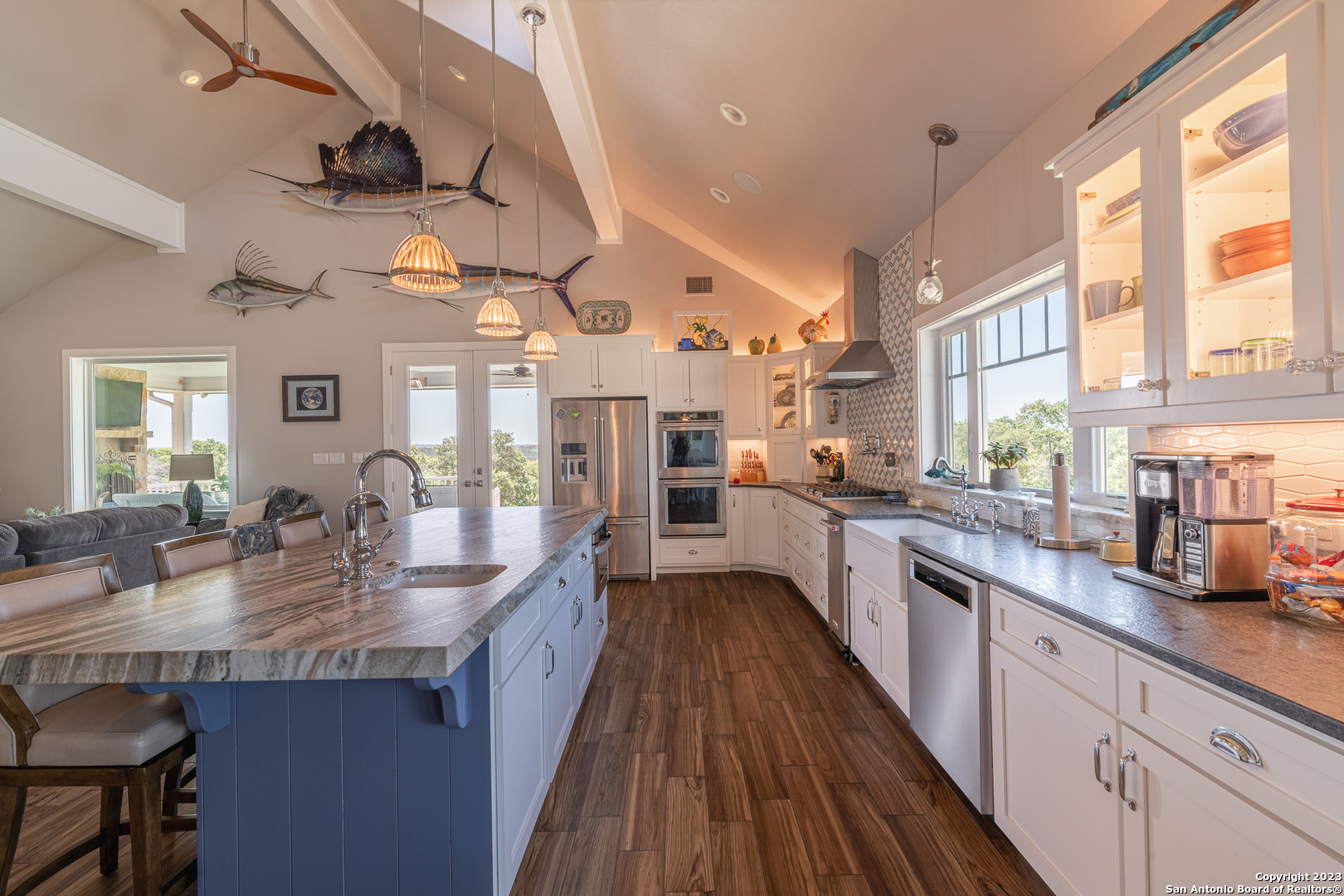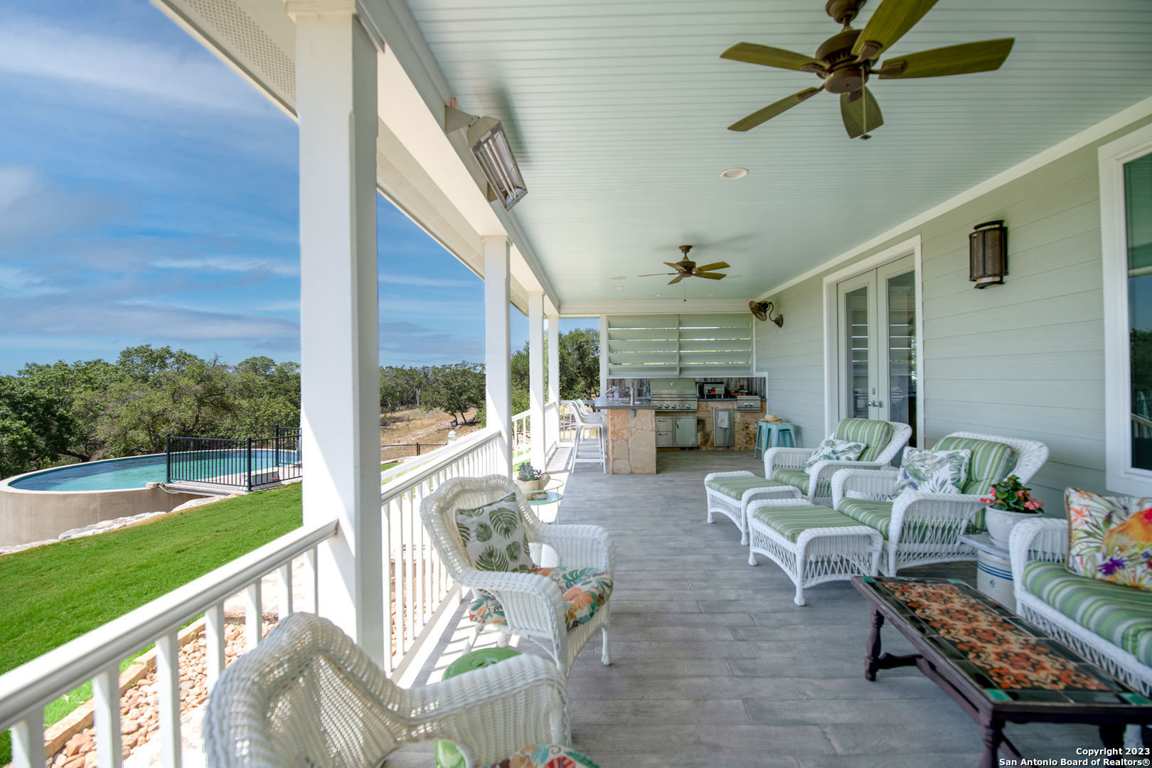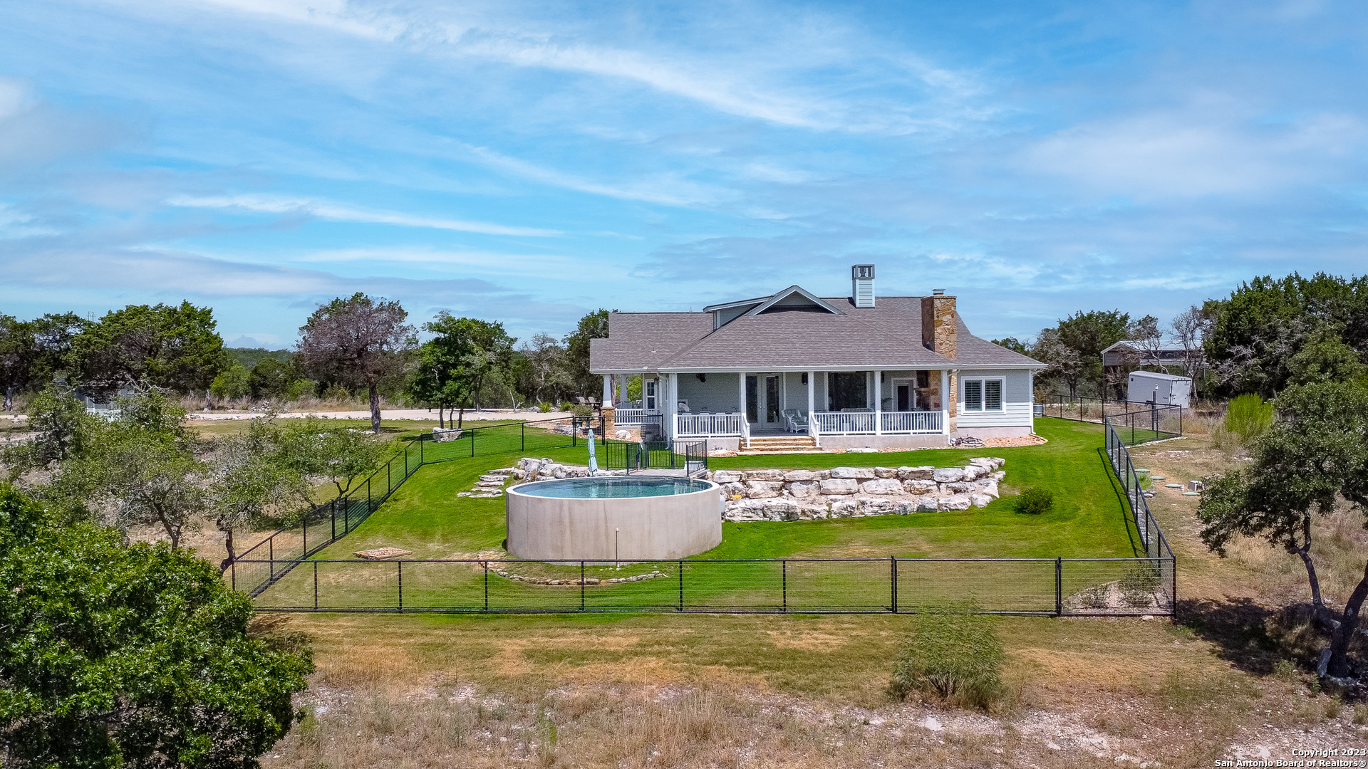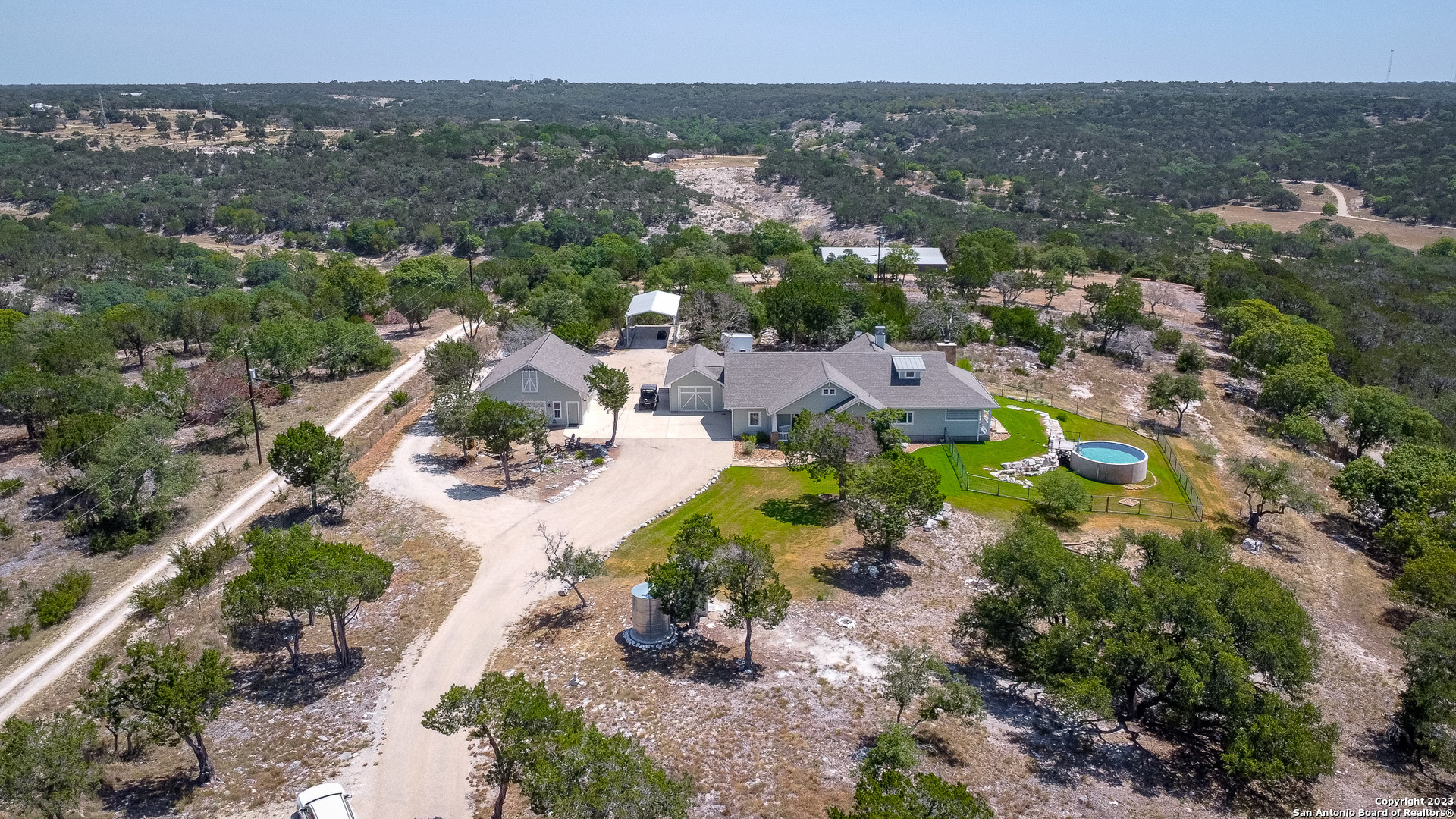 Step inside this custom Texas Hill Country home & you'll find yourself captivated by the allure of coastal vibes, where every corner of this residence exudes tranquility & relaxation. With an open-concept layout, the living spaces flow effortlessly, maximizing natural light & providing a sense of breezy spaciousness. The gourmet kitchen is a culinary enthusiast's dream come true. Equipped with high-end appliances, custom cabinetry & a large central island, it's perfect for preparing delectable dishes or hosting memorable gatherings. Step outside to your private outdoor oasis, where a lush green lawn surrounds a uniquely stunning pool. Unwind on the spacious patio, where you can enjoy al fresco dining or savor picturesque sunrises by the fireplace. Southeasterly breezes harken the seaside, but sweeping views of the Hill Country valley bring you back to your own 5+ acres of beautiful central Texas. The bedrooms have been thoughtfully designed to evoke a sense of coastal charm, with soft hues & large windows that offer ample natural light. The bathrooms are reminiscent of luxurious spa retreats, boasting elegant fixtures, designer tiles & soothing accents. Custom beauty truly abounds!