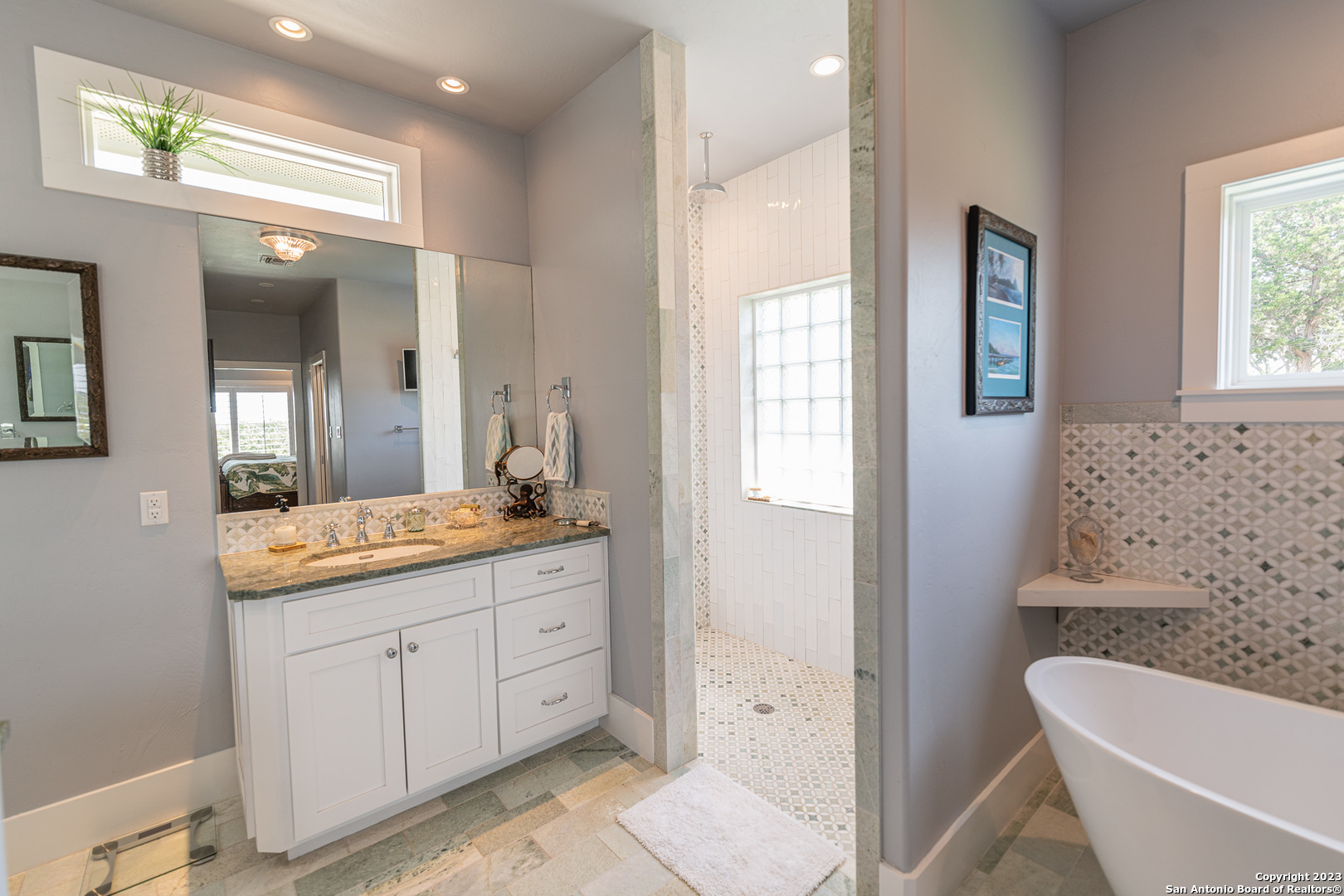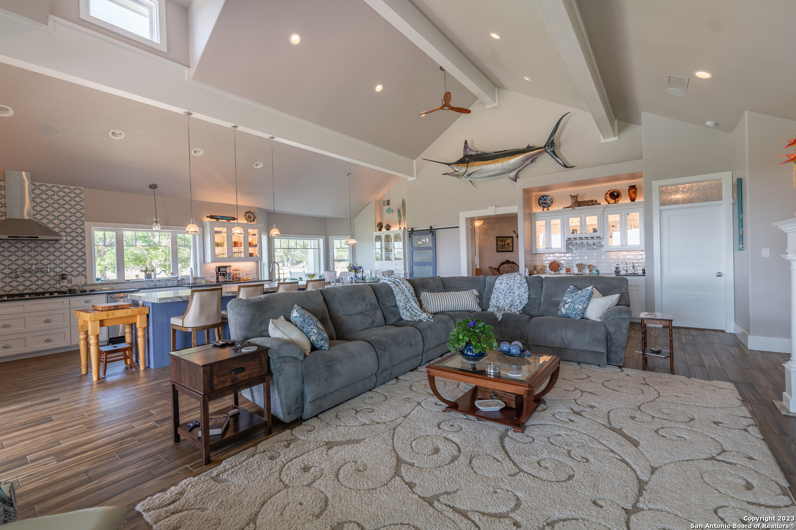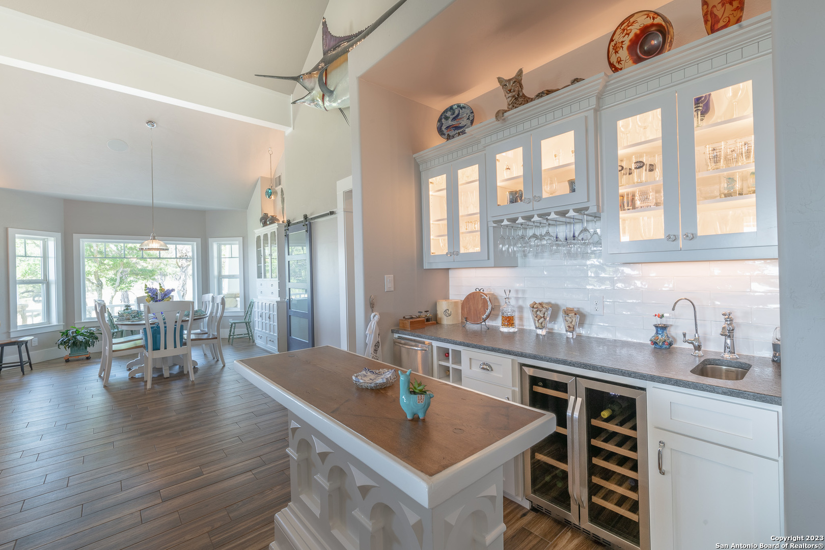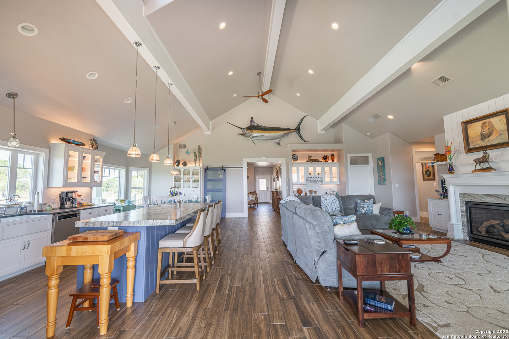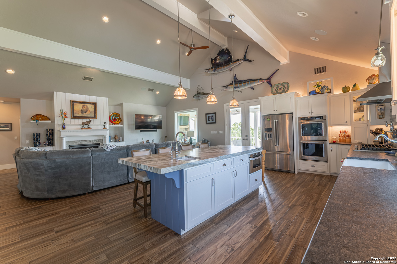 Step inside this custom Texas Hill Country home & you'll find yourself captivated by the allure of coastal vibes, where every corner of this residence exudes tranquility & relaxation. With an open-concept layout, the living spaces flow effortlessly, maximizing natural light & providing a sense of breezy spaciousness. The gourmet kitchen is a culinary enthusiast's dream come true. Equipped with high-end appliances, custom cabinetry & a large central island, it's perfect for preparing delectable dishes or hosting memorable gatherings. Step outside to your private outdoor oasis, where a lush green lawn surrounds a uniquely stunning pool. Unwind on the spacious patio, where you can enjoy al fresco dining or savor picturesque sunrises by the fireplace. Southeasterly breezes harken the seaside, but sweeping views of the Hill Country valley bring you back to your own 5+ acres of beautiful central Texas. The bedrooms have been thoughtfully designed to evoke a sense of coastal charm, with soft hues & large windows that offer ample natural light. The bathrooms are reminiscent of luxurious spa retreats, boasting elegant fixtures, designer tiles & soothing accents. Custom beauty truly abounds!